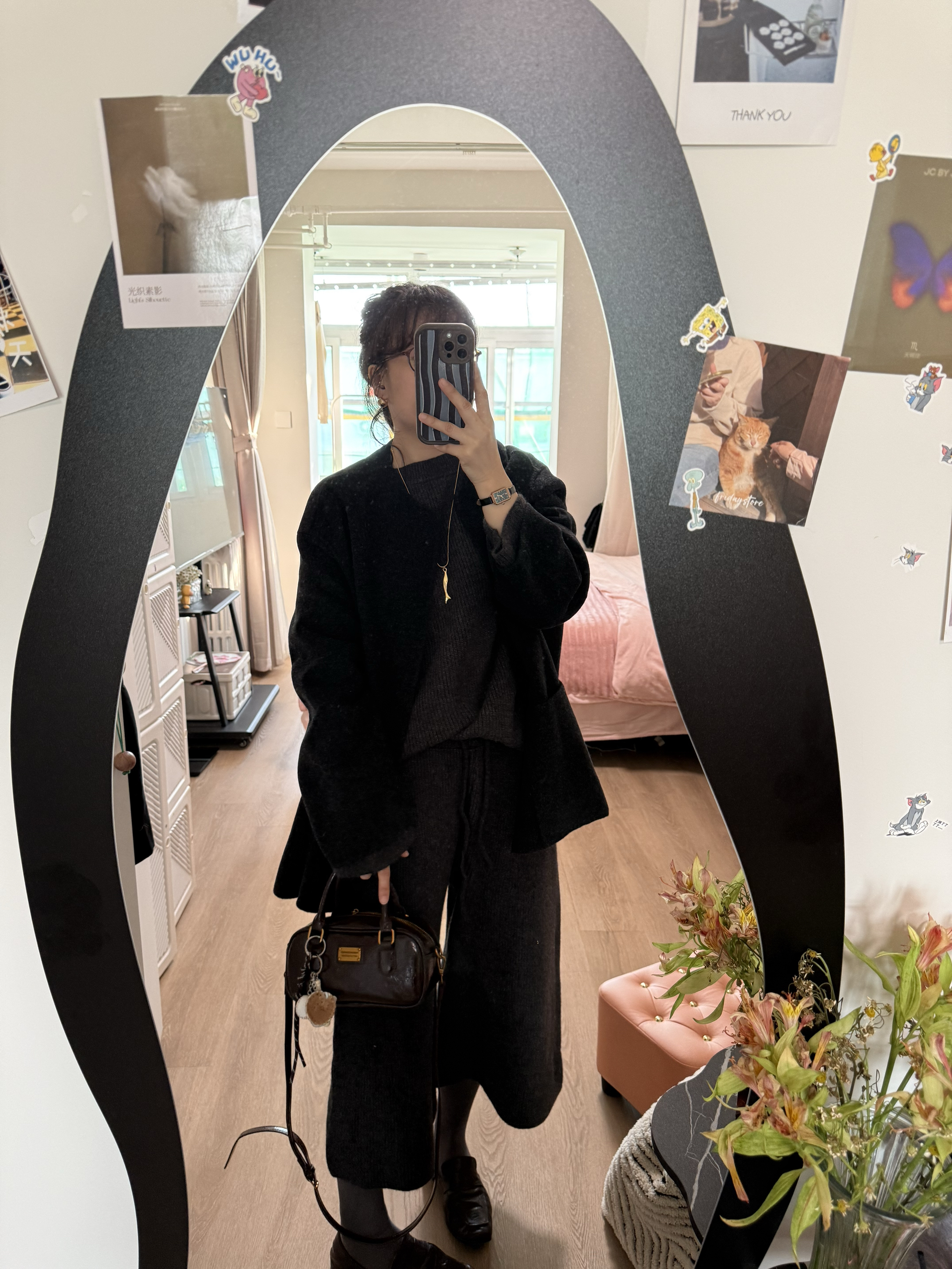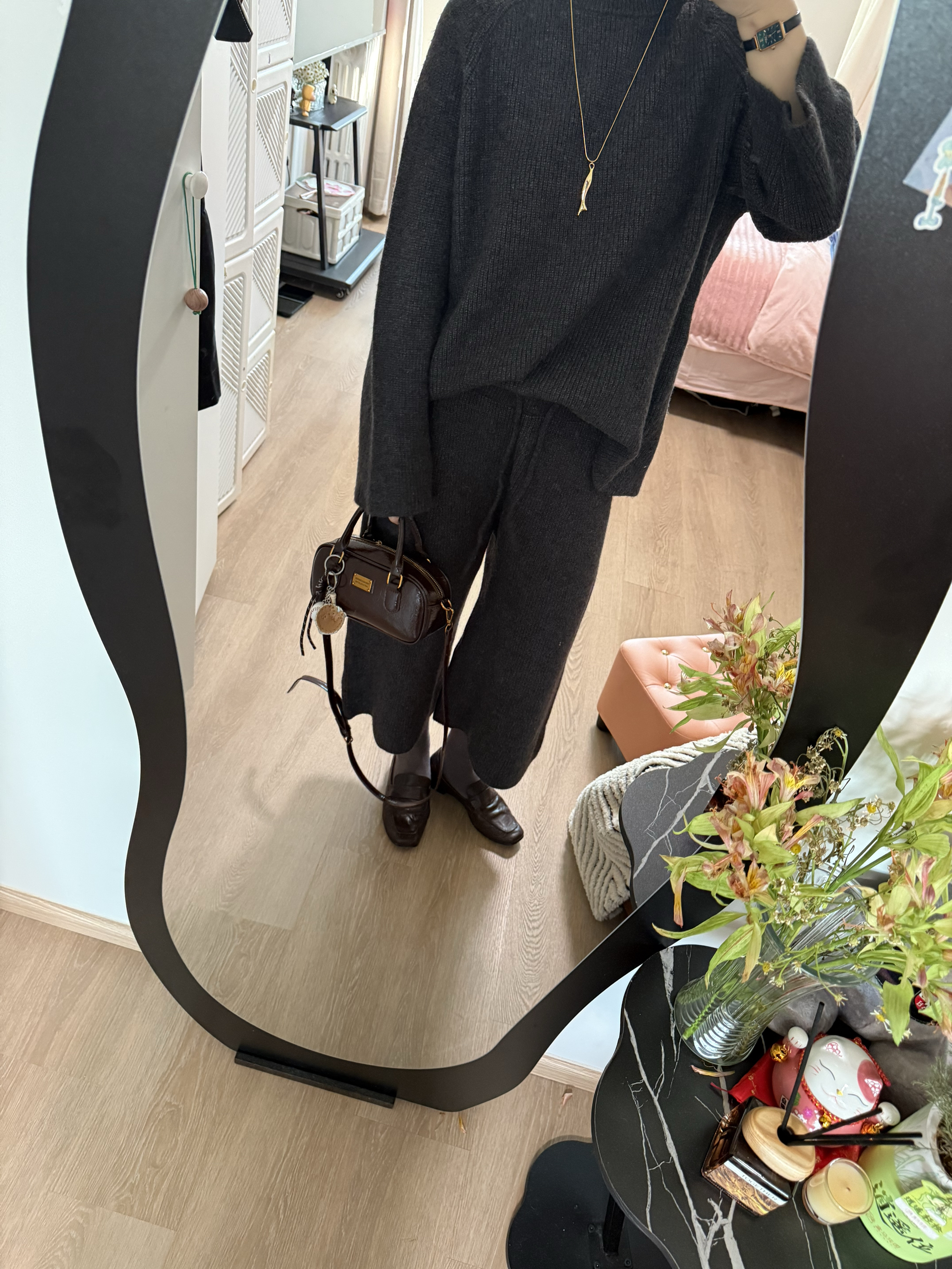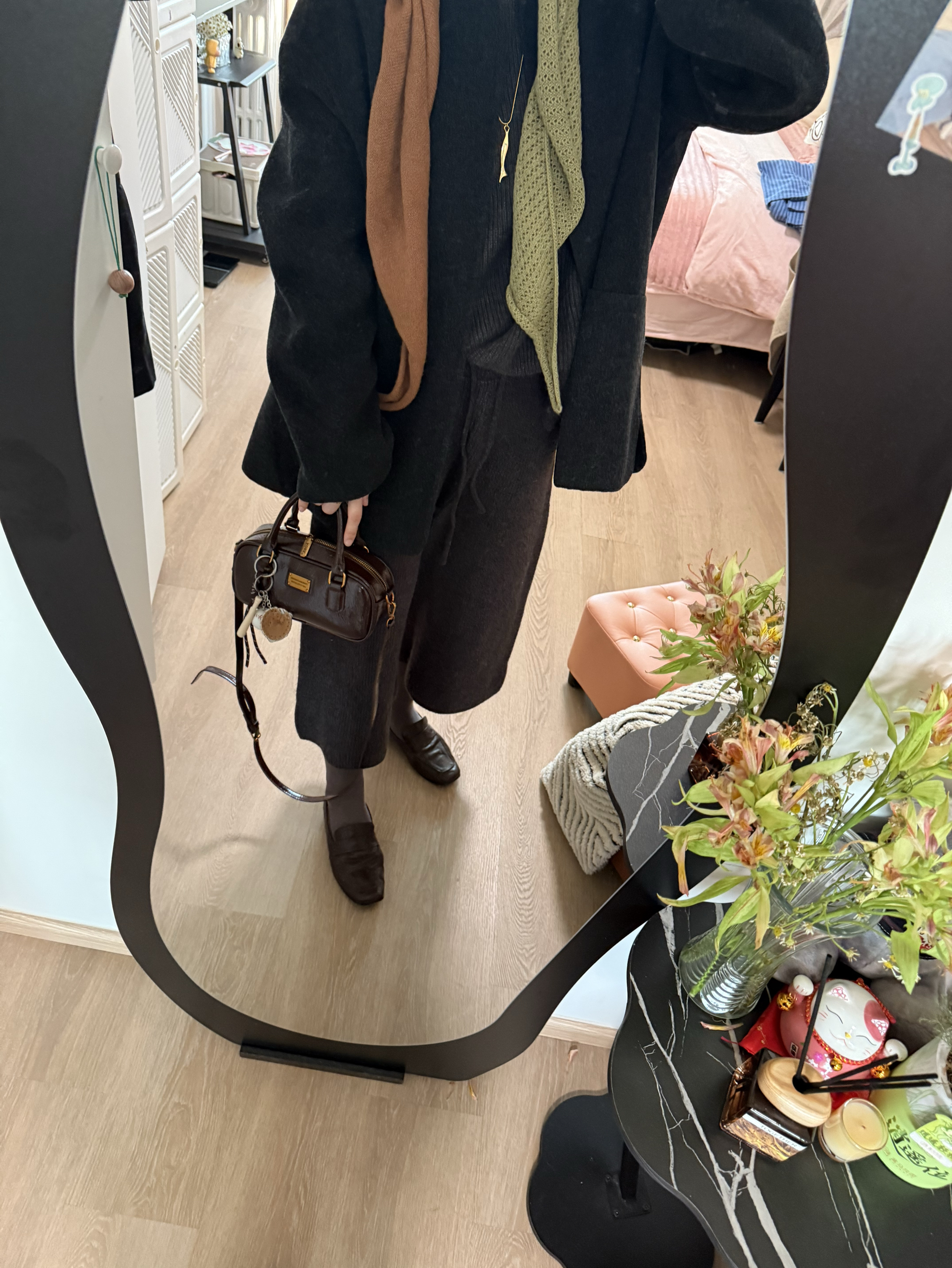 毛衣套装,解救不知道怎么搭配的一天~同色系穿搭更显高级,棕色👜➕棕色👞➕🧣打破同色的沉闷,给穿搭增加亮点!