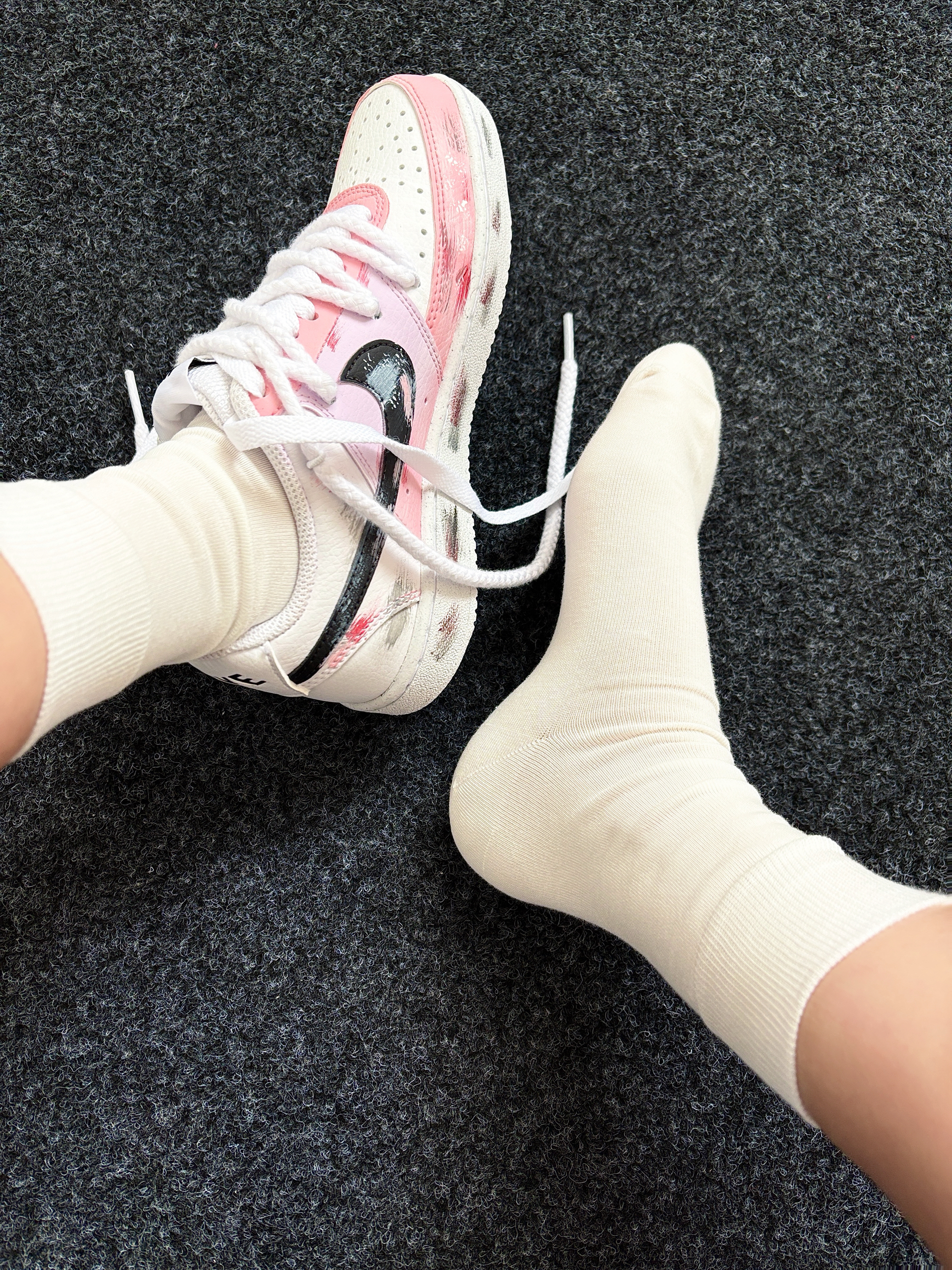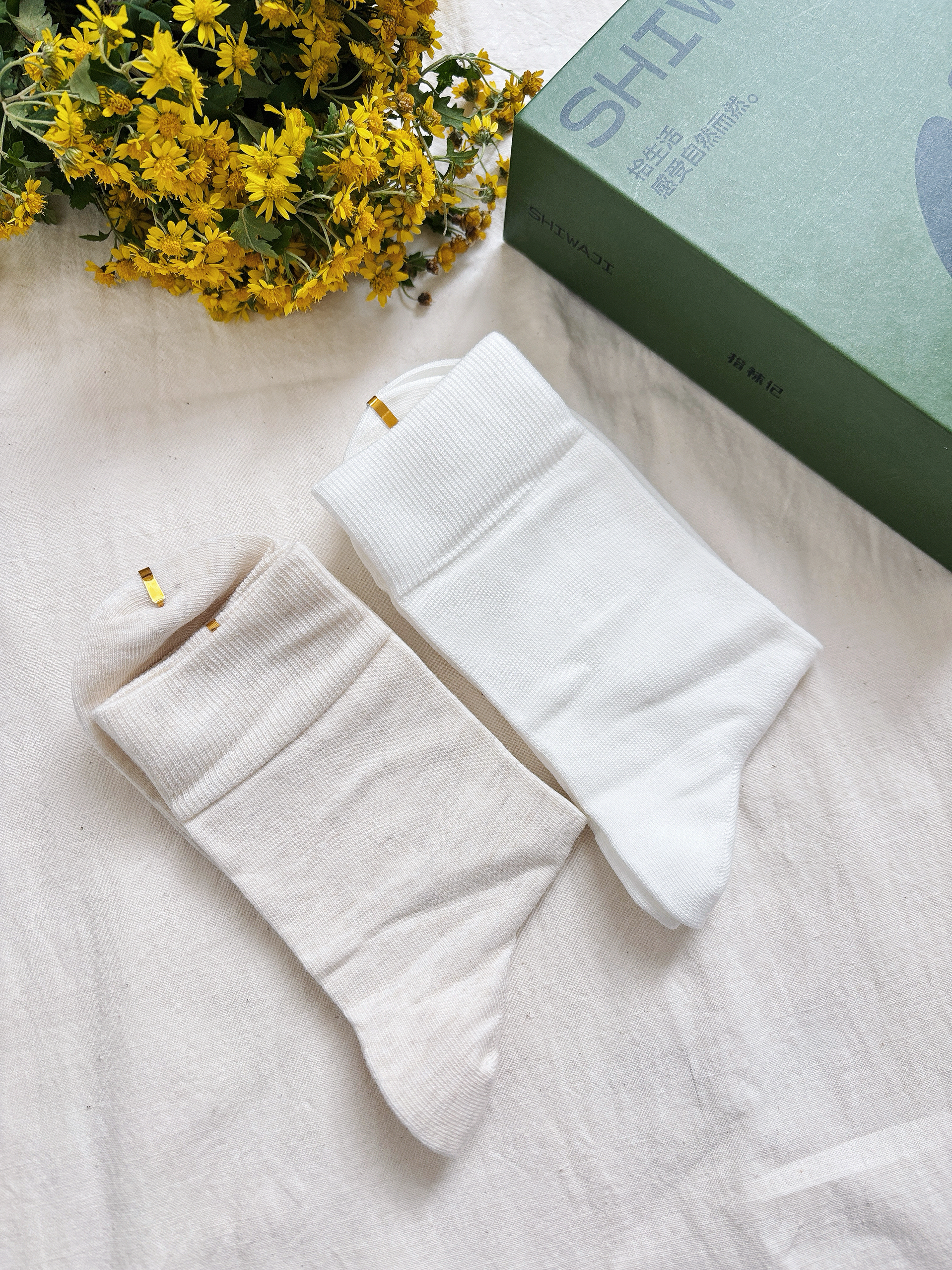 这个袜子尊嘟不错汗脚臭脚的可以试试~ 袜子带有淡淡桂花清香,不刺鼻,清新好闻 袜子中筒长度厚度适中现在还可以穿✅ 包裹性不错不勒脚穿一天下来也没有味道 袜子的细节做的也欧克没有多余的线头 白色米色基础款简约百搭性价比👌