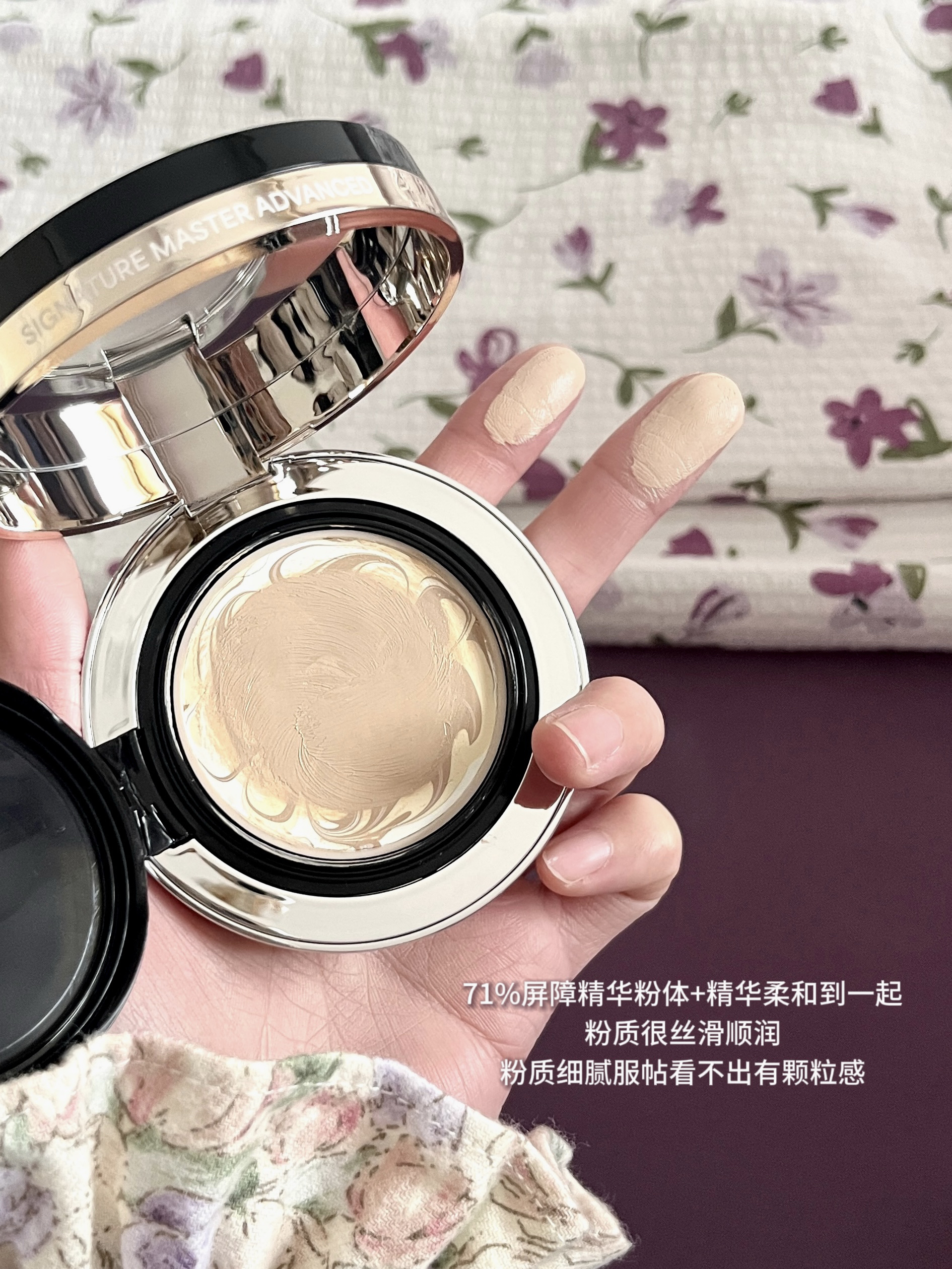 之前跟着秋鱼买的彩妆几乎没踩雷的,尤其是前阵子无意间刷到她那期亚裔感韩妆,被她那惊为天人的无暇奶光肌震撼到!当时为了仿好那期妆容特意买了同款气垫,用了这么久真有必要po一下!怎么可以有气垫做的这么遮瑕这么轻薄这么持妆不脱啊,真就像秋鱼说的那样干皮离不开闭眼随便拍都能拍出通透伪素颜妆 它属于四色拉花设计,刚开盖给我整蒙了,我用指腹简单揉了几下居然还能爆水润,本以为这么水润的气垫遮瑕肯定不行,没想到...