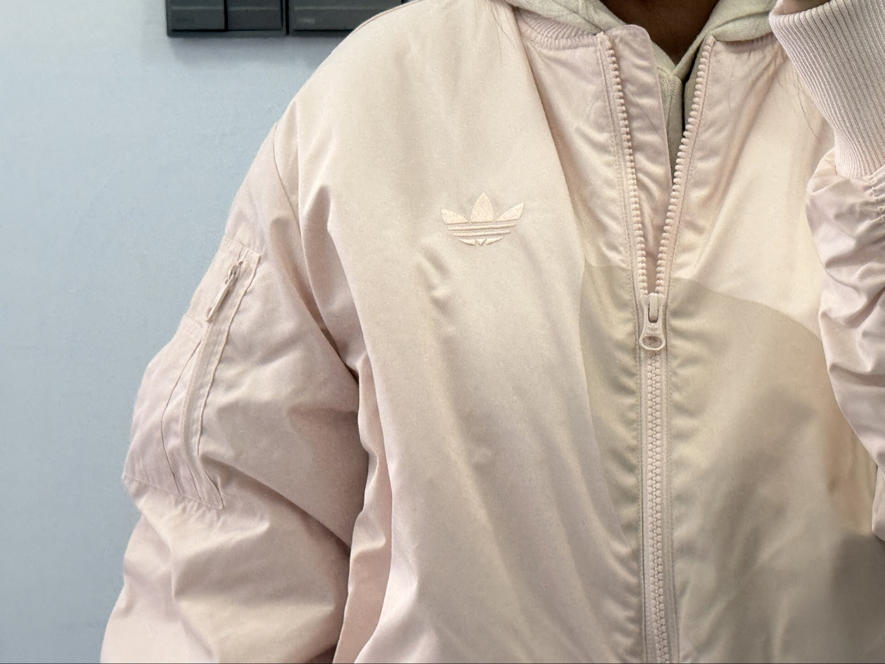 墙裂推荐这件阿迪达斯#我的宝藏单品阿迪达斯 立领夹棉外套,无论是男生还是女生都是很合适的(情侣搭配封神啦),通勤路上防风保暖,周末约会情侣穿搭,有一种飞行夹克的感觉,所谓是既要颜值又要温度,胸口的精致刺绣LOGO深得我心,无论是搭配牛仔裤、休闲裤、冲锋裤都是帅的一批,穿着感觉舒适度很高,夹棉的厚度刚刚好,不会显得很臃肿,活动起来很方便,搭配一个连帽卫衣也是很棒的选择,“你们冬天喜欢搭配连帽卫衣还...