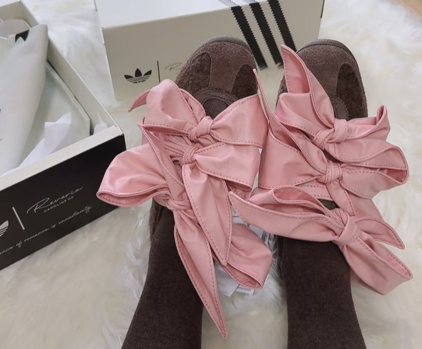 谁能拒绝双蝴蝶结甜妹鞋啊! 棕褐毛绒+双层粉蝴蝶结,软fufu裹满少女心🎀 复古鞋型甜而不腻,搭啥都像从漫画里走出来!