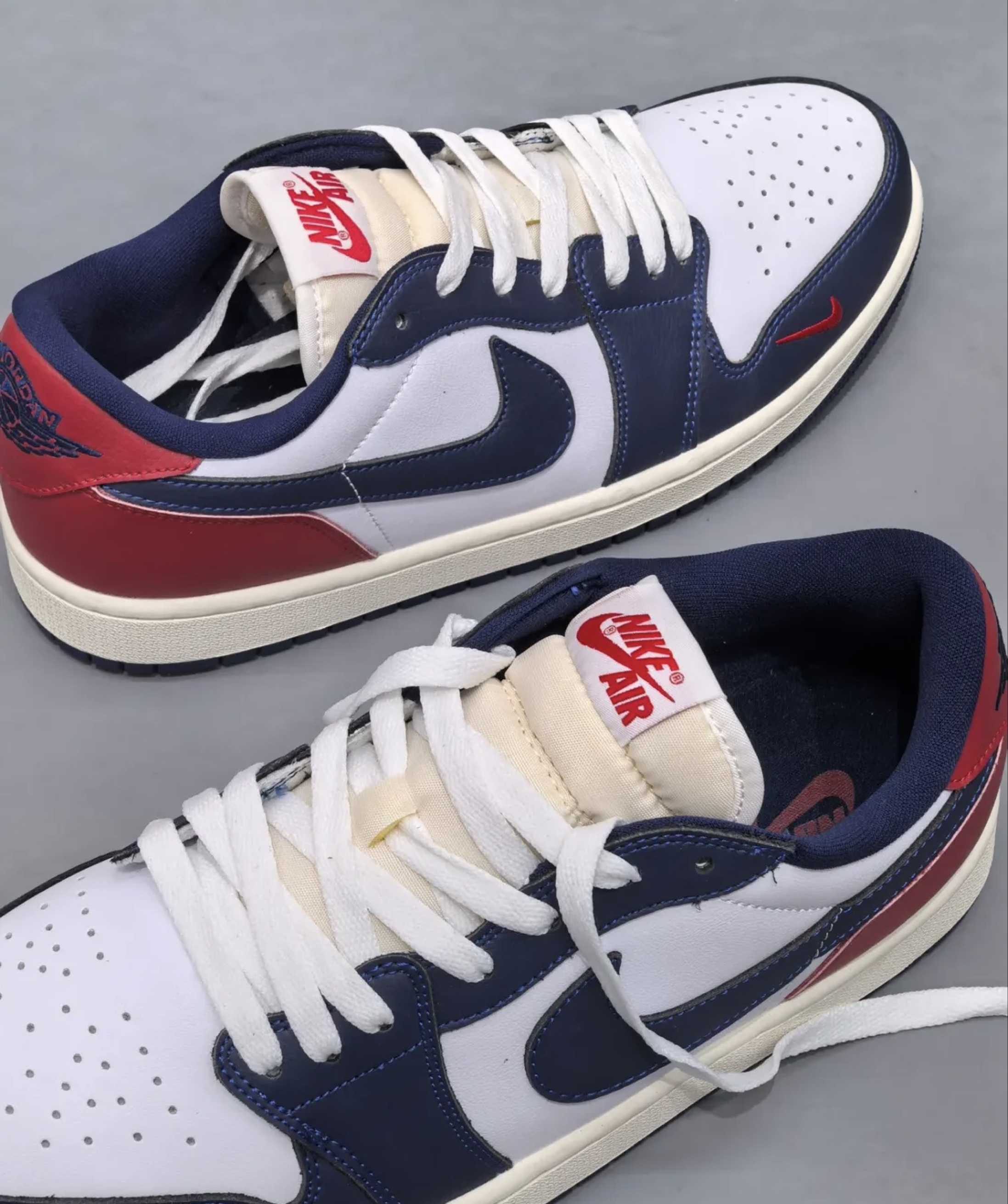 这双AJ1 Low太香了!白藏青红的配色很有复古感,日常搭休闲裤、牛仔裤都很绝。上脚特别舒服,走路逛一天也不累。不管是潮酷风还是简约风,它都能完美适配,真的非常不错,真心推荐给喜欢球鞋又追求舒适的小伙伴~