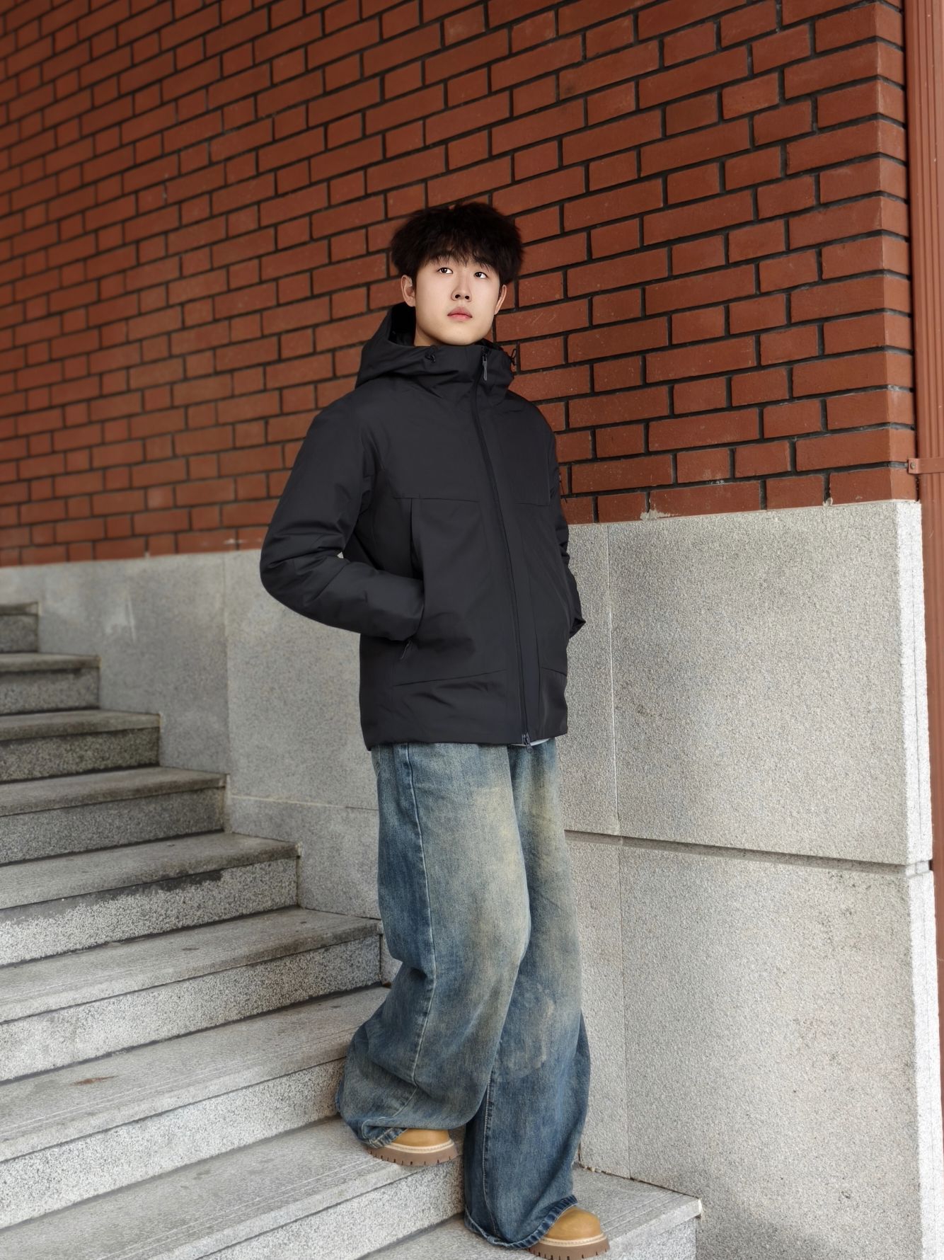 #高梵 黑金5.0这款羽绒服是秋冬穿搭的宝藏单品!黑色轻壳版型利落又显质感,鹅绒填充轻盈保暖,穿上完全没有臃肿感。内搭基础黑T,下身搭配做旧阔腿牛仔裤,再搭配一双黄靴,休闲随性中又带着商务的利落感,日常通勤、街头出街都很适配。 它的保暖性能很出色,鹅绒蓬松度够高,秋冬穿着足够抗风御寒。版型不挑身材,上身很显精神,黑色的百搭属性更是让它能和各种风格的下装、鞋款轻松组合。秋冬想要一件既能hold...