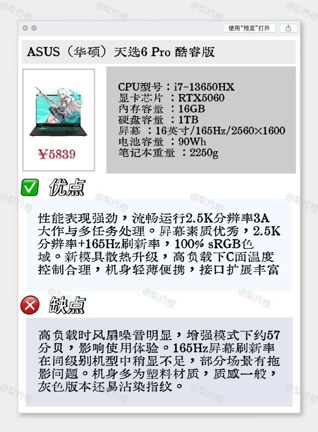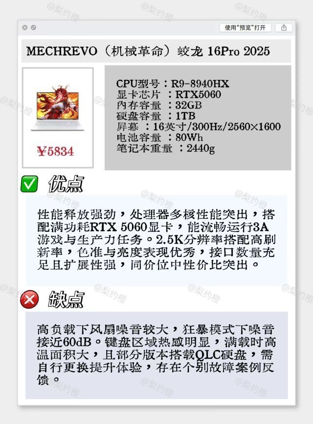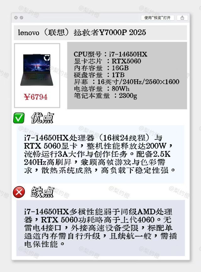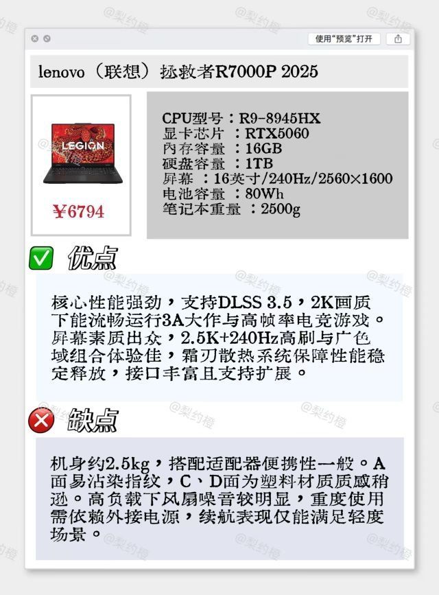 本篇笔记关联了Lenovo/联想 拯救者Y7000P RTX5060显卡 2025款 16英寸 游戏本 2.5K 240Hz 80Wh电池 散热系统 广色域 办公设计 碳晶黑、MECHREVO/机械革命 蛟龙16 Pro RTX5060显卡 2025款 16英寸 游戏本 满功耗释放 高刷 高性能 璃光白、Asus/华硕 天选6 Pro RTX5060显卡 2025款 16英寸 游戏本 轻薄 便携 满功耗 日蚀灰等商品,为用户提供真实的使用体验和购买参考。