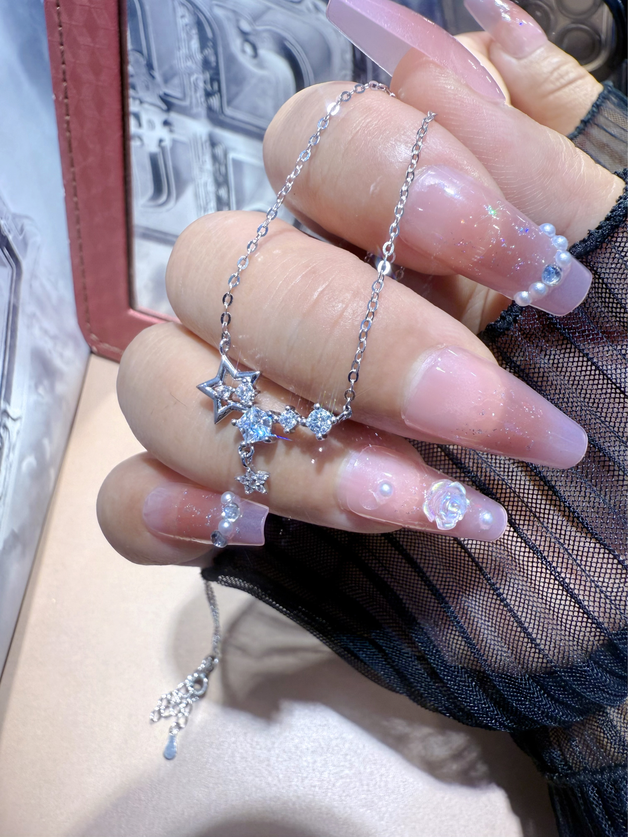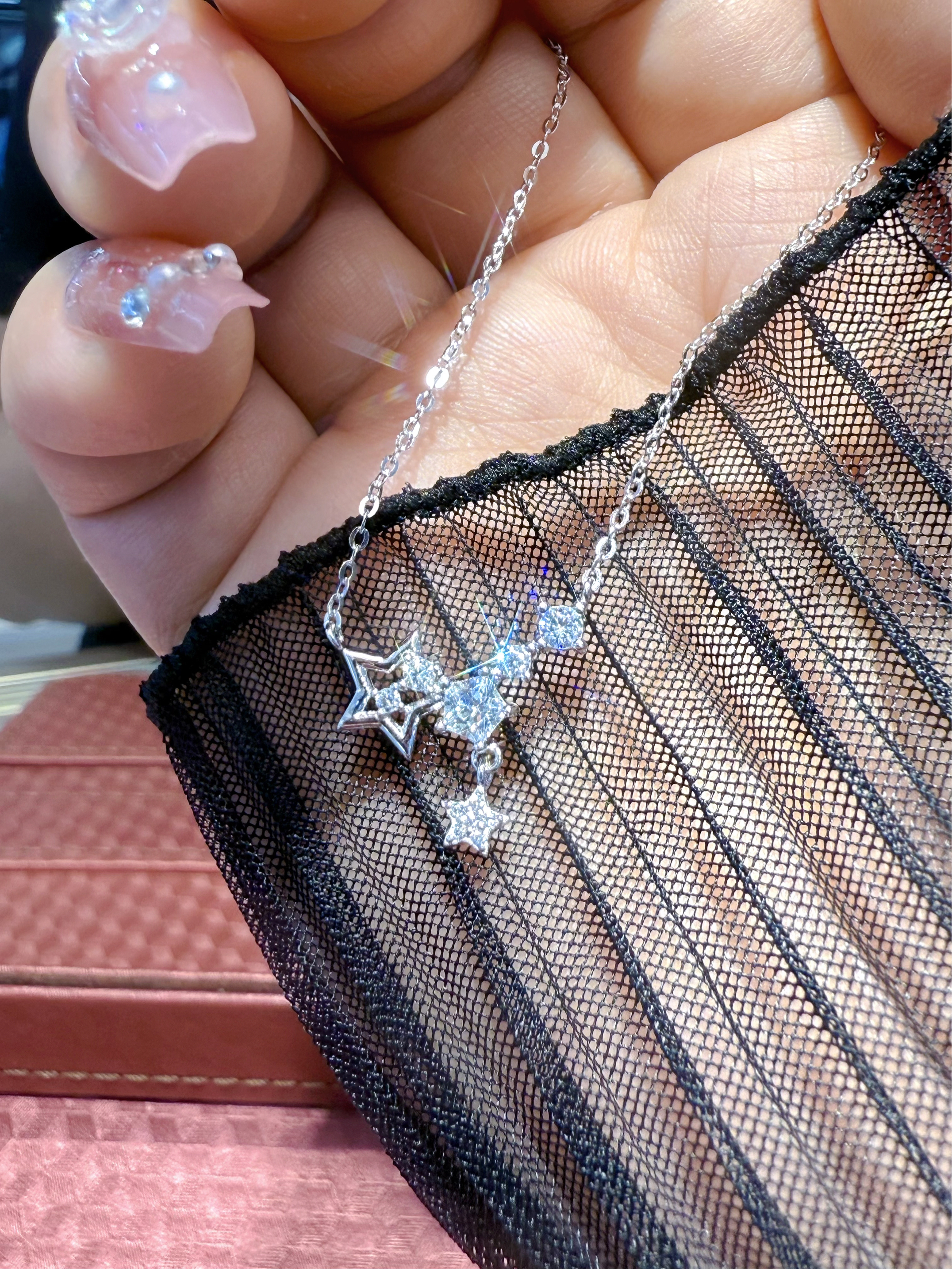 新入的这条星星拼接项链也太绝了!亮晶晶的星星设计,戴在颈间又闪又有氛围感,仿佛把银河戴在了脖子上~ 925银材质太贴心了,完全不用担心过敏问题。 关键是和秋天的各种穿搭都适配度拉满,一戴就提升整体精致感,直接拉满!