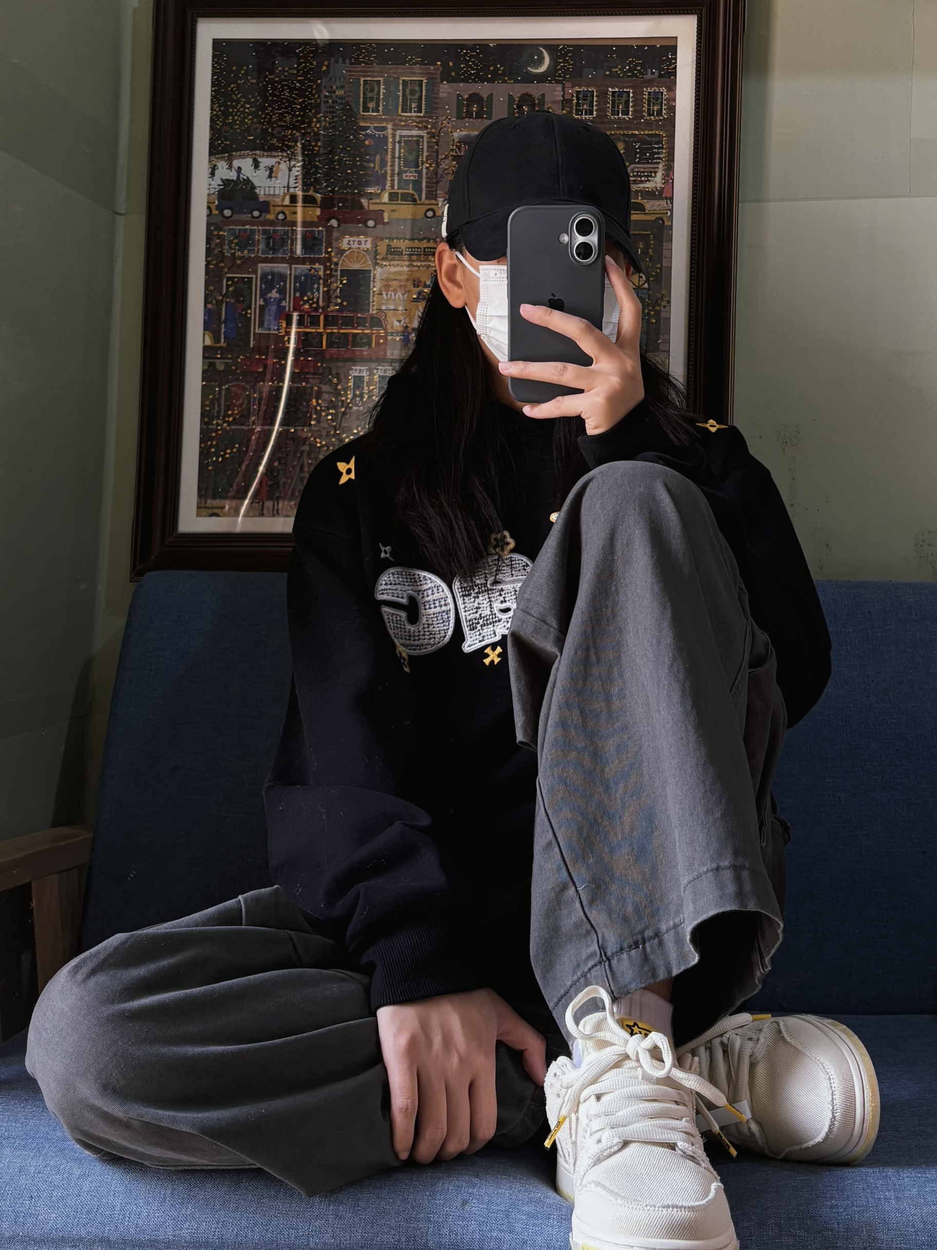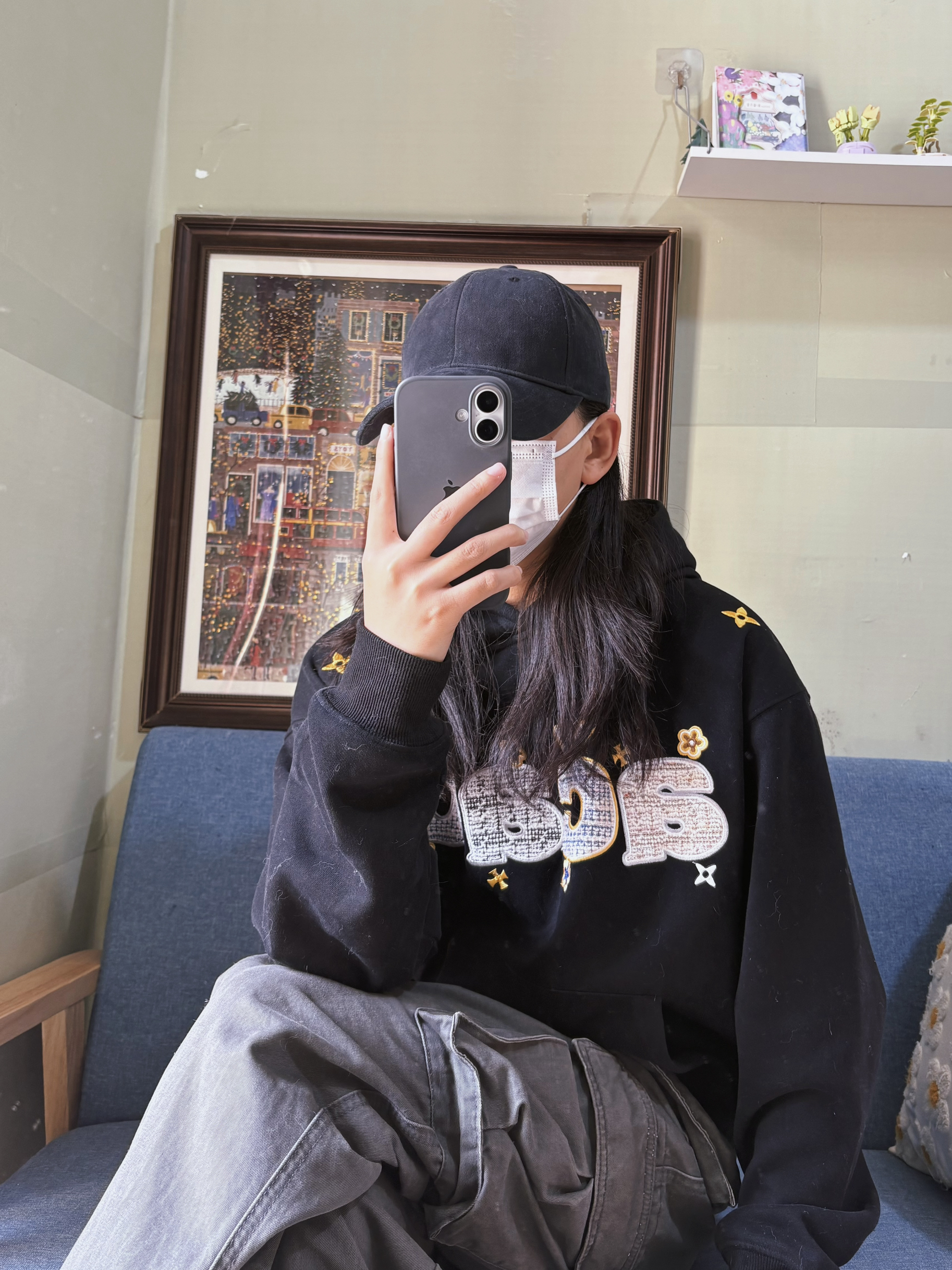 黑色主色+白色字母印花,简约又有设计感!纯棉材质柔软透气,春秋穿超舒服~袖口和下摆罗纹收口,保暖又贴合。 胸前“acac”字母+“Abandon joy Life”标语,潮流态度满满+连帽设计实用,休闲or情侣装都很适合,搭配牛仔裤、运动鞋,轻松get高街风!