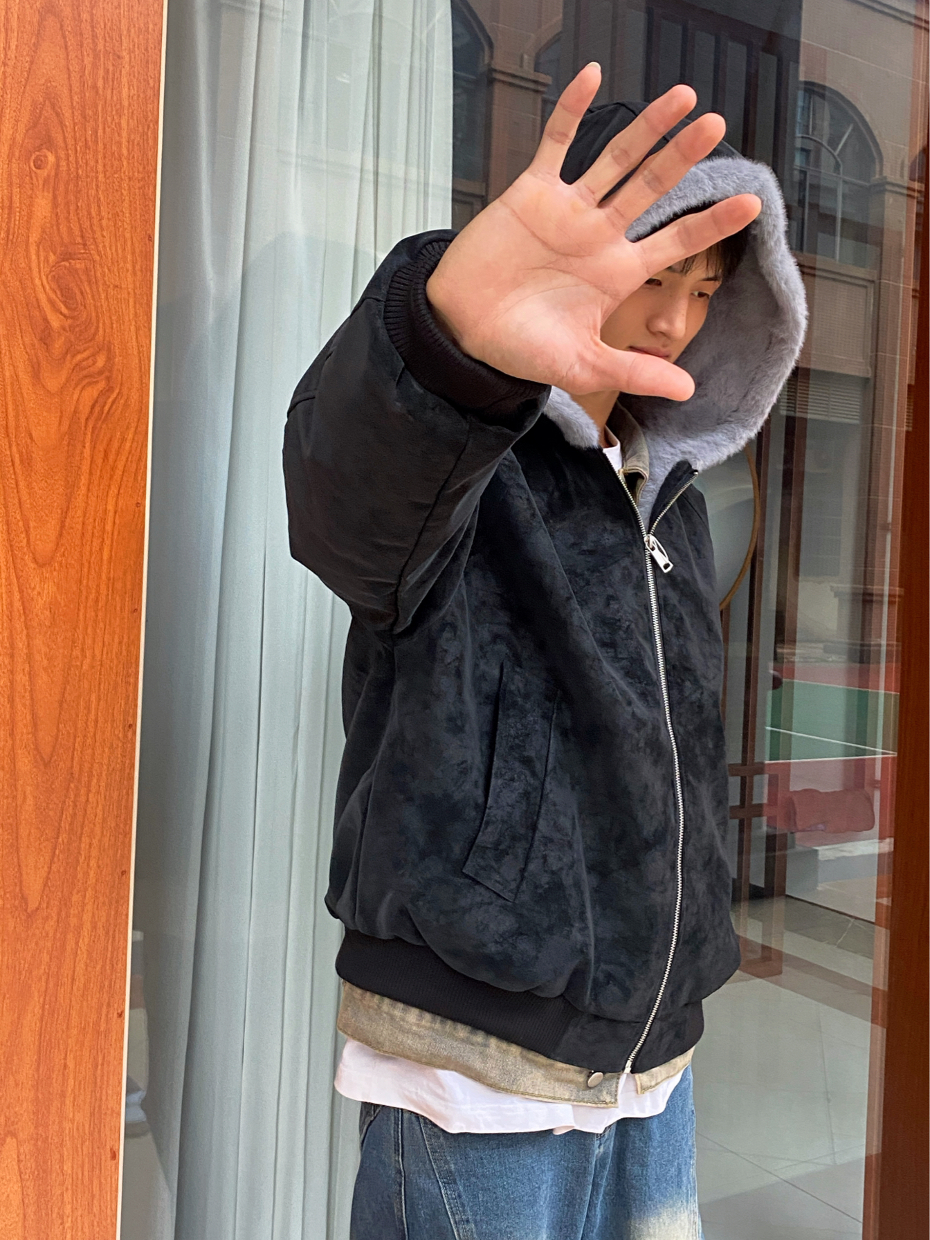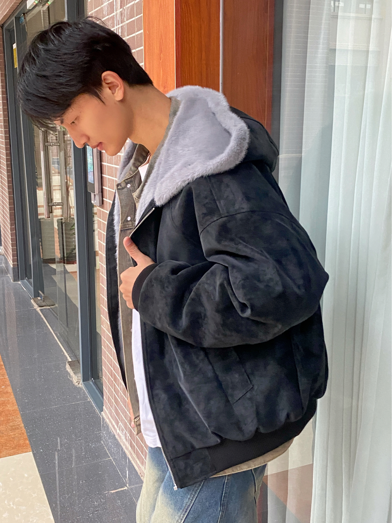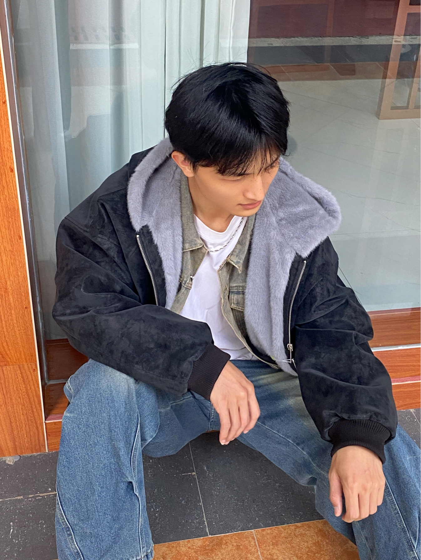 秋日叠穿很时髦,今天用这件麂皮外套来尝试叠穿! 它麂皮面料质感很绝,摸起来软乎乎的☁️内里的毛绒特别厚实,深秋穿也能扛住风💨版型是宽松的,里面叠穿牛仔夹克或者卫衣都不臃肿,美式高街那味儿一下就出来了🕶️