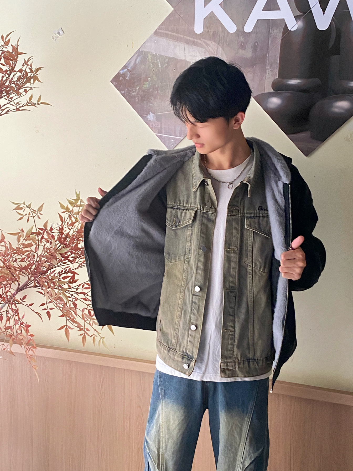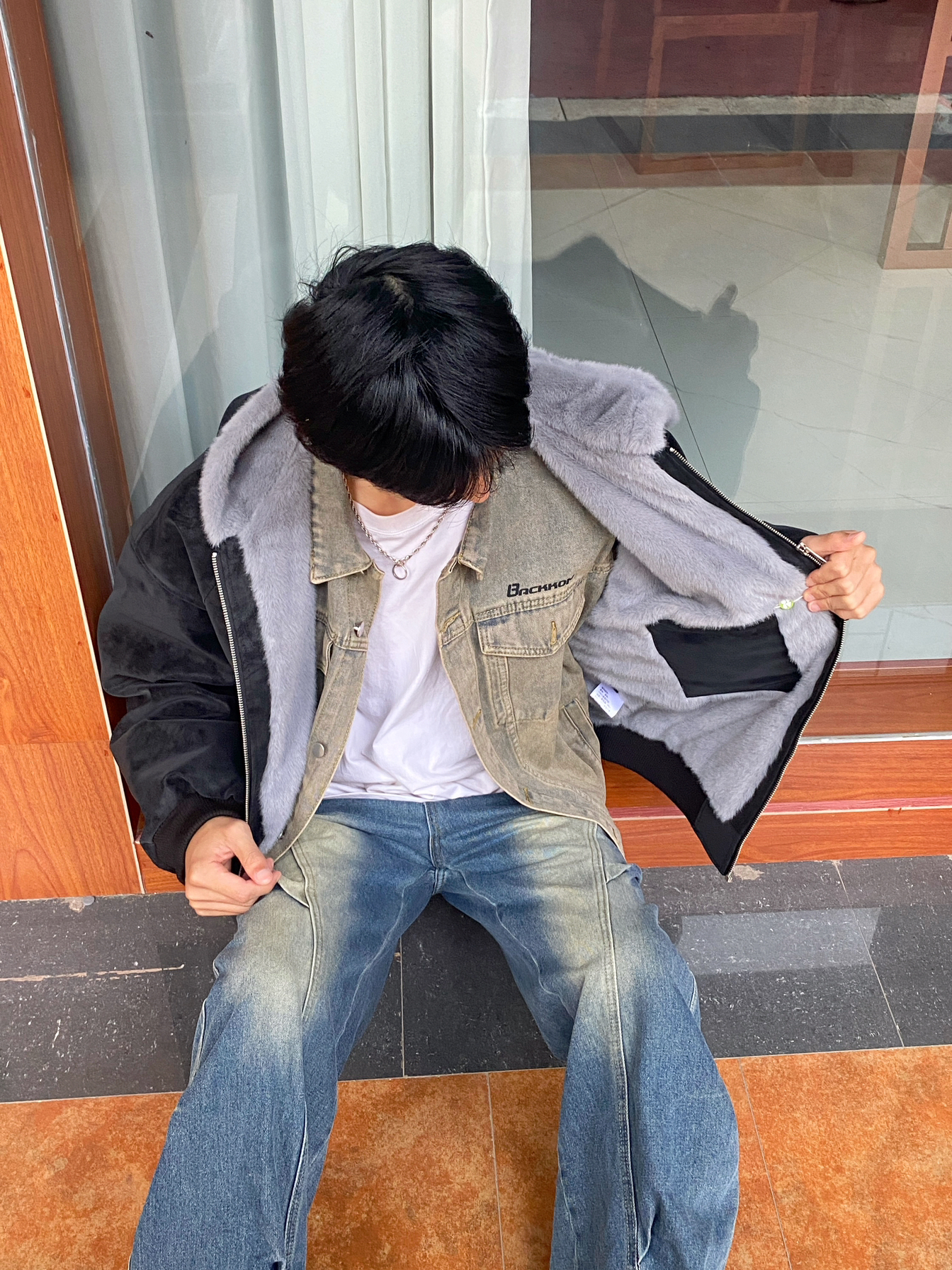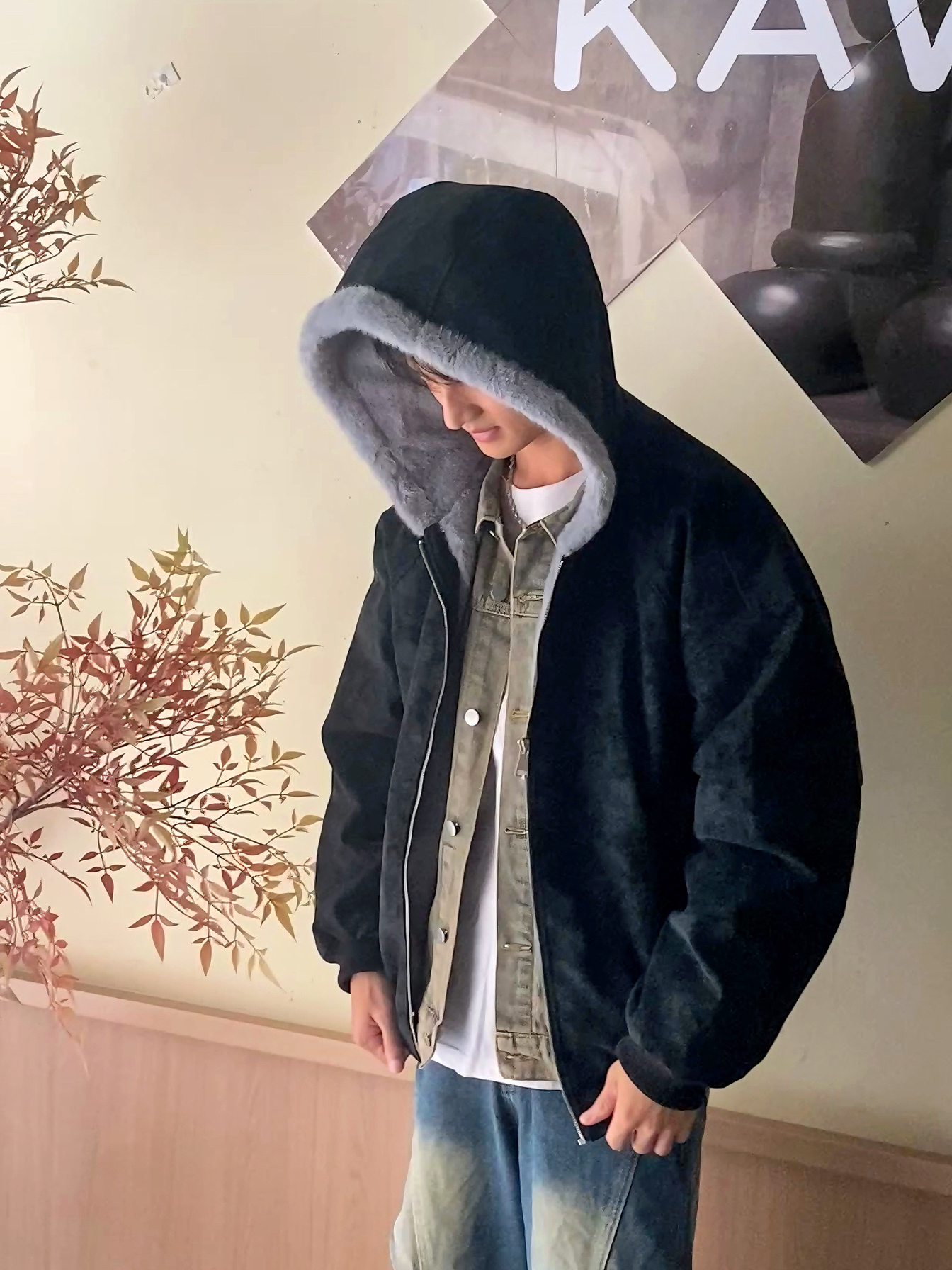 秋日叠穿很时髦,今天用这件麂皮外套来尝试叠穿! 它麂皮面料质感很绝,摸起来软乎乎的☁️内里的毛绒特别厚实,深秋穿也能扛住风💨版型是宽松的,里面叠穿牛仔夹克或者卫衣都不臃肿,美式高街那味儿一下就出来了🕶️