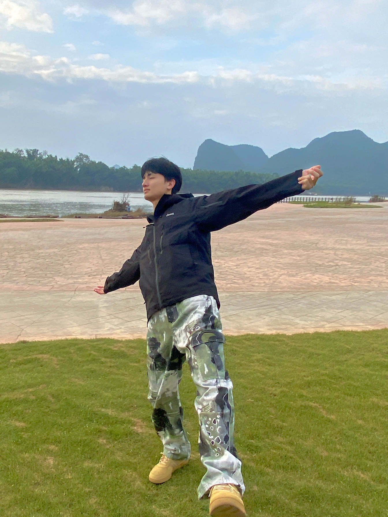 在江边试了试新入的冲锋衣,宽松版型还挺显随性的~ 连帽设计很有安全感☂️平时搭配牛仔裤就很日常,而且它是可拆卸内胆的,不同温度都能应对,实用性真的没话说👍 你们觉得怎么样?😊
