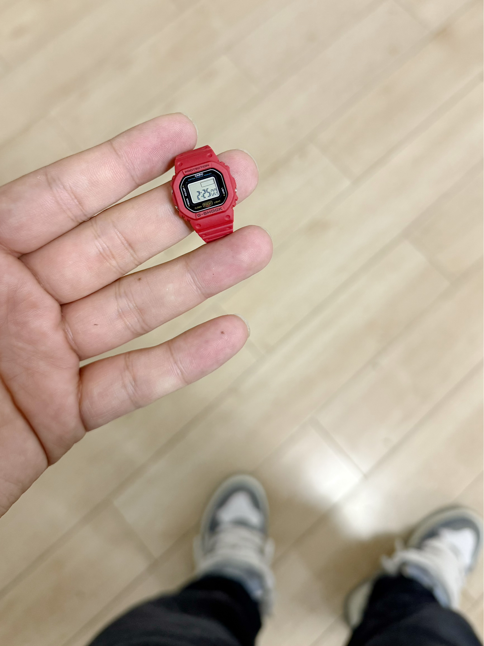 说它好玩还真好玩,展开就是一个迷你版的卡西欧手表,不过表带好薄啊,我真怕把它撑断了,好奇这还是那个抗操耐用的G-SHOCK吗⁉️
