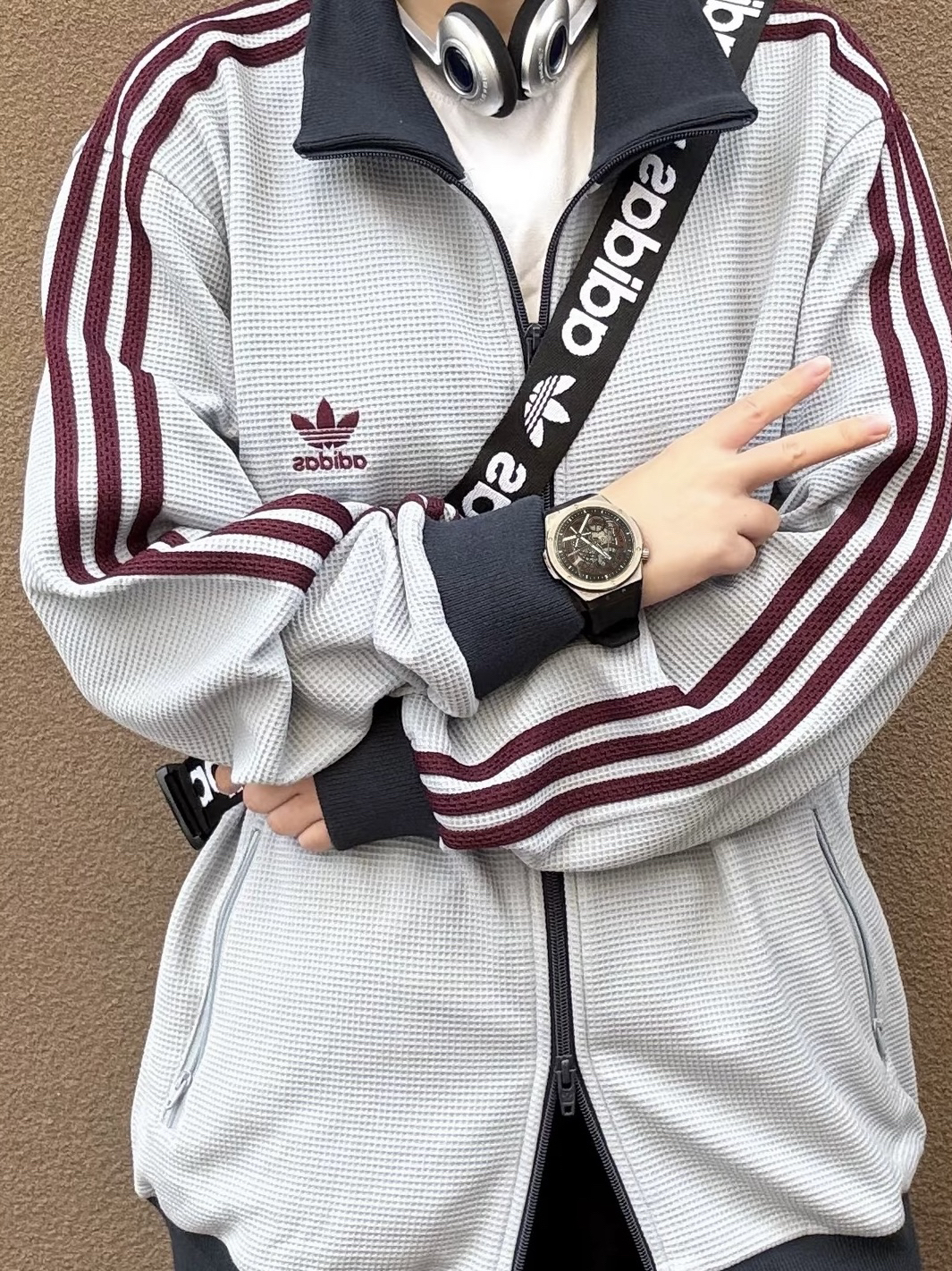 秋冬想走复古运动风?这件灯芯绒外套给我锁死✨ 浅蓝配酒红条纹,复古感直接拉满!灯芯绒面料软软糯糯,秋冬穿既保暖又有质感~搭条阔腿裤和粉勾板鞋,再戴顶亮色针织帽,走在街上就是复古潮人本人👟 这种穿搭,秋冬日常出街绝绝子!