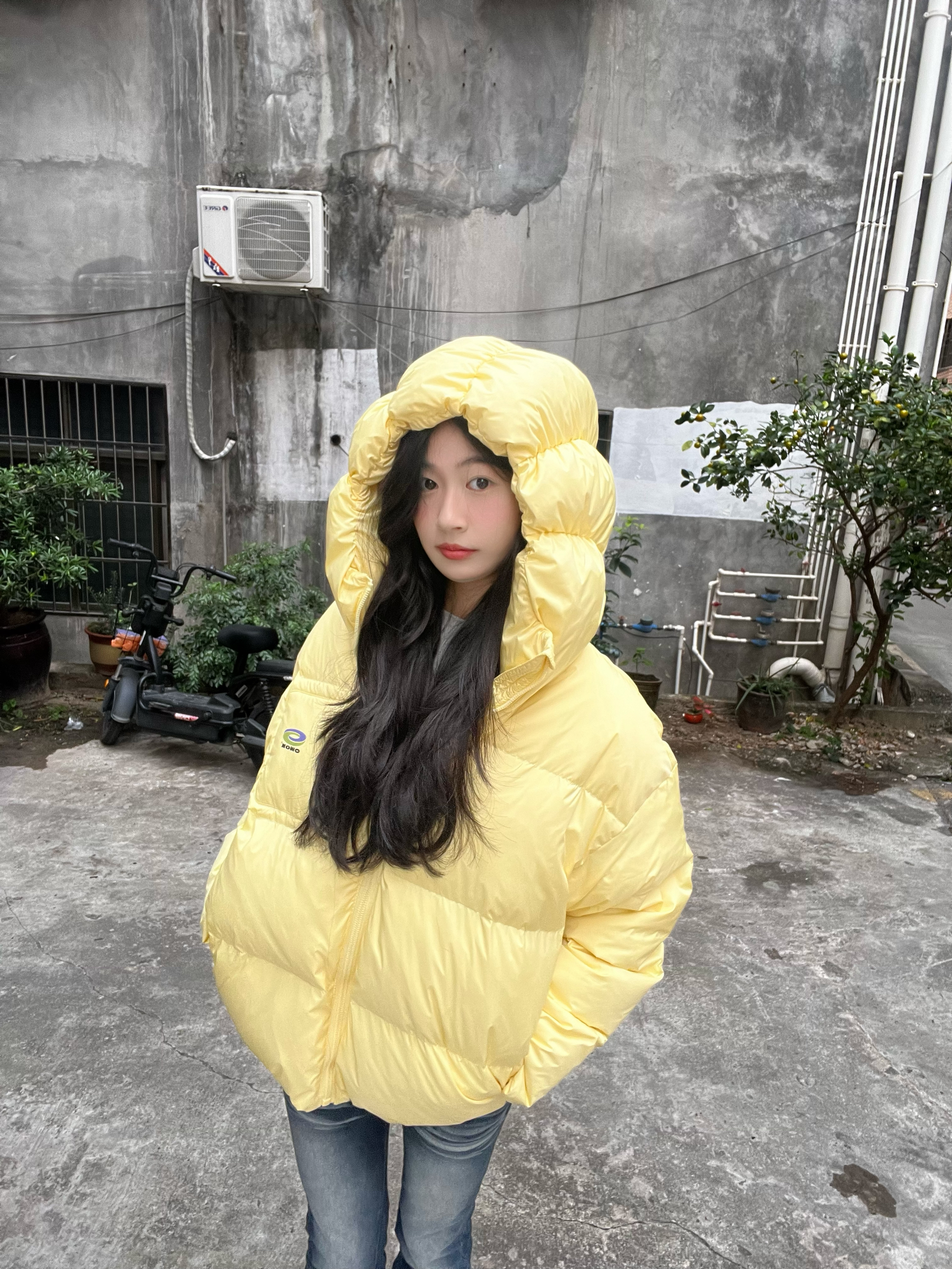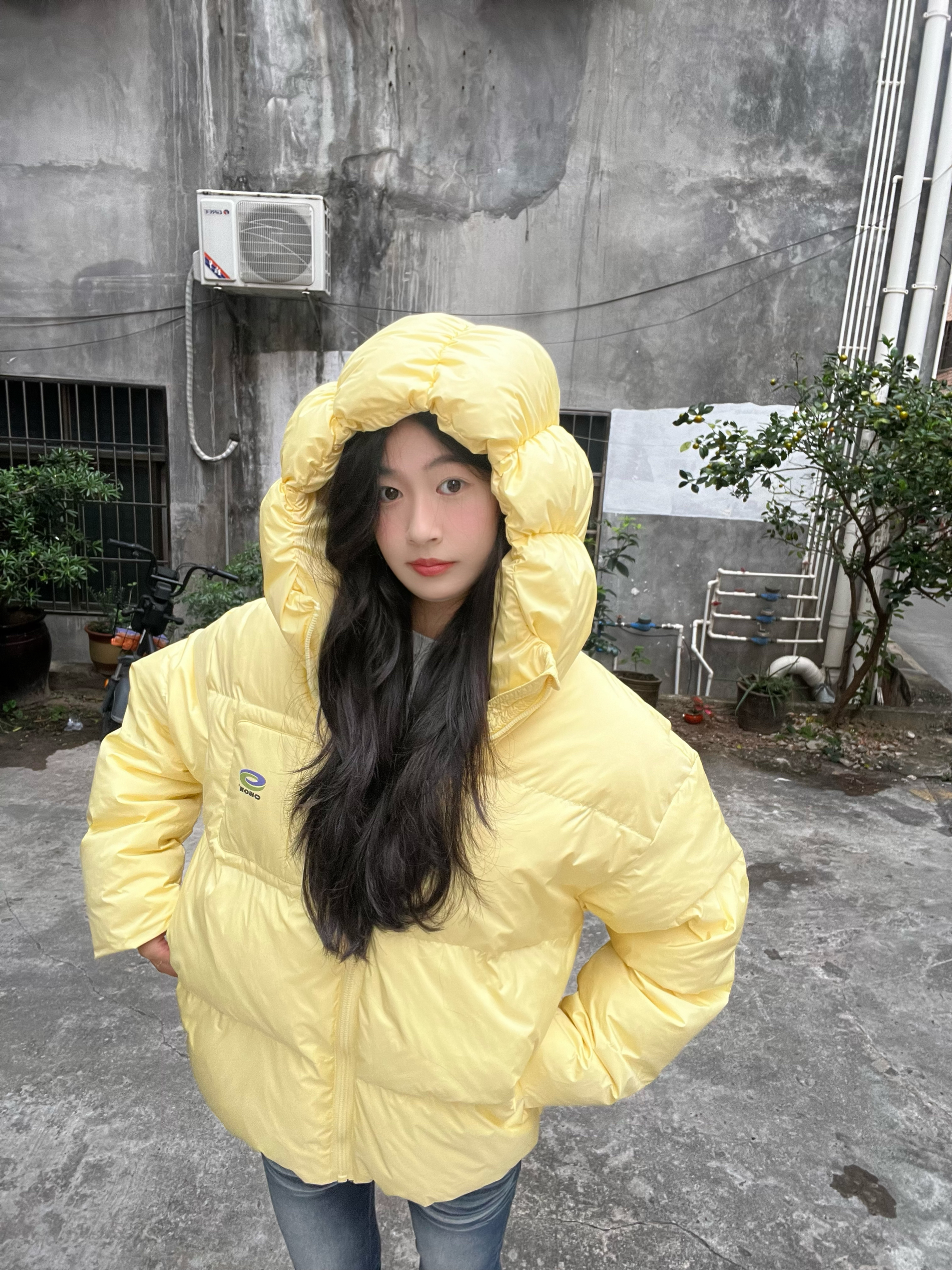 好喜欢我的羽绒服 黄色显得整个人嫩嫩滴 穿上很暖和 包裹性也是很OK 比较好搭配 还是很不错的