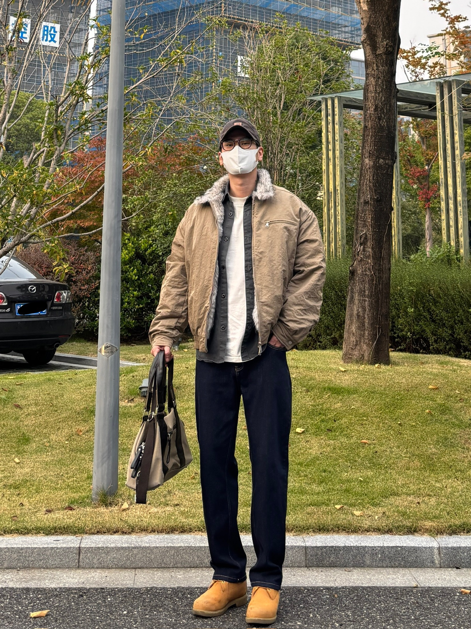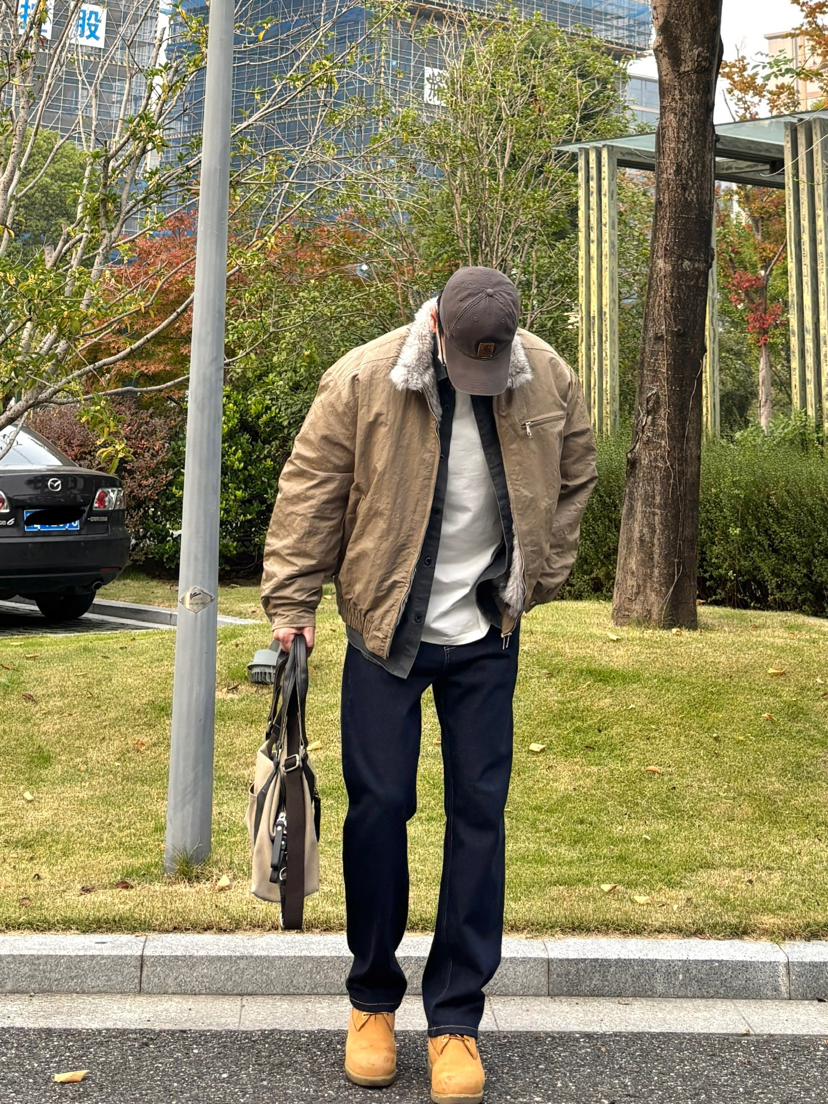 男生冬天也可以穿毛领,毛领+厚实棉服,冬天再冷也不怕了。 卡其色毛领棉服搭配灰色工装衬衫,叠穿层次感, 原色直筒牛仔裤+冬天必备的复古工装靴 又酷又硬朗,保暖性也很👌 - 今日穿搭 衣服裤子都来自:NICE LILI 鞋子:timberland
