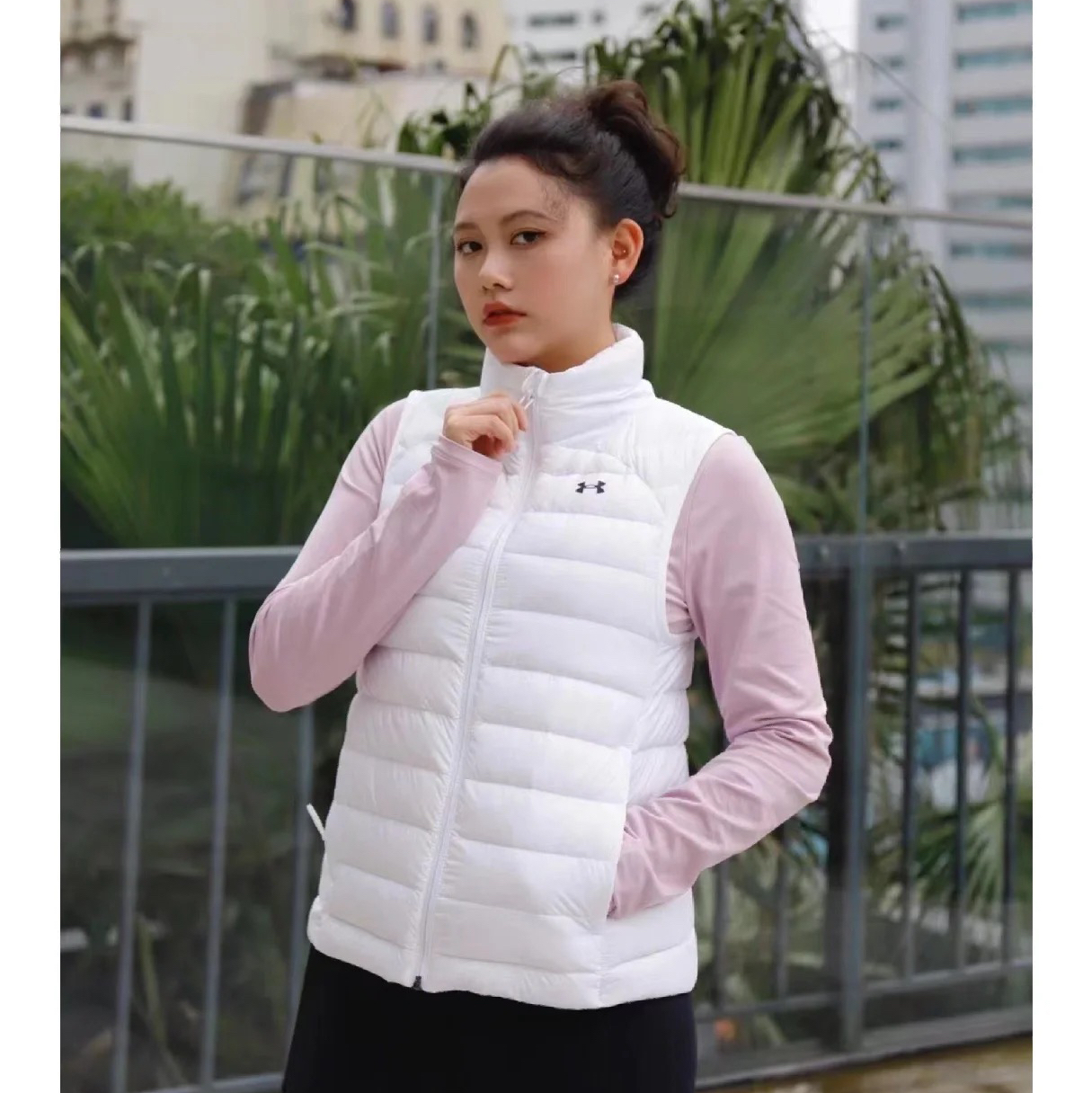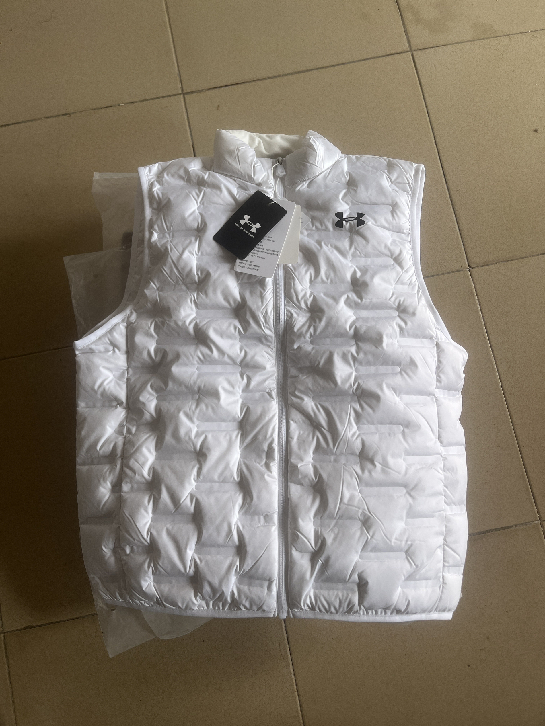安德玛UA轻薄羽绒马甲,白色 90%白鸭绒填充,轻薄保暖 拉链开合设计,胸前UA经典logo。 适合秋冬户外运动穿着,可内搭可外穿。 收到货还以为被骗了感觉里面没有东西这件衣服也太轻了吧感觉没有穿但是真的特别保暖