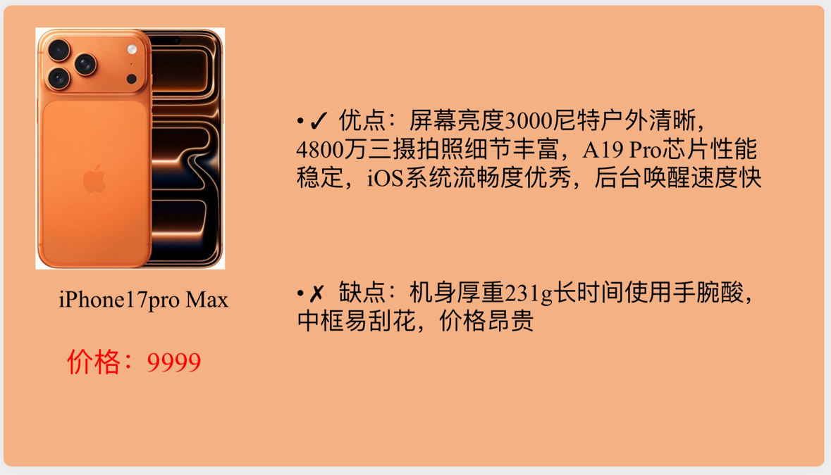 本篇笔记关联了Apple/苹果 iPhone17 Pro Max 5G 手机 抗反射显示屏 全新散热系统 4800万像素镜头全模组 8K视频录制 8倍变焦 支持WIFI7 全网通 双卡 视网膜屏 星宇橙色、MI/小米 17 Pro Max 5G 手机 龙晶玻璃 3D超声波指纹 双潜望长焦 快充 大电池 防水 全网通 妙享背屏 白色等商品,为用户提供真实的使用体验和购买参考。