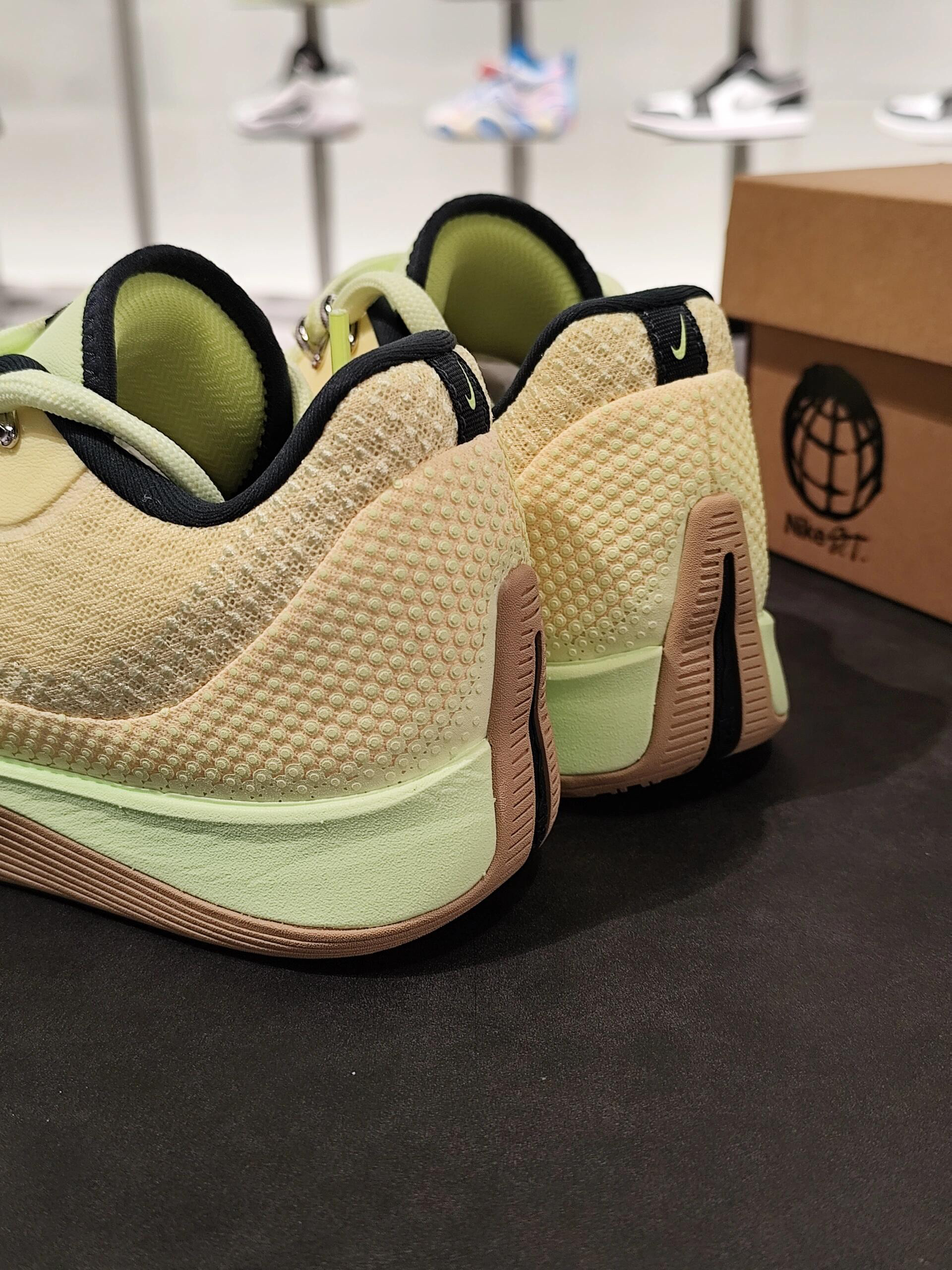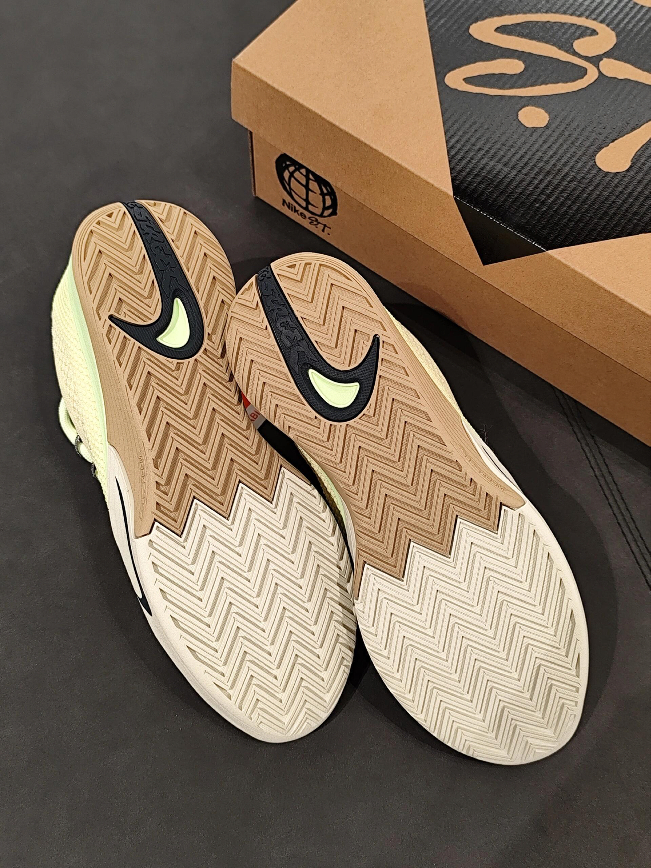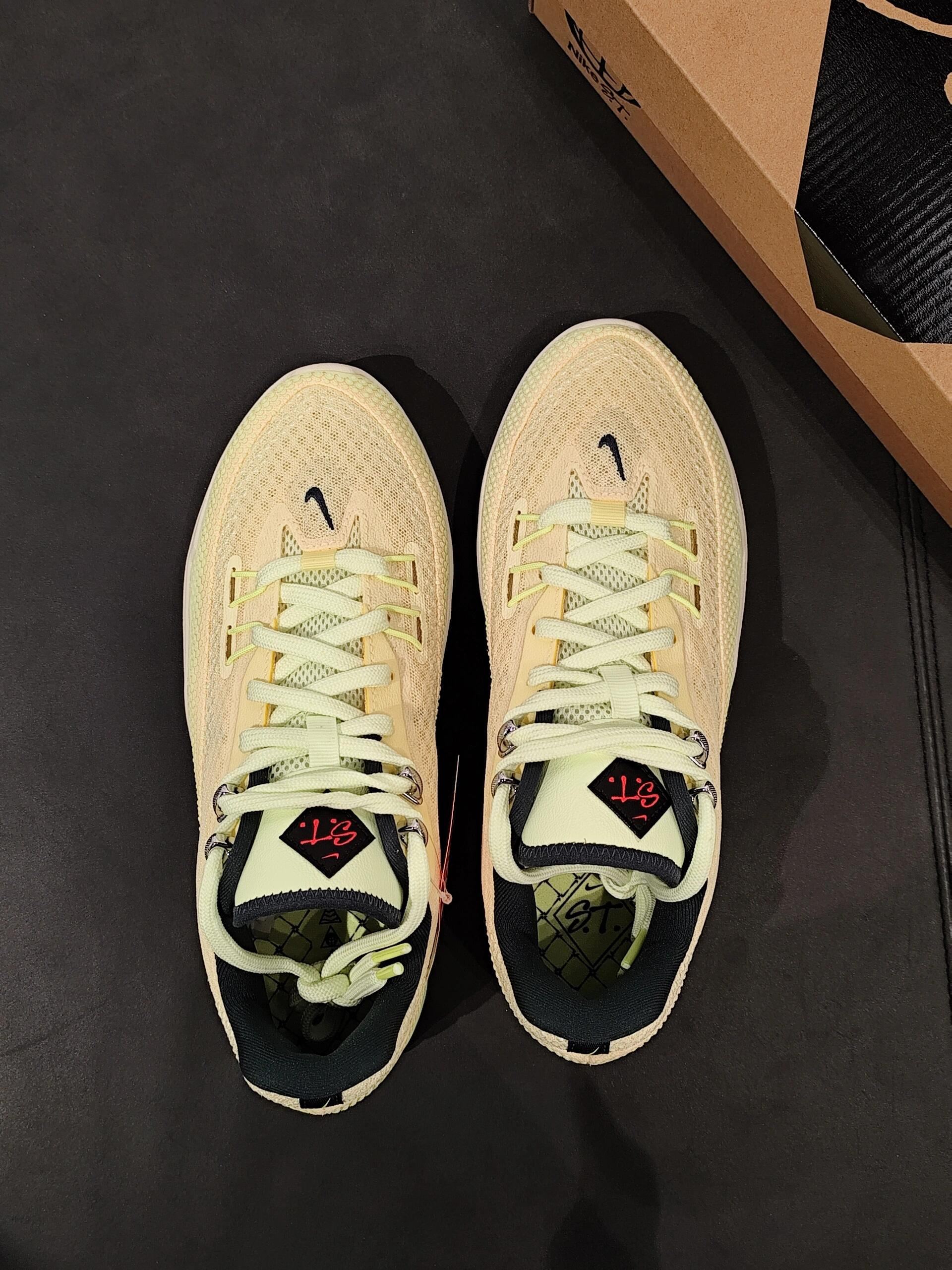 谁能拒绝一双像裹了层浅柠晨雾的鞋啊——奶黄基底叠着淡绿肌理,藏青勾边像给柔感加了截冷调细节,往深黑台面一放,轻氧又利落的质感直接戳中审美。 鞋面是透气的针织材质,贴脚却不闷,鞋身的细密肌理兜得住风,打半场球脚面也清爽;同色系鞋带松垮系着,鞋底的软弹支撑刚好,不管是运动还是通勤,都是一身穿搭的“轻氧锚点”。 这双鞋的「适配穿搭公式」: 1. 轻氧运动风:配浅卡其篮球短裤+淡绿运动背心,背心和鞋...