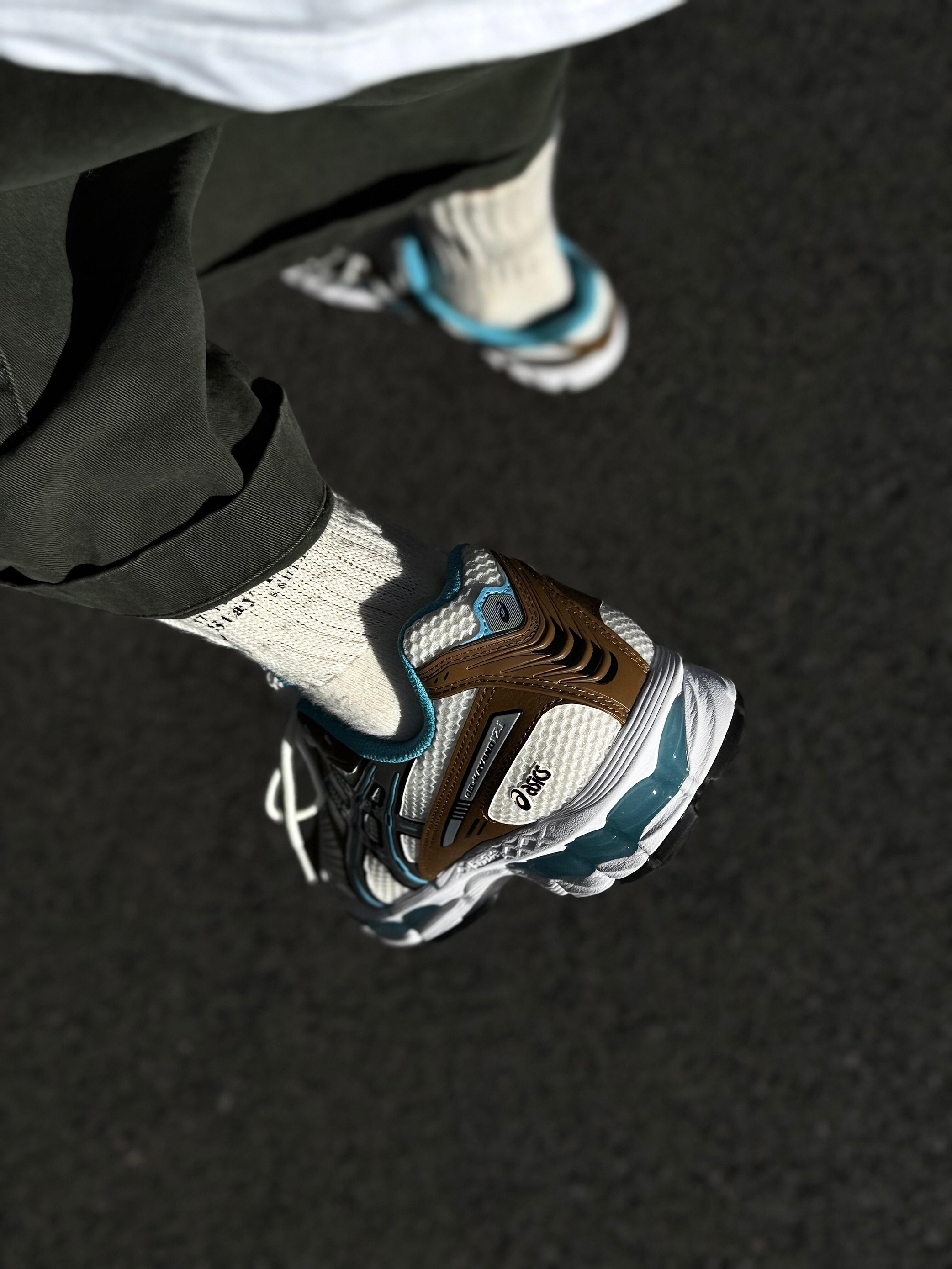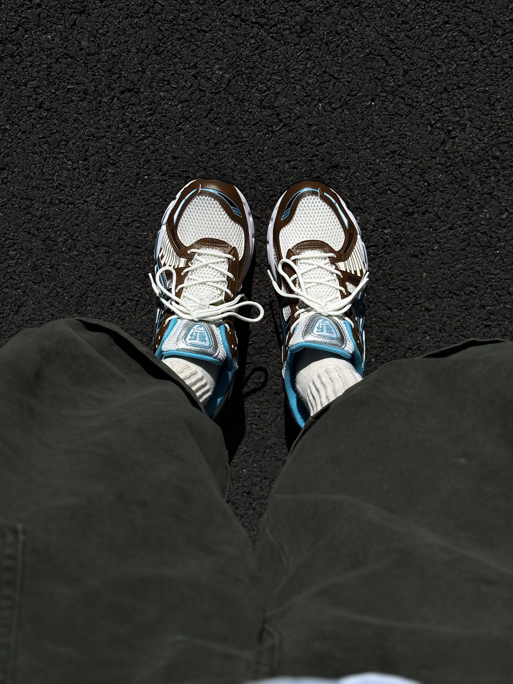 谁能拒绝一双像从千禧年街拍里走出来的鞋啊——米白基底叠着棕调肌理,湖蓝勾边像给复古感加了截清透滤镜,鞋身的线条裹着旧跑鞋的随性,踩在沥青路上,松弛又有记忆点的质感直接戳中审美。 鞋面是透气的网面拼接,鞋头的气孔兜得住风,逛一下午老街区脚面也清爽;白鞋带松垮系着,鞋底的软弹刚好踩出慵懒感,不管是出街还是散步,都是一身穿搭的“氛围锚点”。 这双鞋的「适配穿搭公式」: 1. 复古citywalk风...