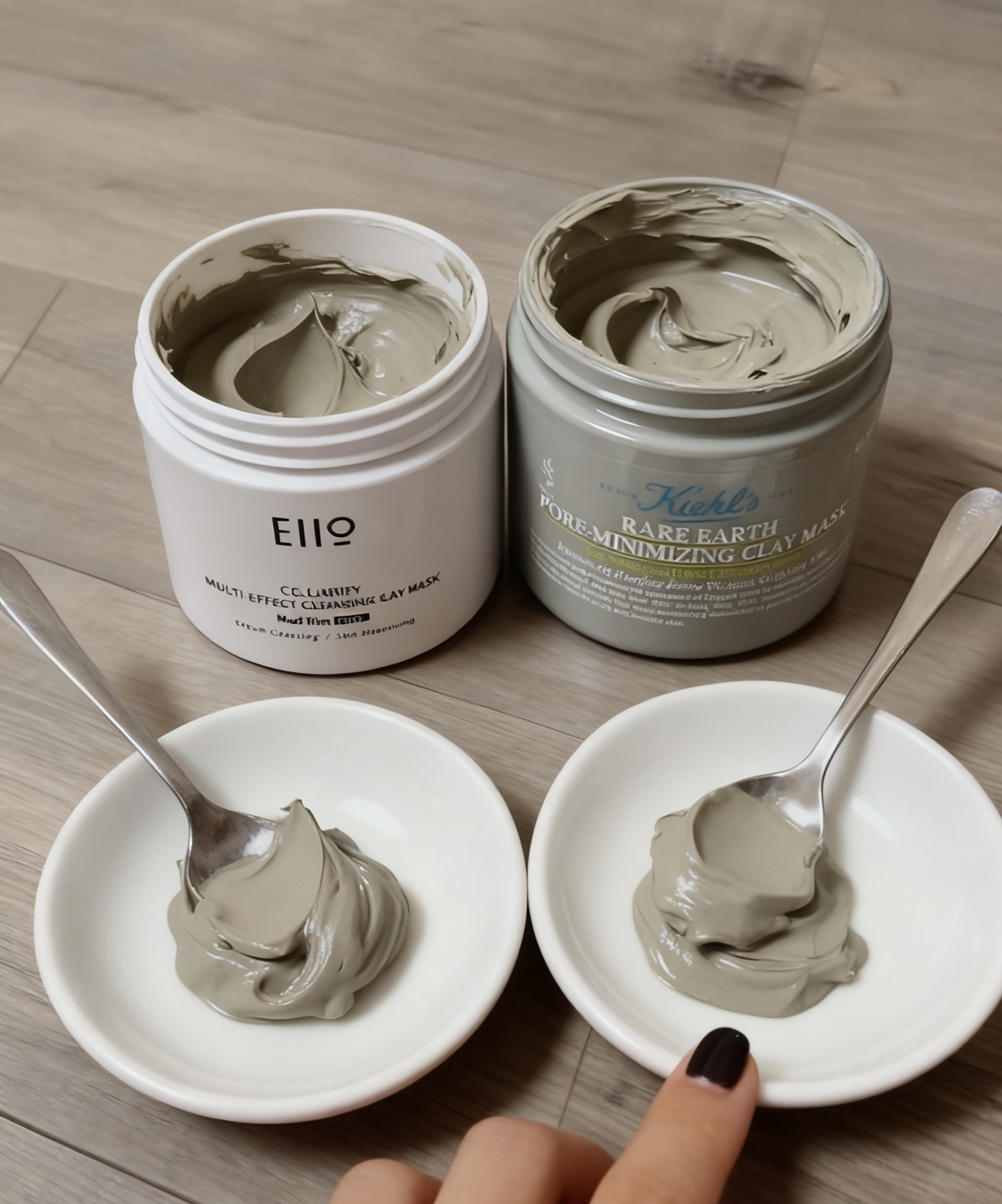 1️⃣ 罐身细节:Eiio的简约白罐和科颜氏的经典灰罐,包装质感各有风格 2️⃣ 质地对比:一个是丝滑的冰淇淋状,一个带点矿泥颗粒感,上脸肤感不同 3️⃣ 延展性试涂:实际推开时,Eiio的涂抹均匀度会更顺手一些 4️⃣ 真实消耗:用了两个月的余量状态,日常清洁会定期用它们 5️⃣ 敷后状态:手背试涂10分钟后,能看到毛孔里的脏东西会浮出来 💡 混油肤质的使用体验:一周用2次清洁,T区出油会稍微缓...