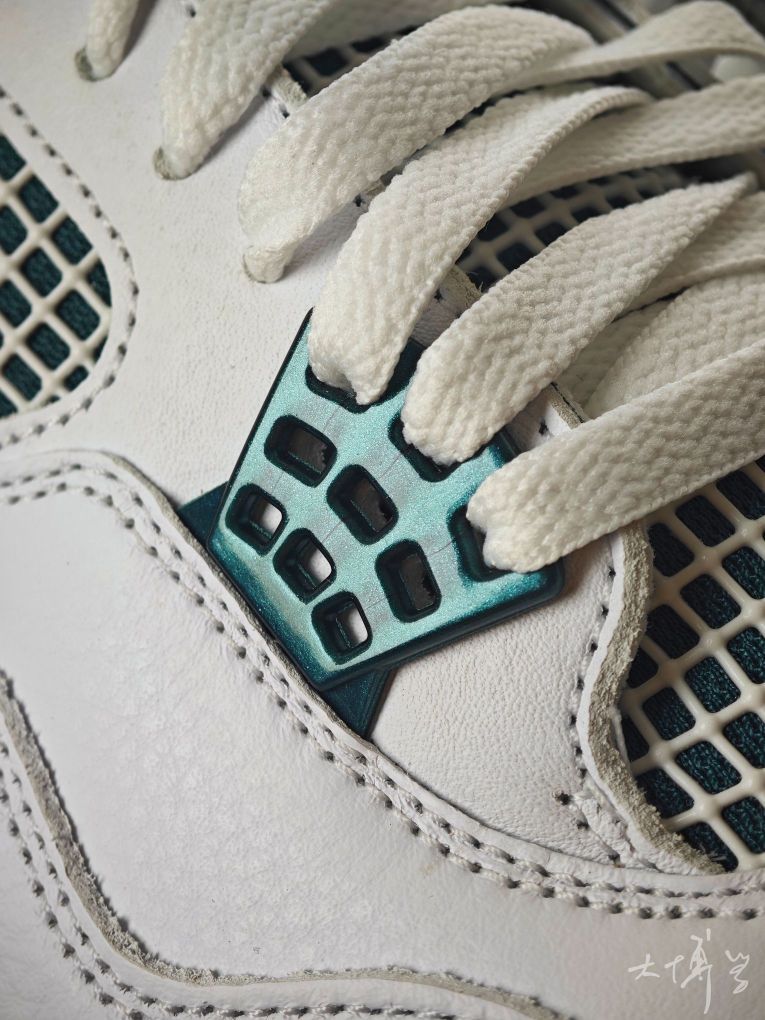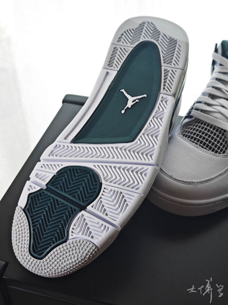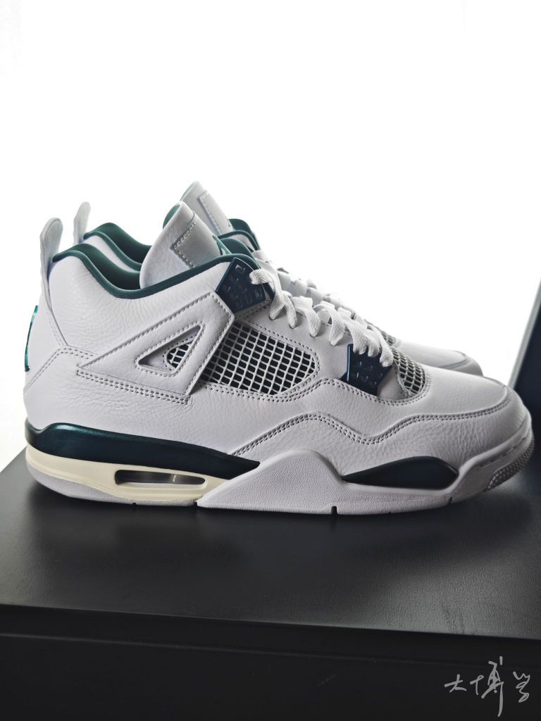 一双我觉得很好看的AJ4 对我来说,这种绿色搭配白色的鞋子都挺好看 这双以白色为主色 搭配氧化绿色的细节 整体配色清新且融合了复古的鞋型 鞋面采用皮革材质,质感细腻纹理清晰 绿色的鞋带扣、鞋跟jumpman是我最喜欢的地方 尺码正常,建议按照平时的尺码选择 虽然后跟有Sole气垫 依旧不建议穿这双去篮球实战