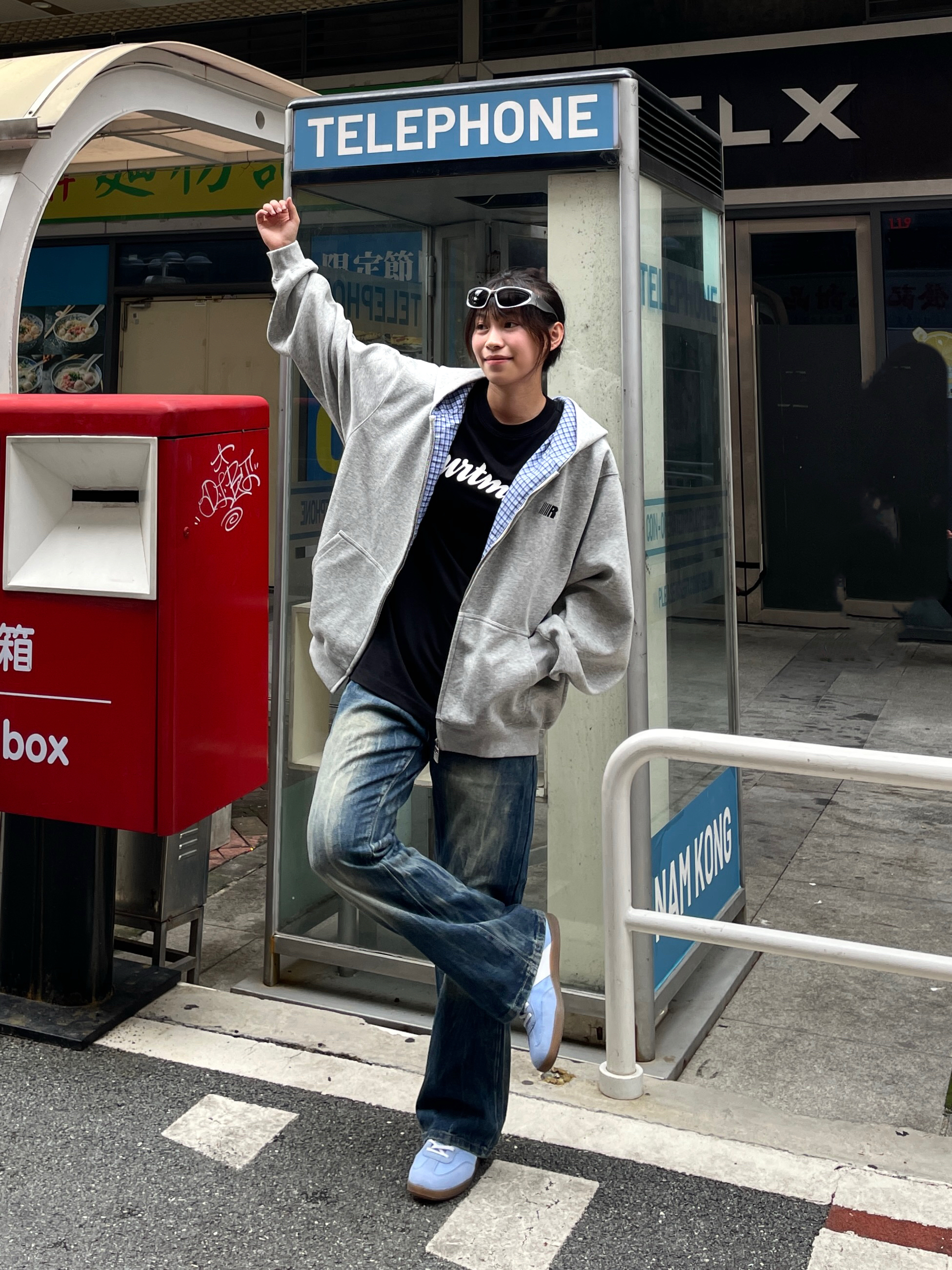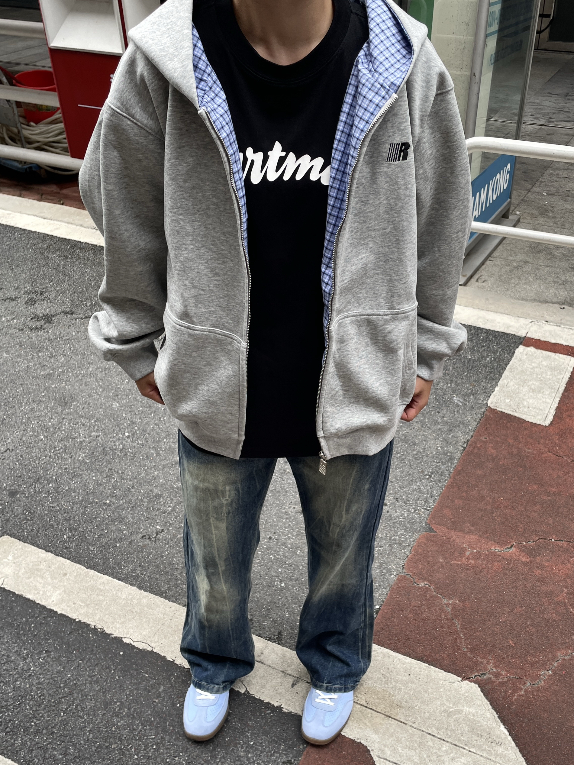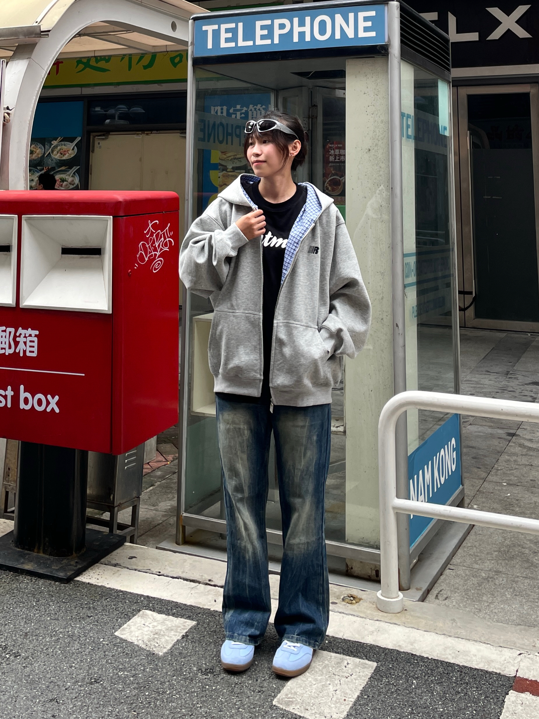 Hello~这里是穿搭女孩Dali - 美式入秋新装指南🧭 上身一件 FDR 美式卫衣 Oversize版型 灰色出街休闲都特百搭! 拉链内里格子蓝条纹设计高级感满满🤘🏼 搭配一条水洗牛仔蓝前后呼应一点蓝📘 码数很正!我165/51穿M刚刚好~