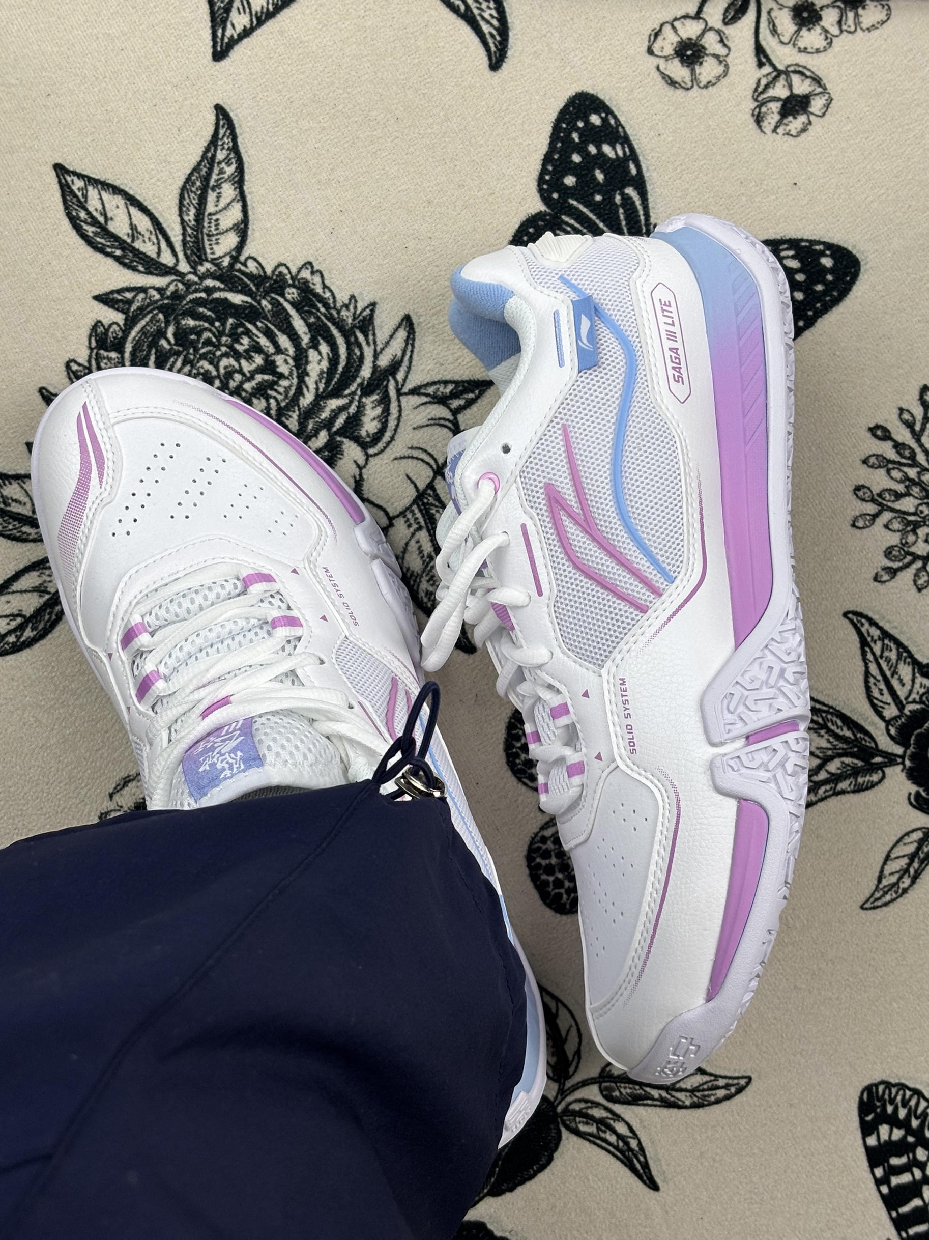 入手这双鞋打了快一个月球,来说一说穿它的真实感受~ 它的优点很突出,首先是性价比,作为贴地飞行系列的轻量版,价格友好不少,学生党或预算有限的球友可以考虑。穿着包裹感比较舒服,网前搓球、快速转身没什么束缚感,而且渐变的配色也很好看。 但也有不足,它的透气性一般,鞋面材质虽耐磨,但是质感偏硬,刚上脚那几天,足弓处有点硌脚,得穿几次才磨合好。另外,减震对于大体重球友可能不够,我体重偏瘦觉得还行。 整...