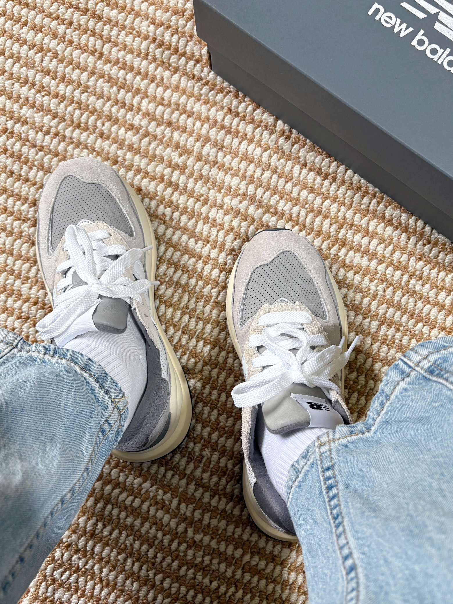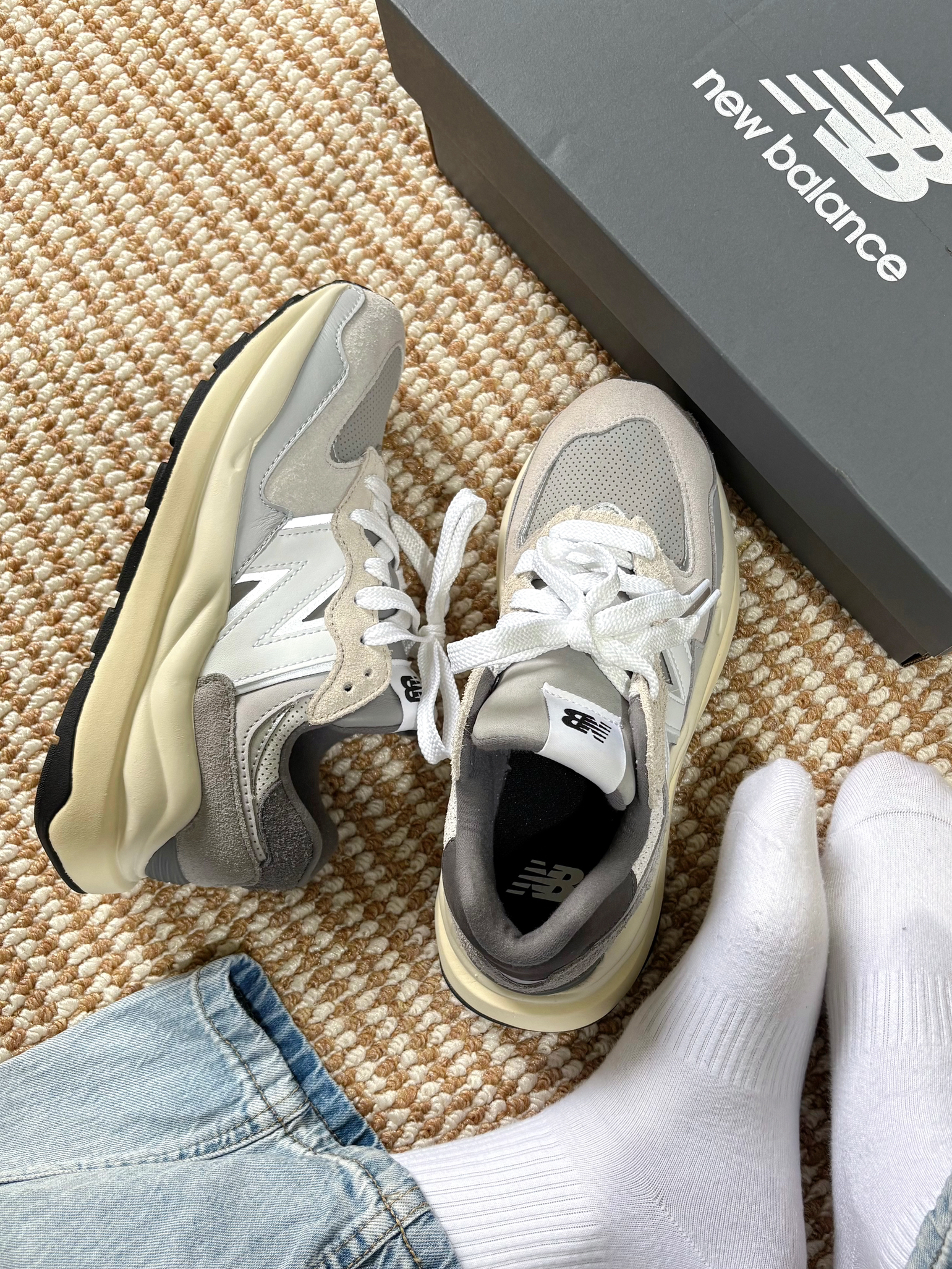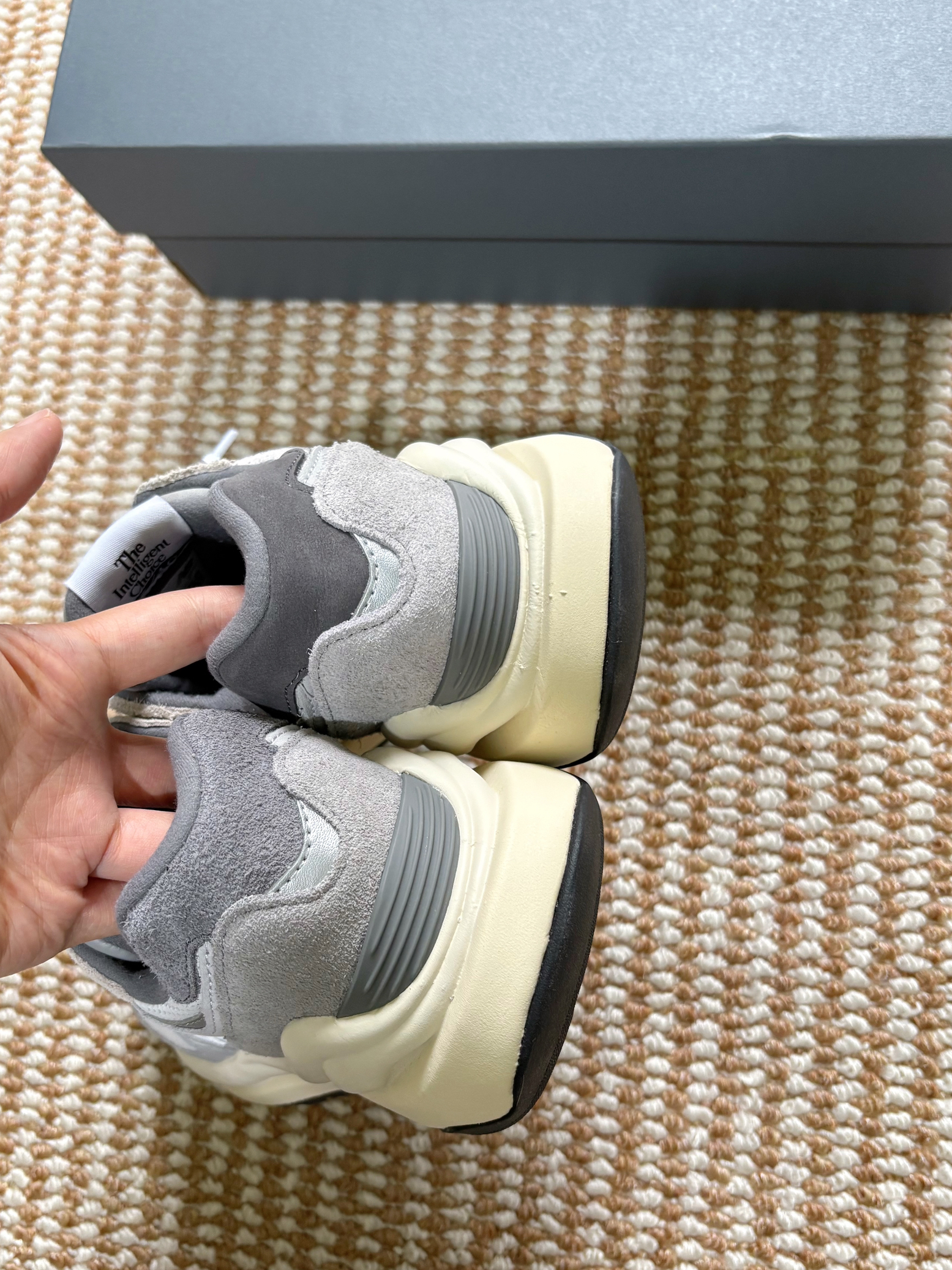nb5740元祖灰,更适合秋冬一点,美貌到显不显腿细都不重要了,就算不穿摆在家里也好看,秋冬搭大衣穿应该还不错相比327穿着要重一些!