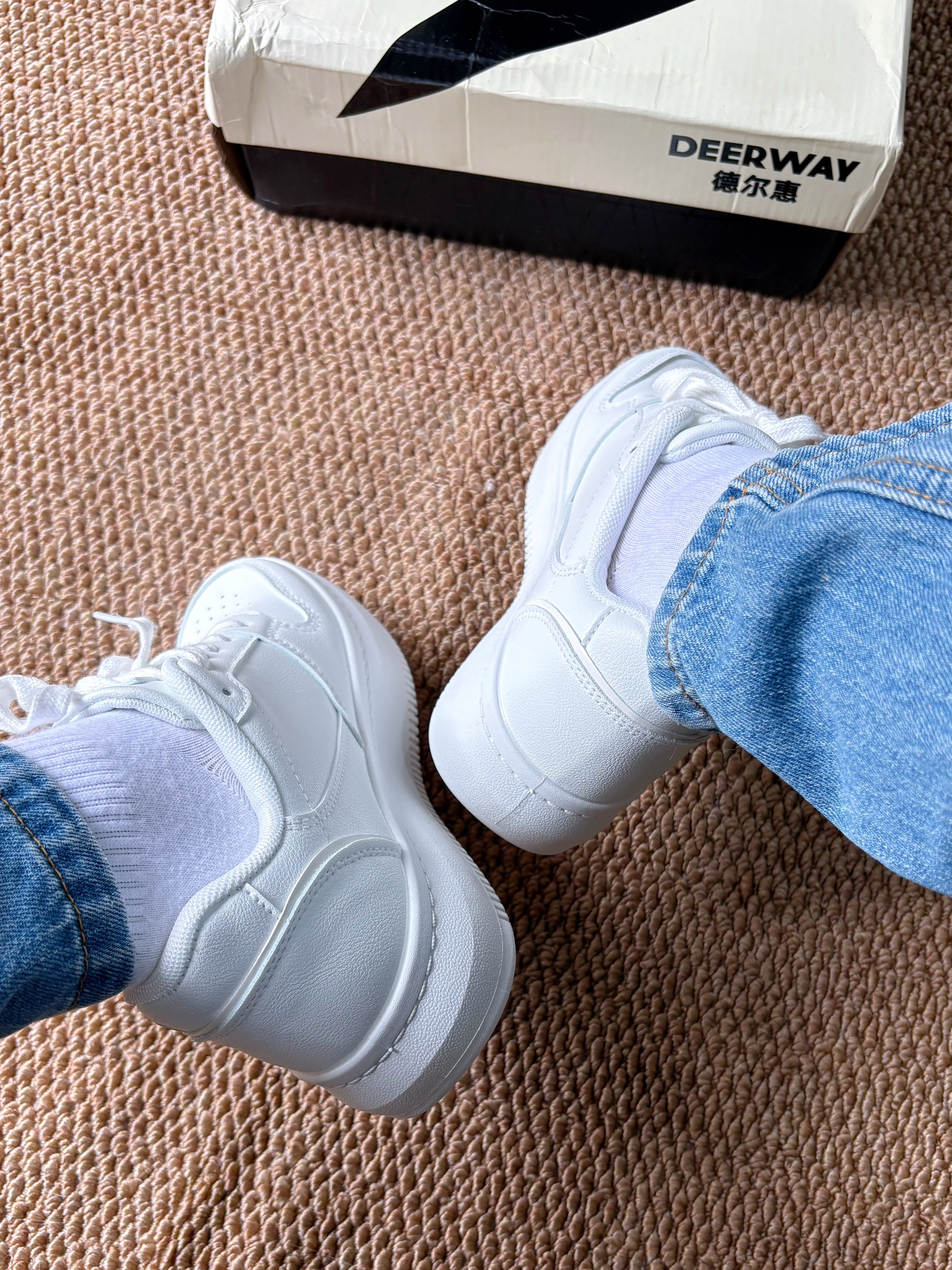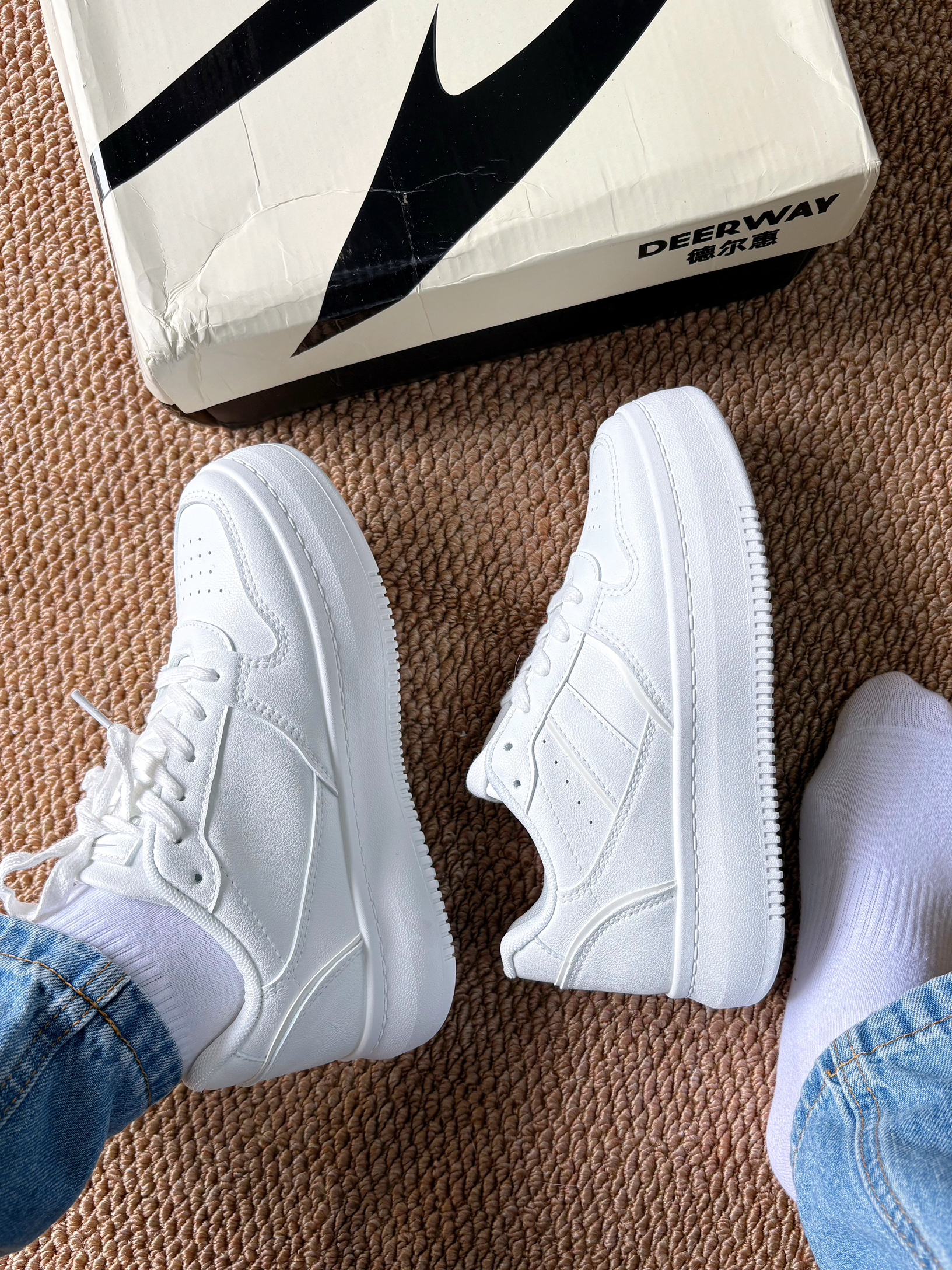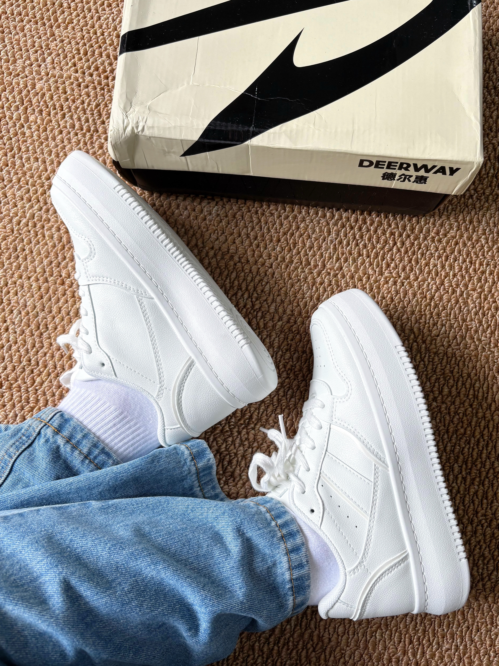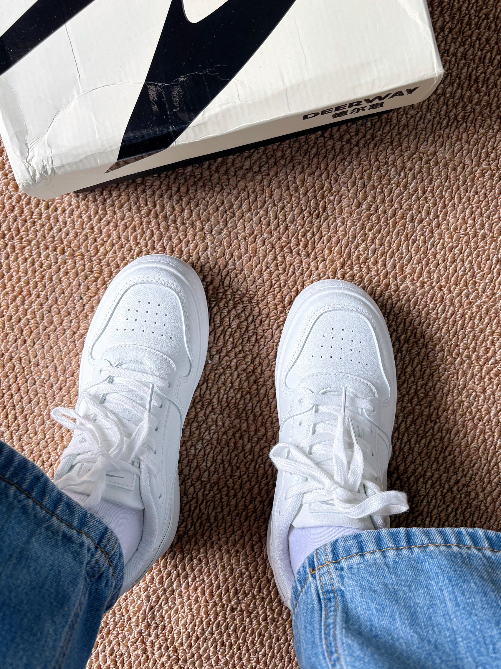 小白鞋。干净又百搭! 包裹性很好 不会顶脚 超级舒服! 可以随意搭配衣服裤子 怎么搭都好看耶!😍