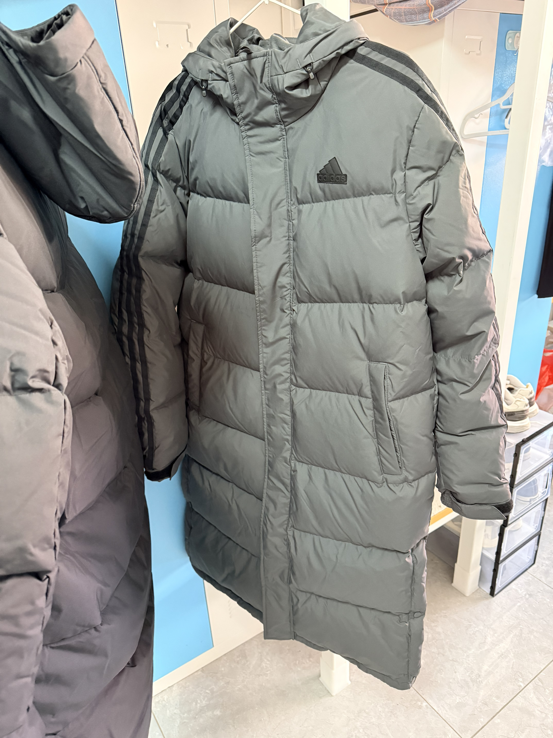 本篇笔记关联了Adidas/阿迪达斯 LONG DOWN暖芯科技600蓬防水防风侧开排扣长款过膝三条纹连帽加厚鸭绒羽绒服 深灰等商品,为用户提供真实的使用体验和购买参考。