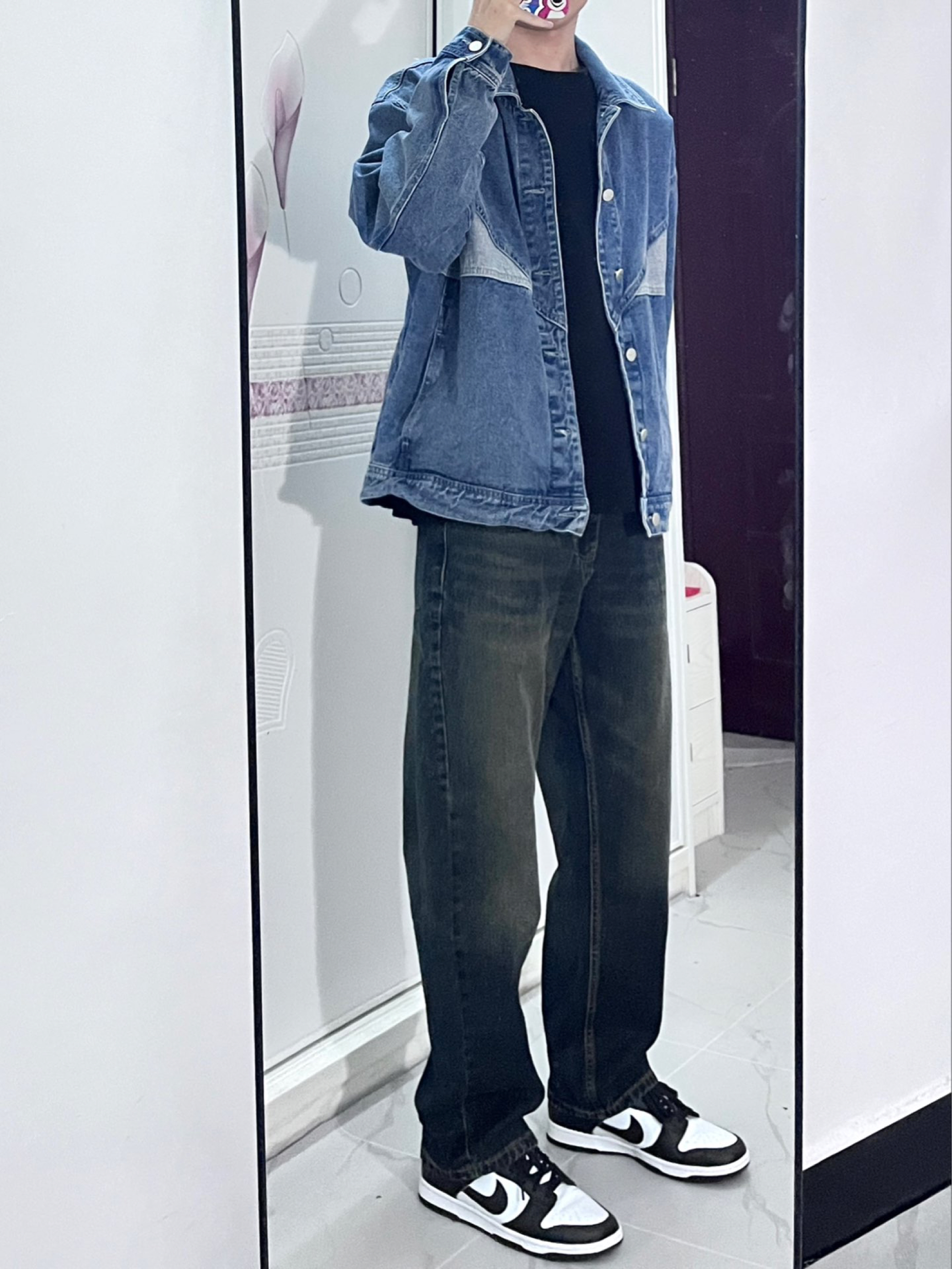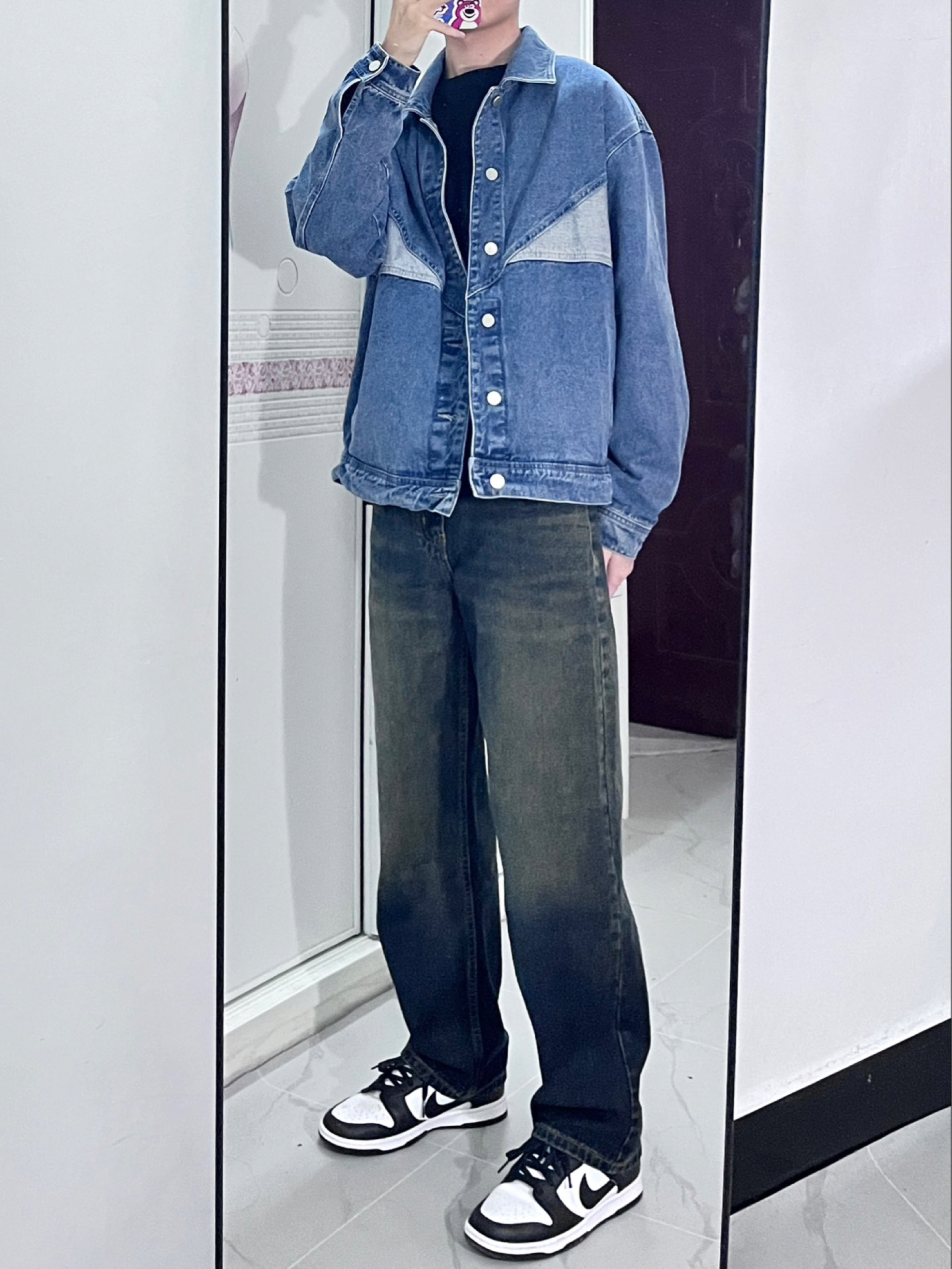 今天穿的这一件拼接款的牛仔外套 整体很有设计感,不会显得普通单调,但是也不会很花里胡哨,搭配黑色牛仔裤,简单好看又有质感 双11买这一件再合适不过了✅
