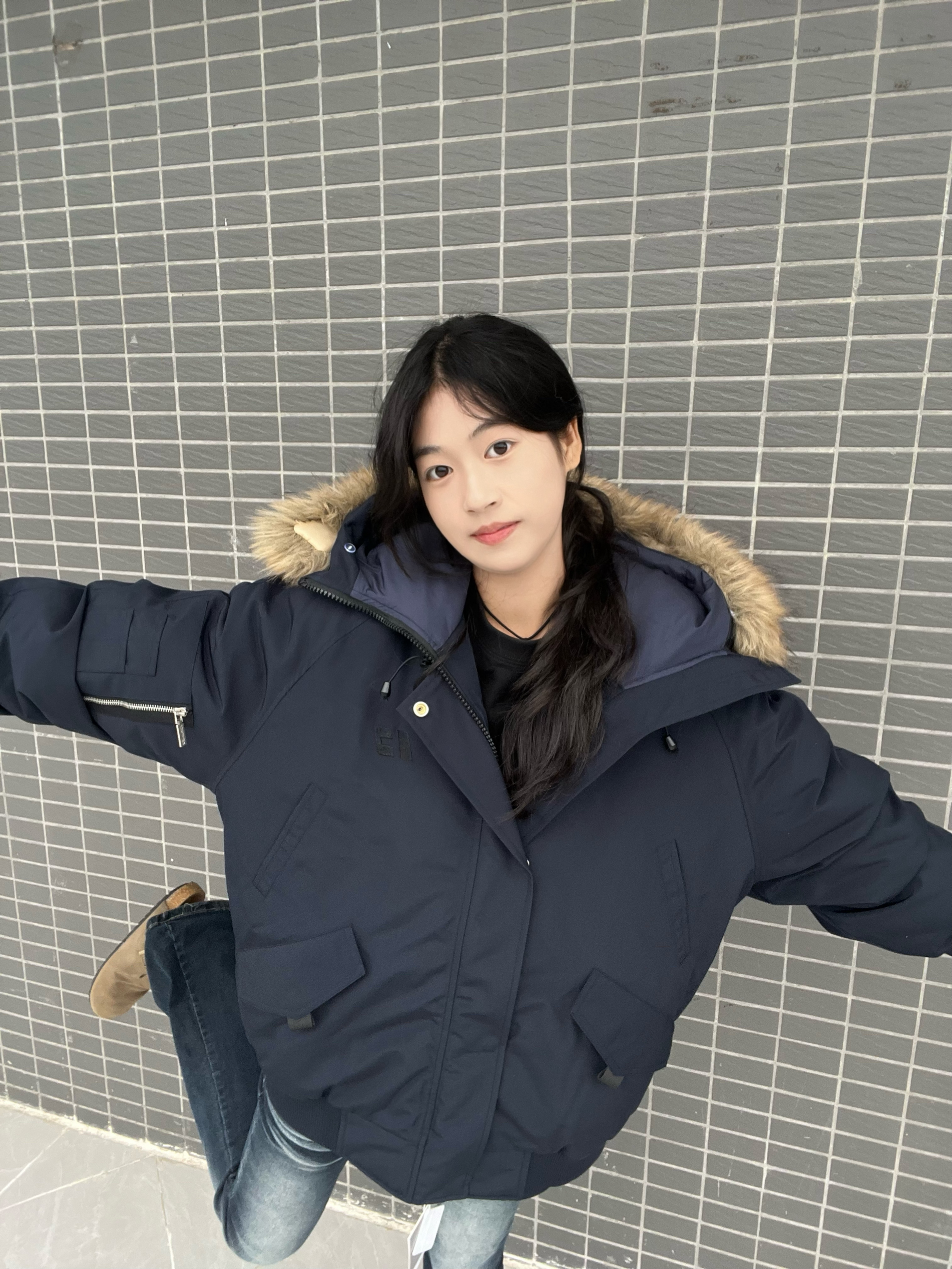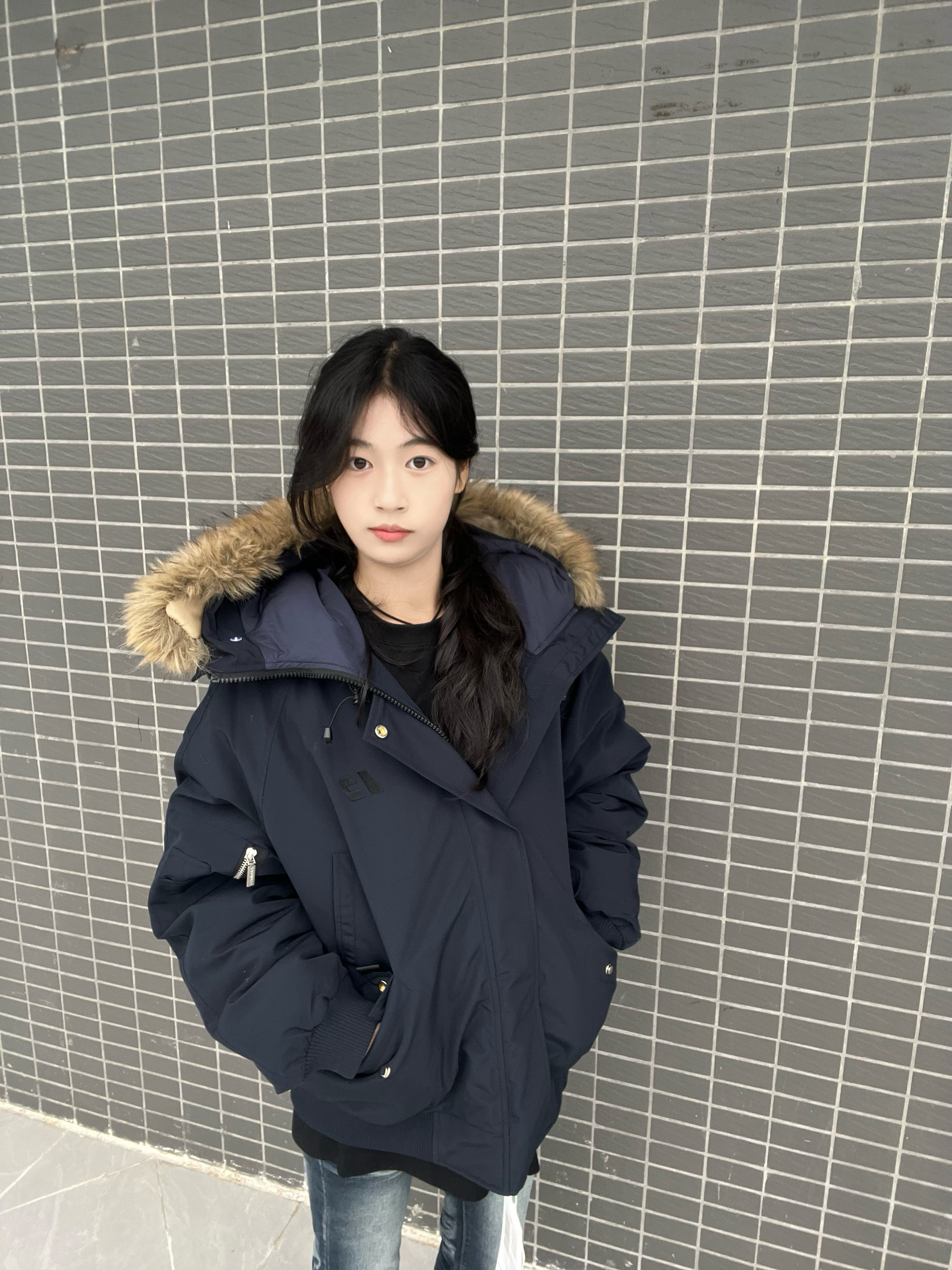 好喜欢我的新衣服 拿到手里质感真的觉得很OK呀 颜色是藏蓝色 感觉很显白 整体穿起来 版型什么的都是很OK的 冬天有它就足够了身高|体重: