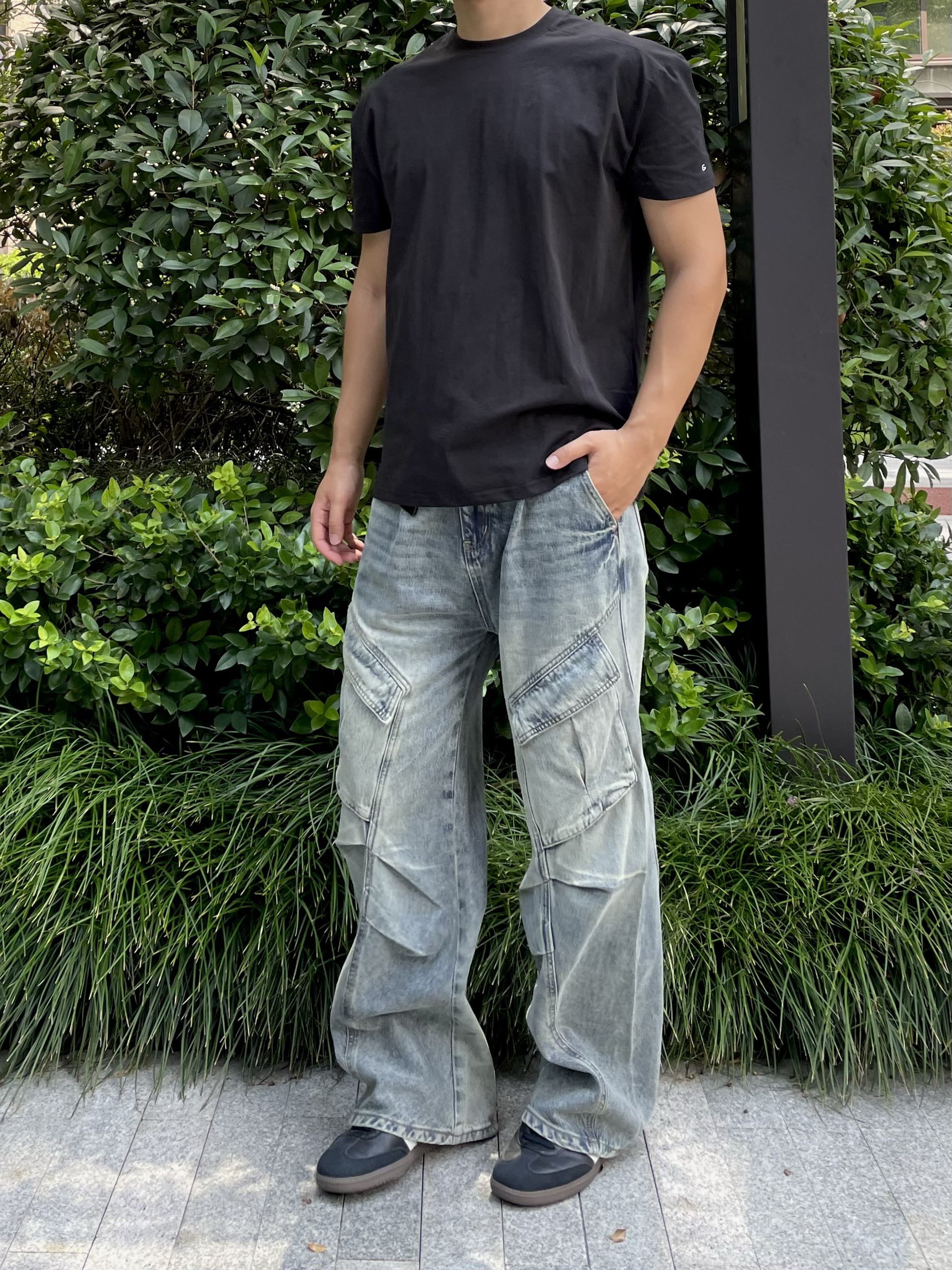 这条裤子拿到手是真的惊喜——不是那种硬邦邦的牛仔布,摸起来是带点软乎的水洗棉感,贴腿不硌得慌,垂感还特好,裤腿晃起来是那种“轻悠悠”的随性劲儿。 颜色是做旧的浅蓝,不是那种廉价的漂白色,带点自然的磨白纹路,配宽松款型刚好把“慵懒”和“干净”捏得很准。搭个简单的开衫站在学校走廊里,风一吹裤脚跟着晃,朋友说“看着就特放松,还挺有质感”——确实,不用刻意凹造型,软乎乎的料子+随性的版型,就是那种“日常...