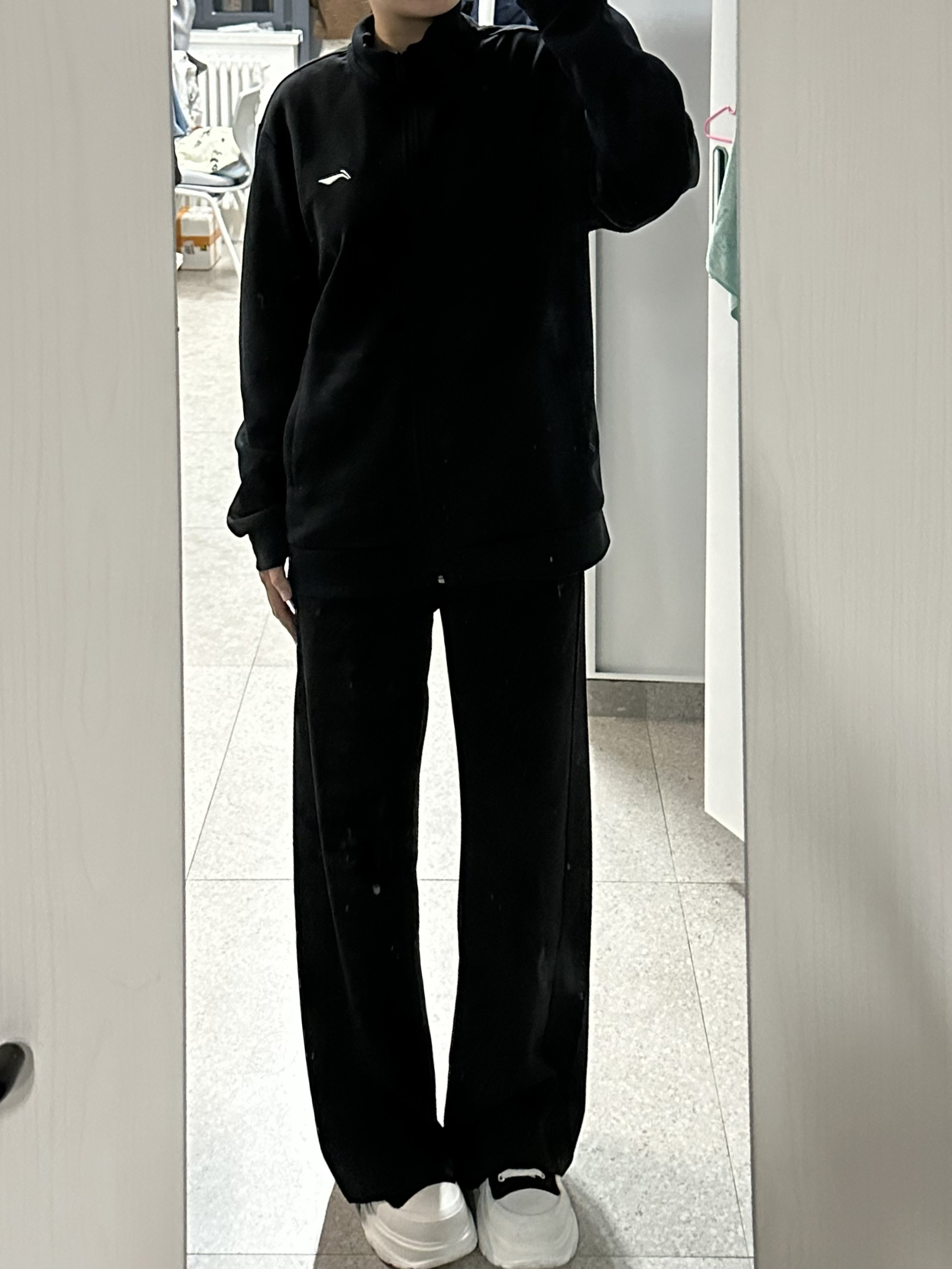 特别板正的一件李宁外套,男女同款,上身超帅,显得人很精干,而且黑色显瘦,显得人薄薄一片!面料如图四,不是那种滑滑的面料,个人更喜欢这种面料!平价好穿,都去冲!(请忽略脏脏的镜子🪞)