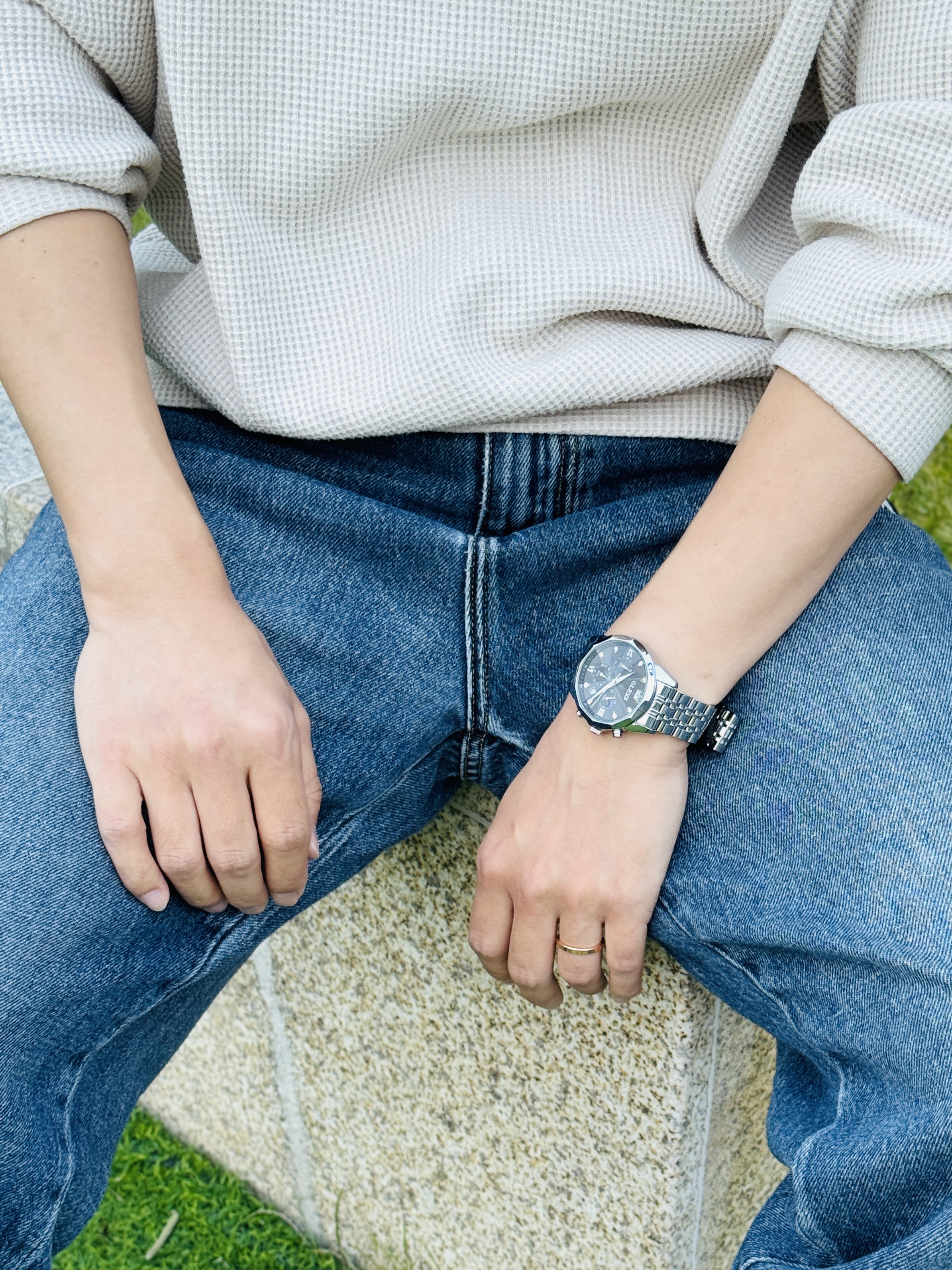 #双11必买潮表 #吹爆高颜值手表 #学生党手表推荐 #我们都爱戴手表 #人生的第一块手表 季节转换后,穿搭逐渐增厚 夹克和牛仔裤已经成为了我的日常 那么手表也要回归到钢链上了 今天上手这款#欧利时 OLEVS 比较符合最近的戴表习惯 简洁的外观设计,全钢链搭配黑盘 穿搭气质立刻转向沉着稳重 功能方面,具备日历显示、日常防水、夜光显示等 实用功能,日常出行穿戴方便 小伙伴们不妨可以试试。
