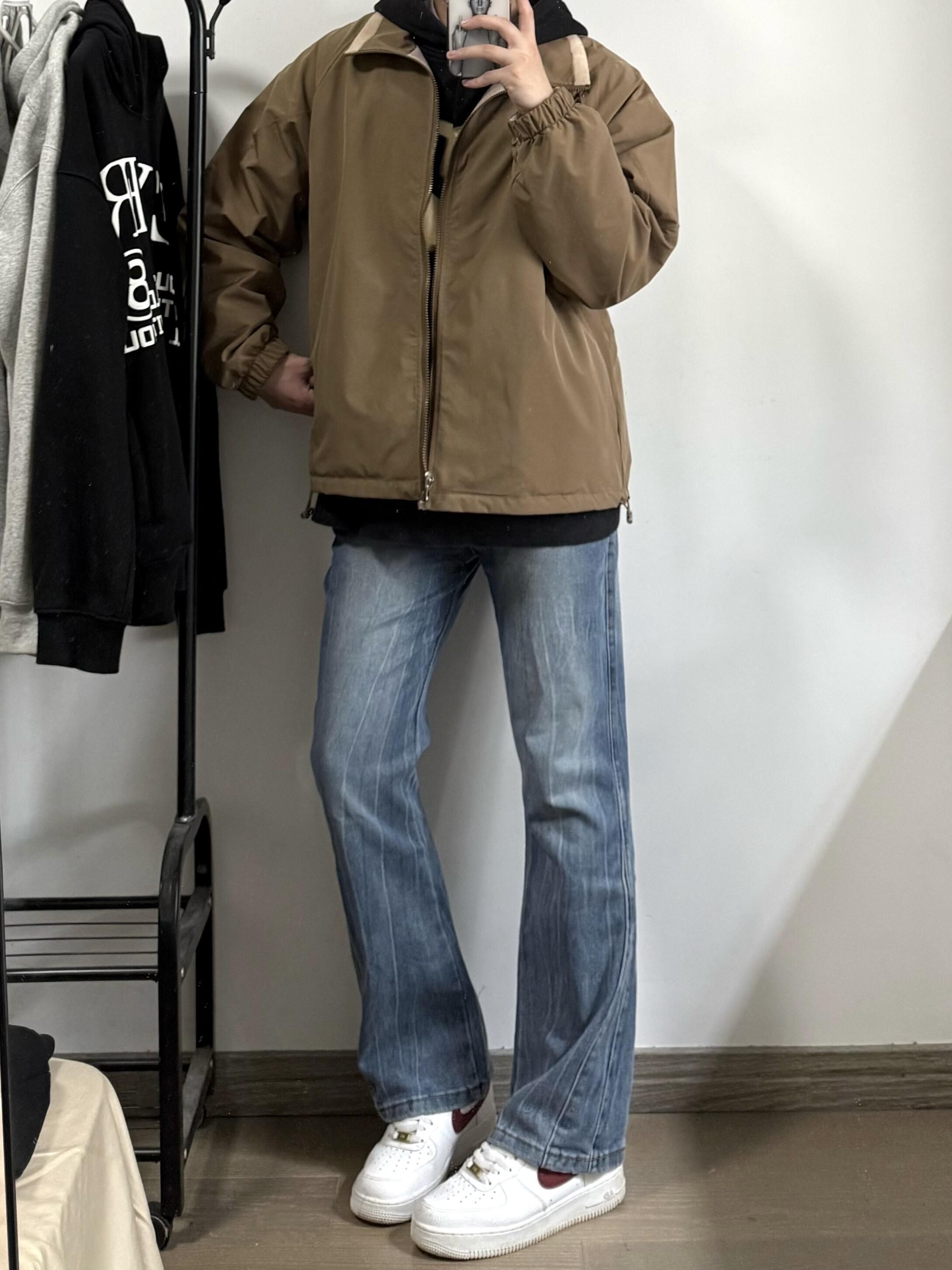 178男生穿搭|棕色夹克➕蓝色牛仔裤