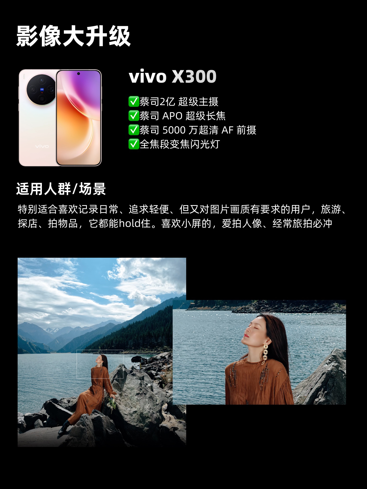 本篇笔记关联了vivo X300 5G 手机 6.31英寸小直屏 丝绒玻璃工艺 立边金属中框 超清远焦人像拍摄 演唱会直拍 Q10 Plus护眼屏 超级主摄 超级长焦 大电池 全网通 无线充电 纯粹黑、vivo X300 5G 手机 6.31英寸小直屏 丝绒玻璃工艺 立边金属中框 超清远焦人像拍摄 演唱会直拍 Q10 Plus护眼屏 超级主摄 超级长焦 大电池 全网通 无线充电 幸运彩、vivo X300 Pro 5G 手机 舒适美学 超薄直屏 丝绒玻璃工艺 大电池 超级长焦 蓝图影像 全网通 快充 无线充电 纯粹黑等商品,为用户提供真实的使用体验和购买参考。