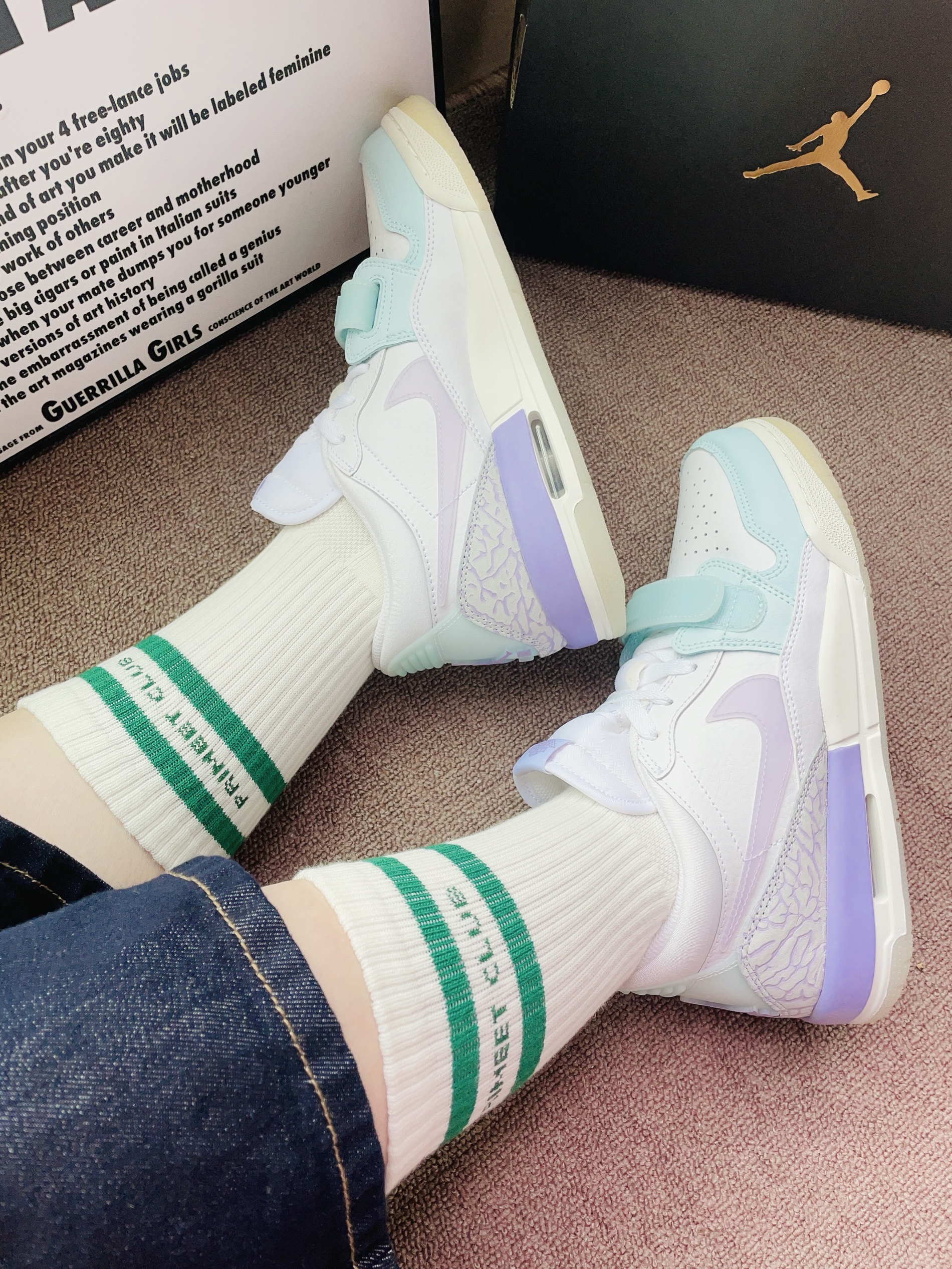 本篇笔记关联了Air Jordan Legacy 312 板鞋 运动休闲鞋 三合一魔术贴缓震复古回弹合成革 GS/白色/绣球花紫/冰川蓝等商品,为用户提供真实的使用体验和购买参考。