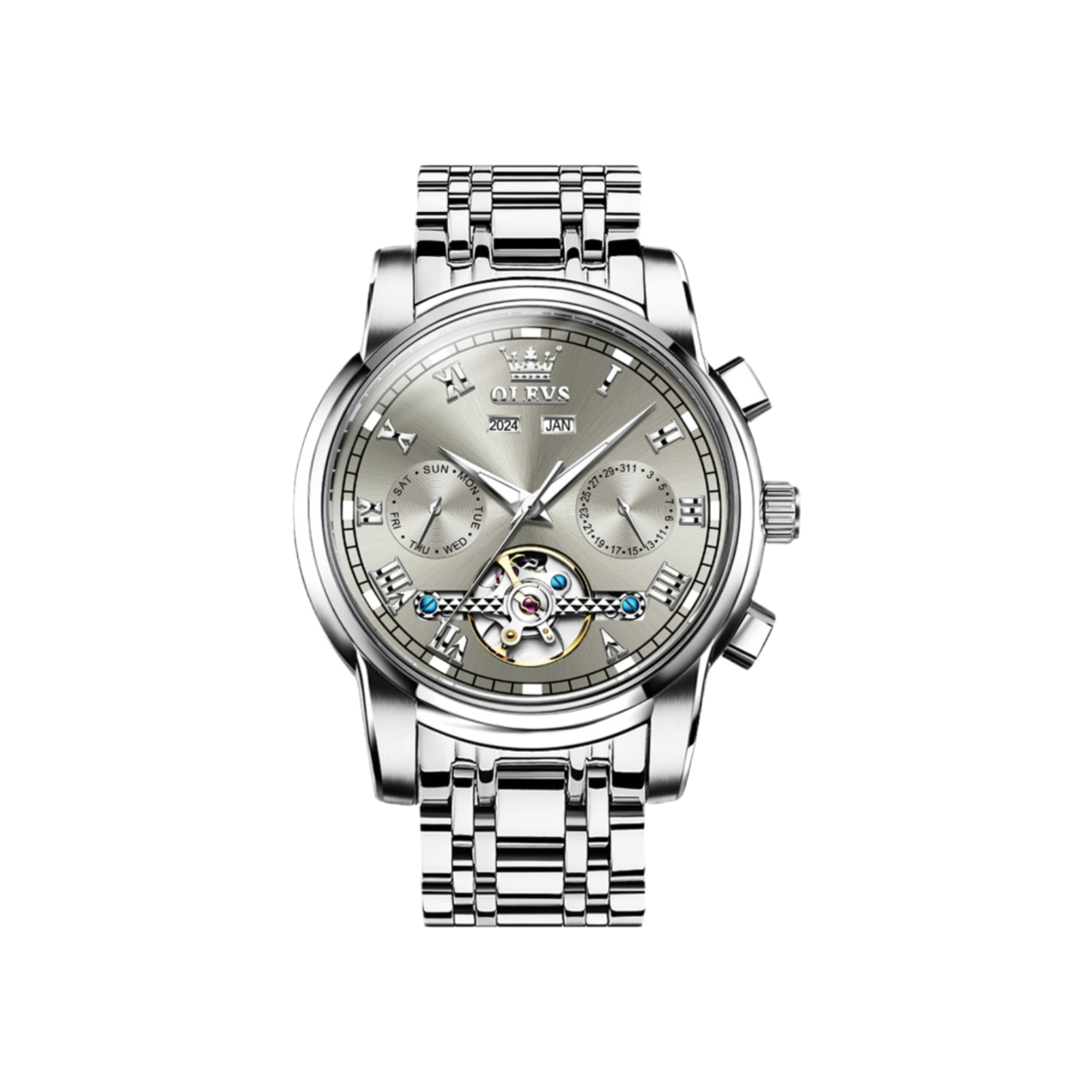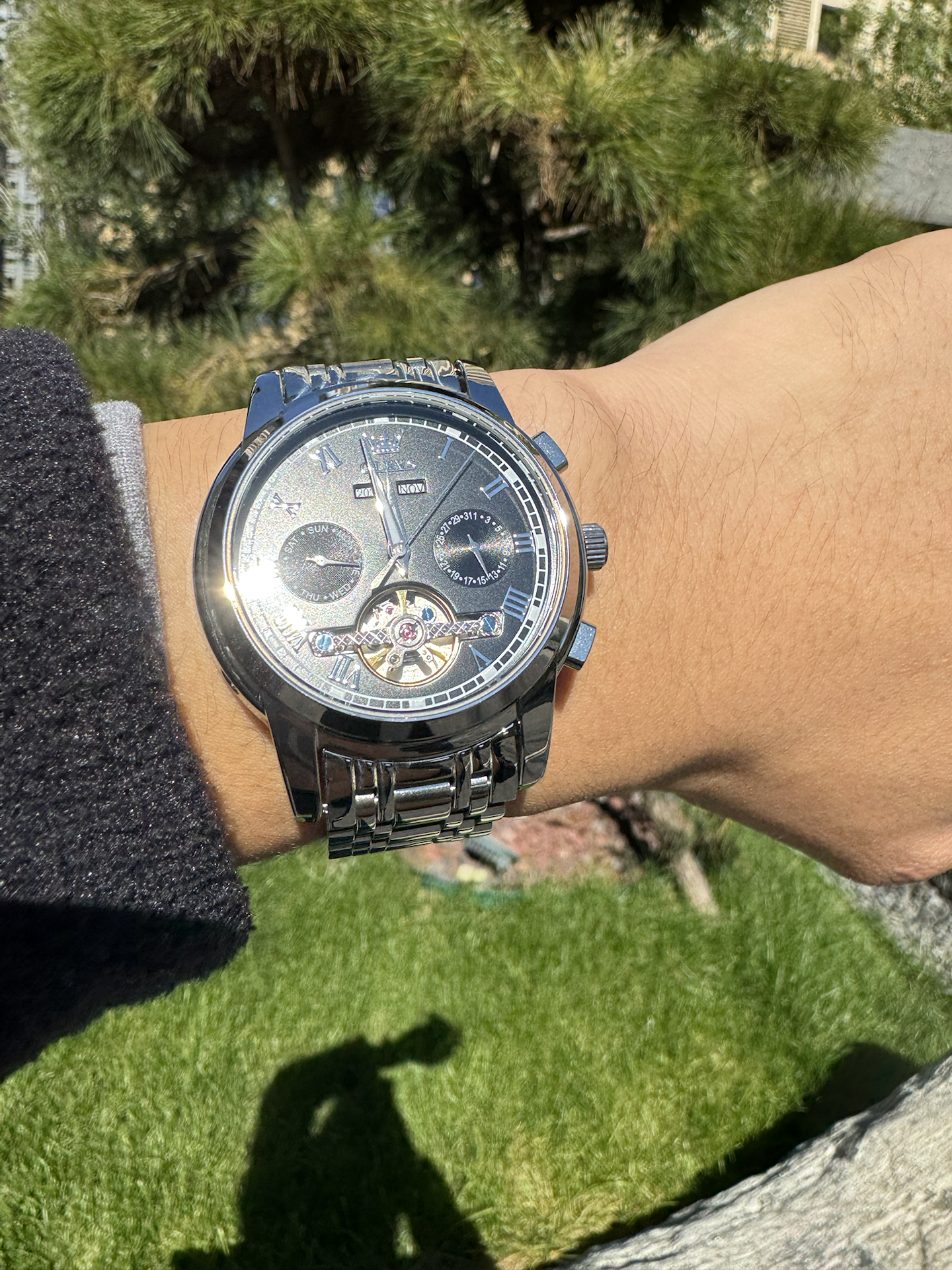 本篇笔记关联了OLEVS/欧利时 钢带潮流镂空时尚防水式夜光高档次大表盘多功能全自动款机械男表 【礼盒装】钢带本灰 等商品,为用户提供真实的使用体验和购买参考。