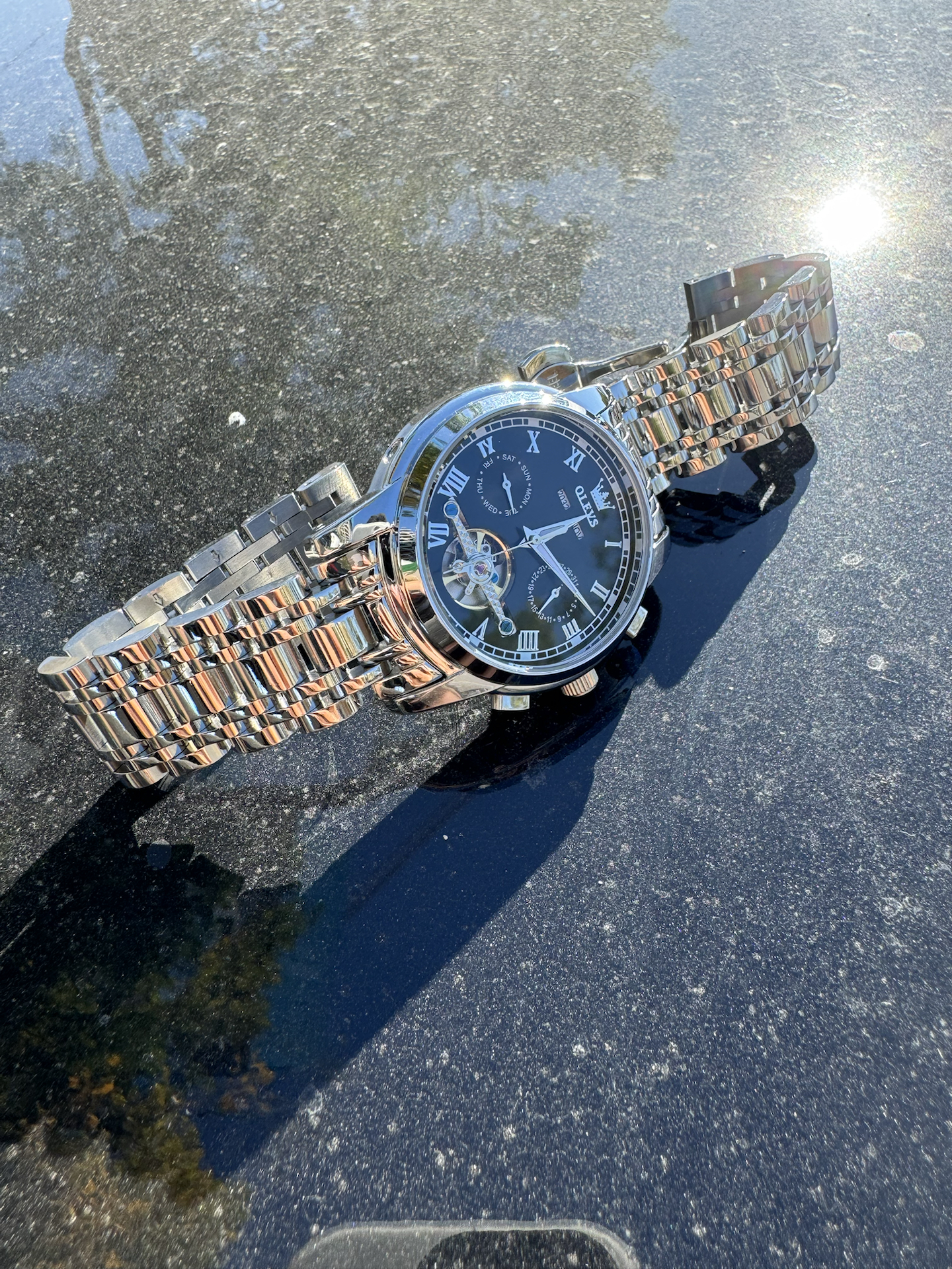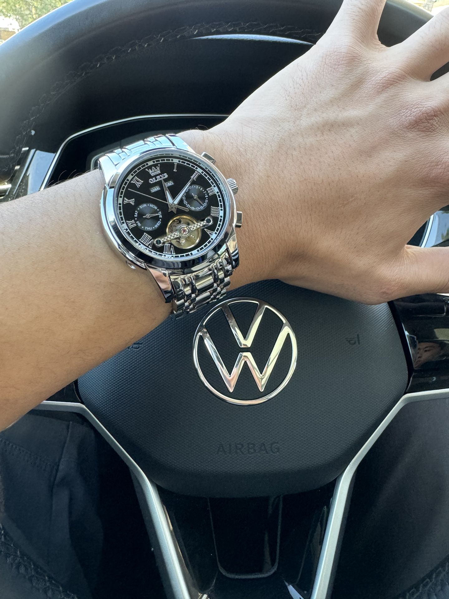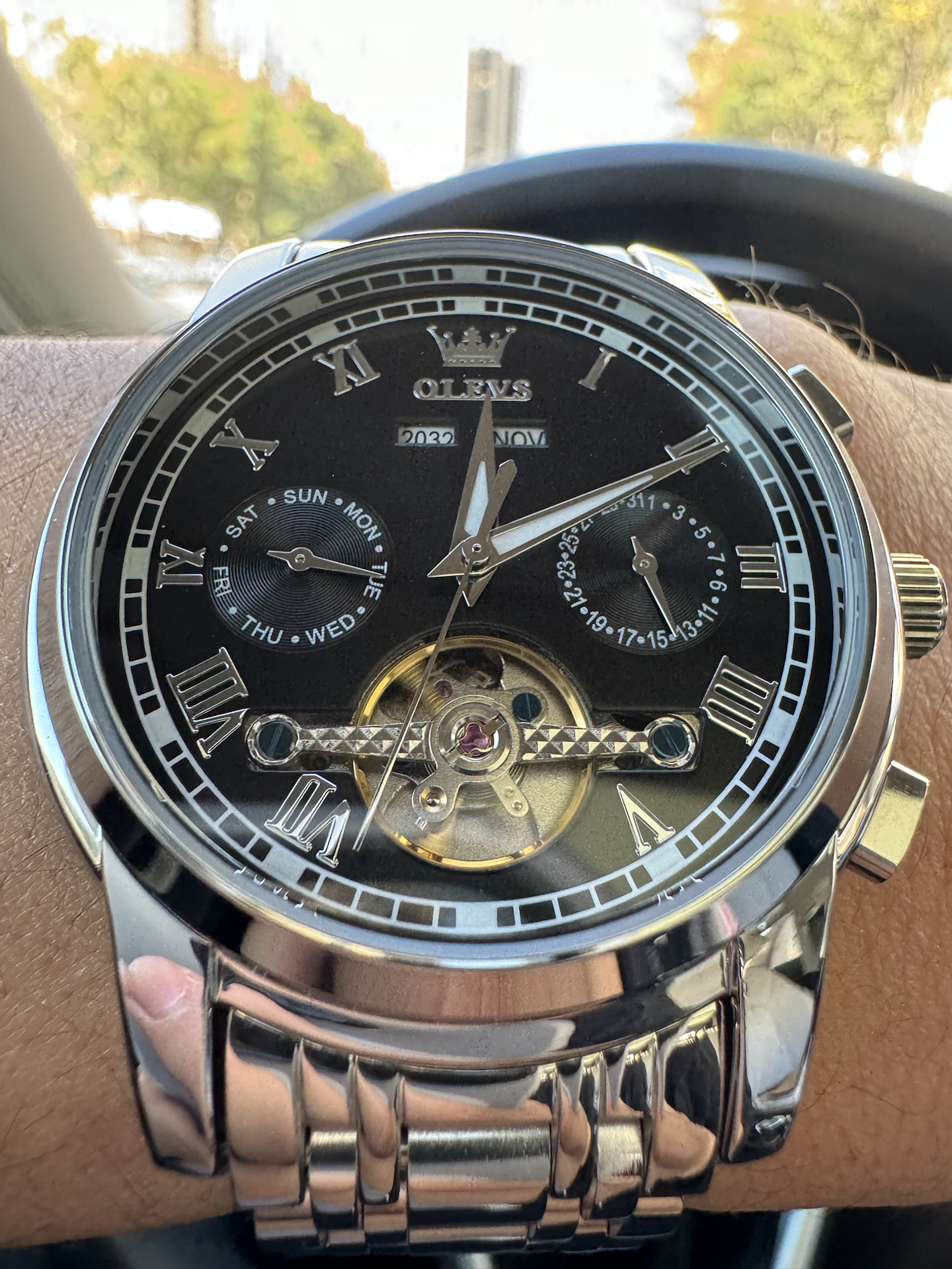 这款镂空背透设计的机械表我还是很喜欢的,内里零件做工看到的,很有工艺感 而且精钢表带配合圆式表盘,很显大气,并且分量感很足;功能也是齐全的,日期、周期、防水的功能是有的,并且我选择机械表的很大原因是方便,定时上弦; 不知道大家有没有发现,表盘有几颗宝石点缀,那种细节品质感瞬间提升了不少@欧利时OLEVS手表 #我们都爱戴手表 #合拍表心意 #送男生超有排面的礼物 #人生的第一块手表 #许愿还...