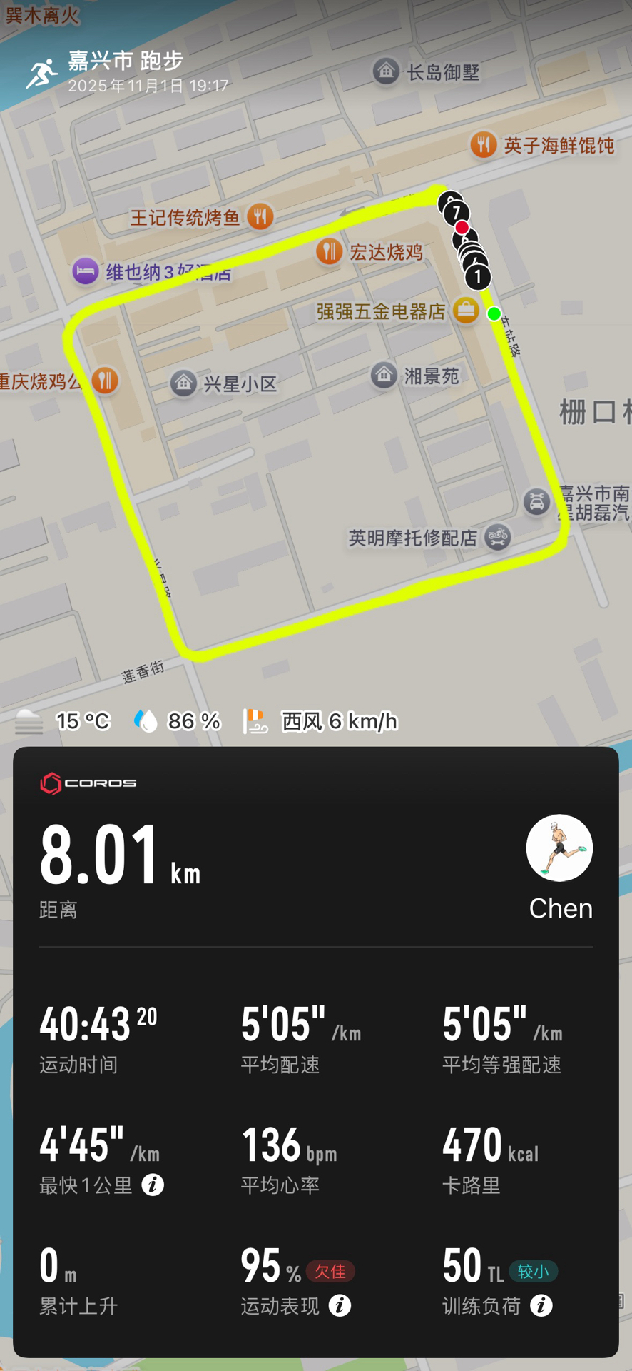 #今天也跑了 下午趁着天气好打个球,晚上原本想跑个小强度的,奈何打球接波局挺耗费体力,只能临时改成8公里慢摇了,也是11月的第一天,打卡一下