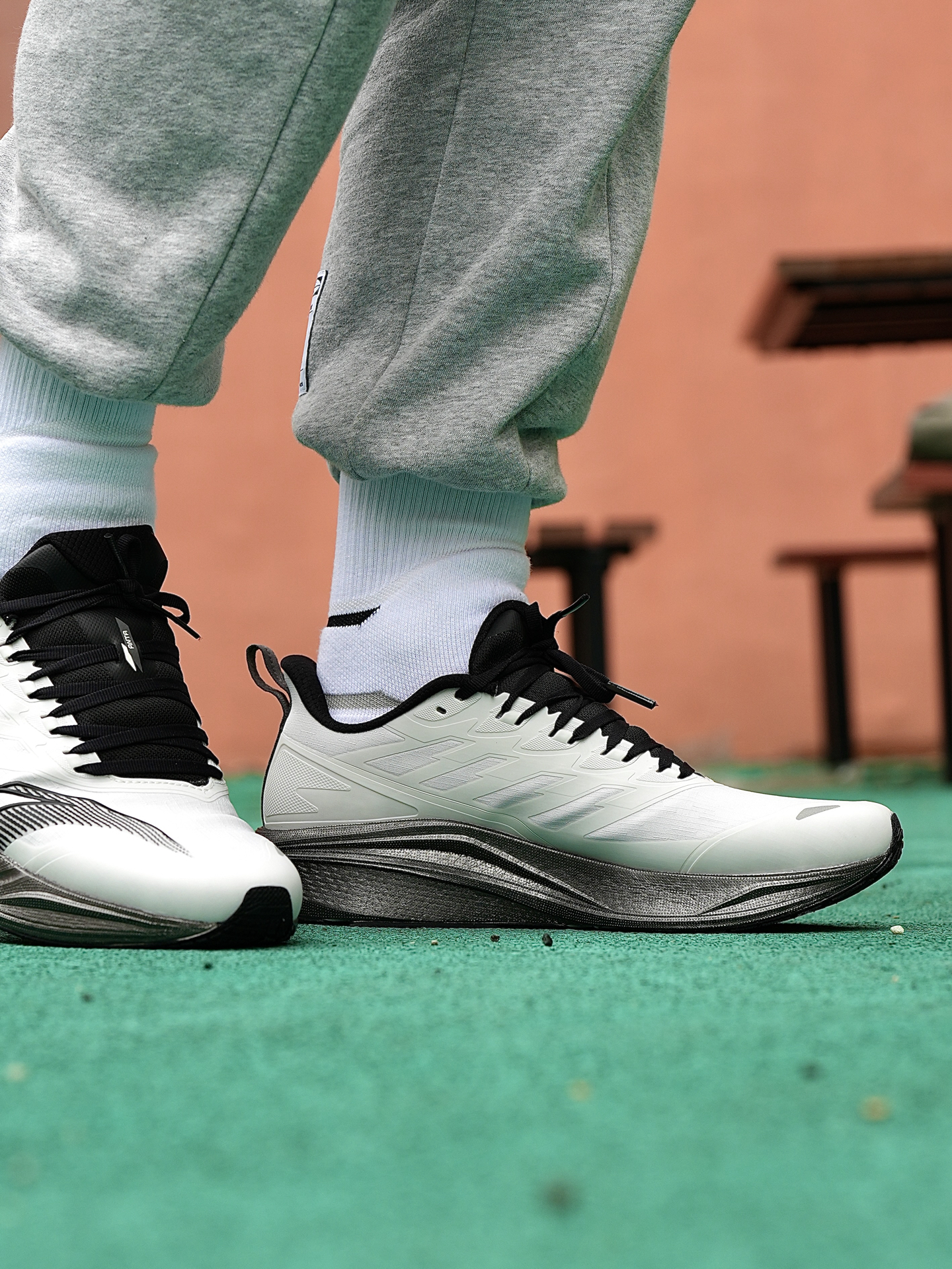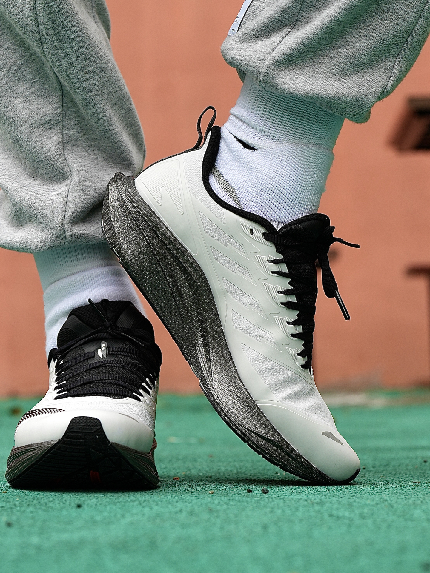 穿马赫5秋冬版跑了一段期间,说点实在的。 首先优点很突出:全掌氮科技中底脚感是韧弹挂的,跑1000米体测时蹬地特干脆,有种“脚不粘地”的推进力。 秋冬鞋面厚实保暖,风大的早上跑步脚不凉,而且鞋面还是防泼水材质,鞋楦够宽,我这种宽脚穿着不挤脚趾。中足的尼龙板很稳,过弯道时脚踝不晃,安全感比老款强。 缺点也明显:重量确实有点沉,43码快280克了,长时间跑会觉得脚累。外底纹路密,雨天踩水特别滑,...