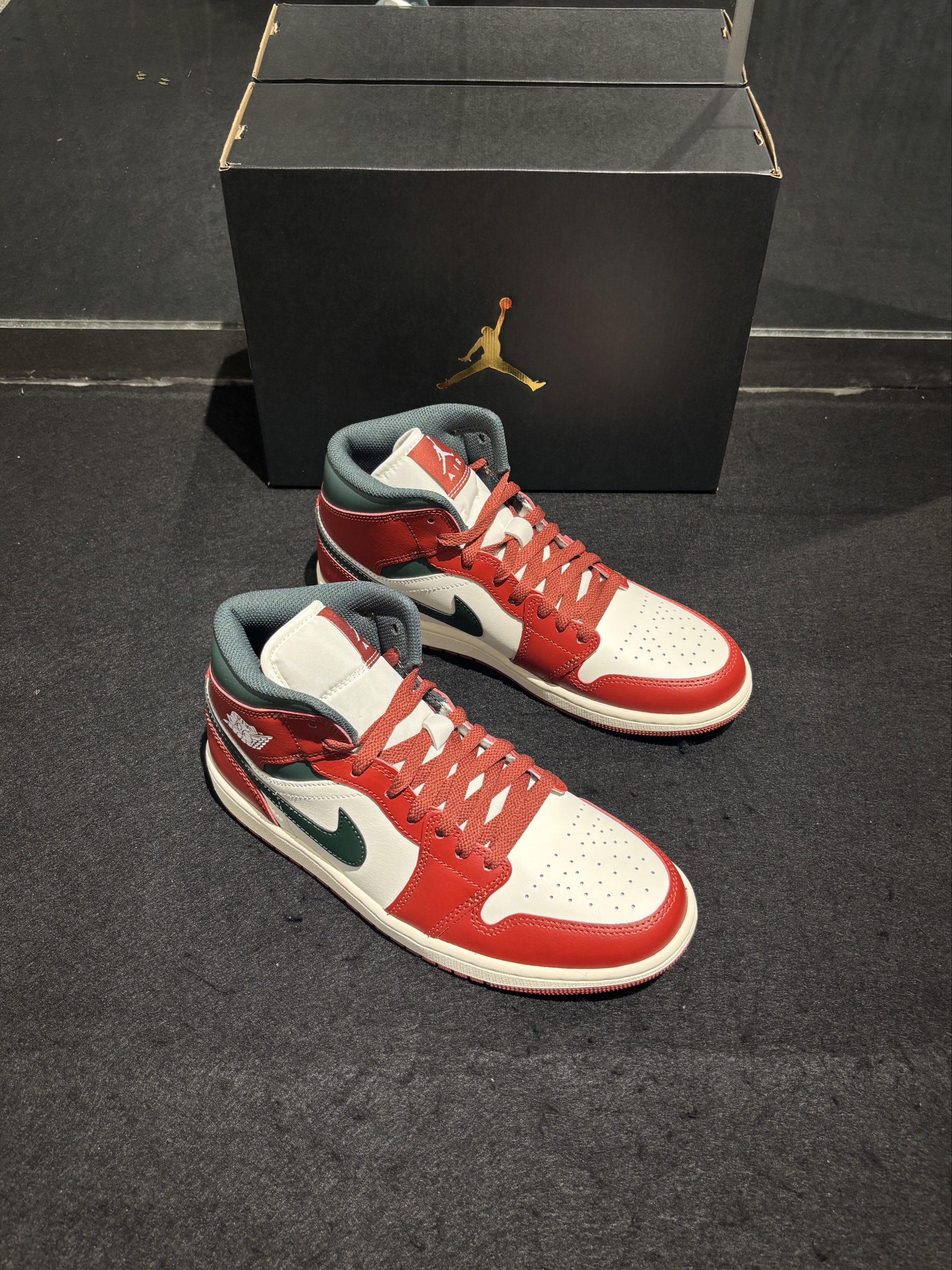 红白撞色的皮革鞋面干净利落,鞋领那抹浅灰衬得整体更有层次,经典的飞人Logo藏在细节里,低调又自带辨识度,上脚瞬间把穿搭的鲜活感拉满。 日常搭它完全是“风格百搭牌”: • 配浅蓝做旧牛仔直筒裤+白色宽松T恤,裤脚卷到鞋帮上方露出鞋型,红白蓝的组合清爽又有复古味,逛潮店或约饭都很出片; • 换黑色工装束脚裤+酒红连帽卫衣,用同色系元素呼应鞋身,再搭件卡其色工装外套,秋冬街头的酷感直接拿捏; ...