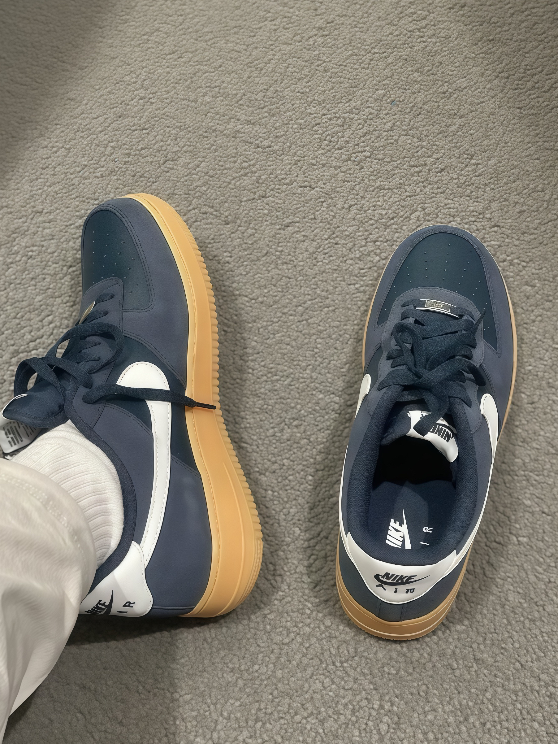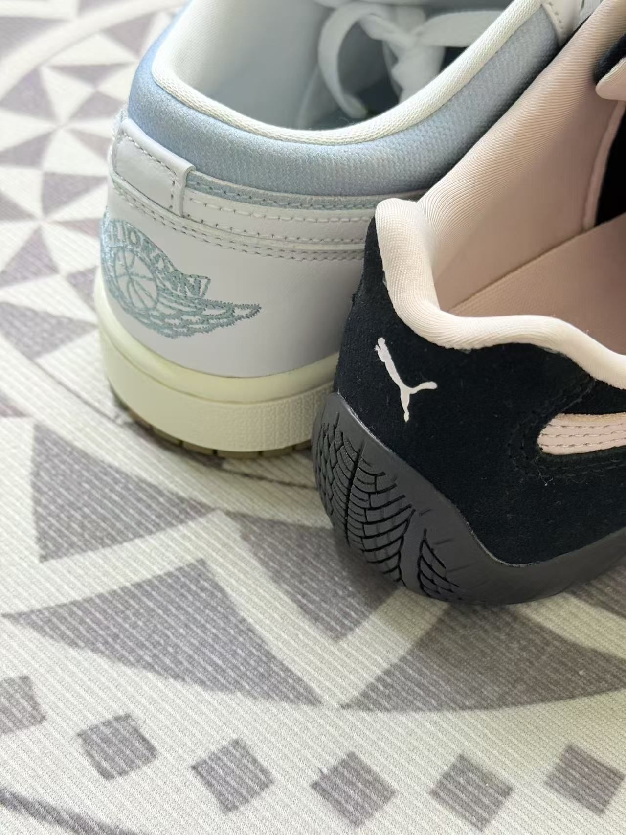 这双鞋是去年生日收到的礼物,送我的闺蜜是个AJ收藏迷,特意找了联名限量款。鞋盒里还塞了张手写卡:“希望你像AJ1一样,经典耐造,永远有回头率。” 刚开始走路像踩在瑜伽砖上,但穿了两天后逐渐适应。
