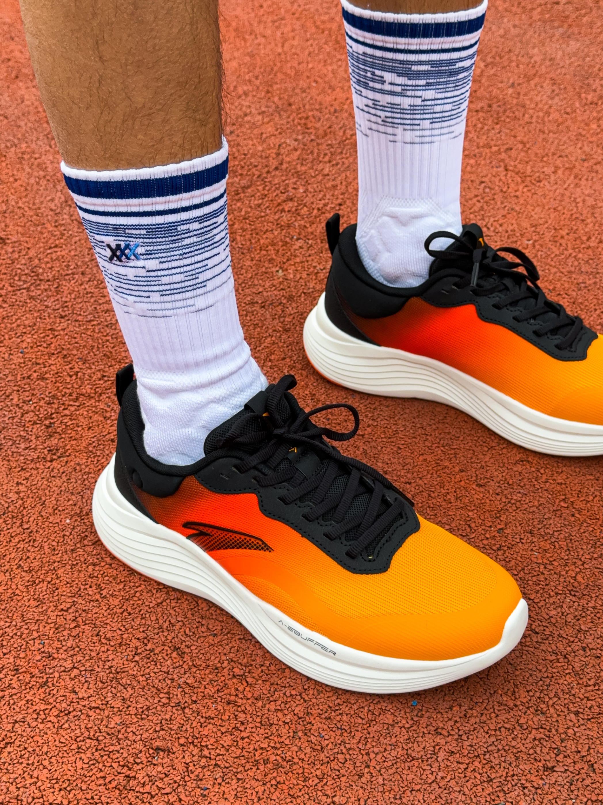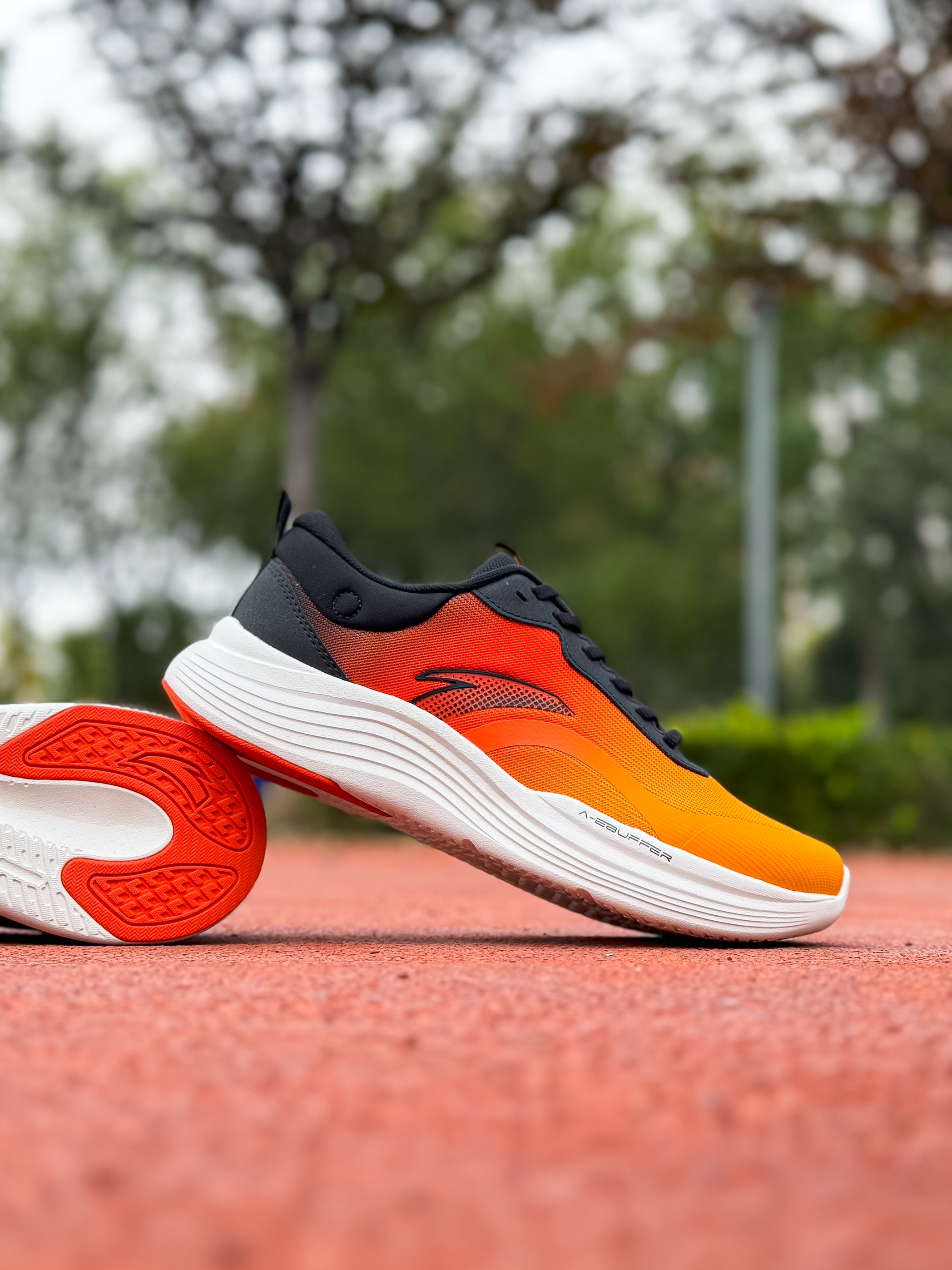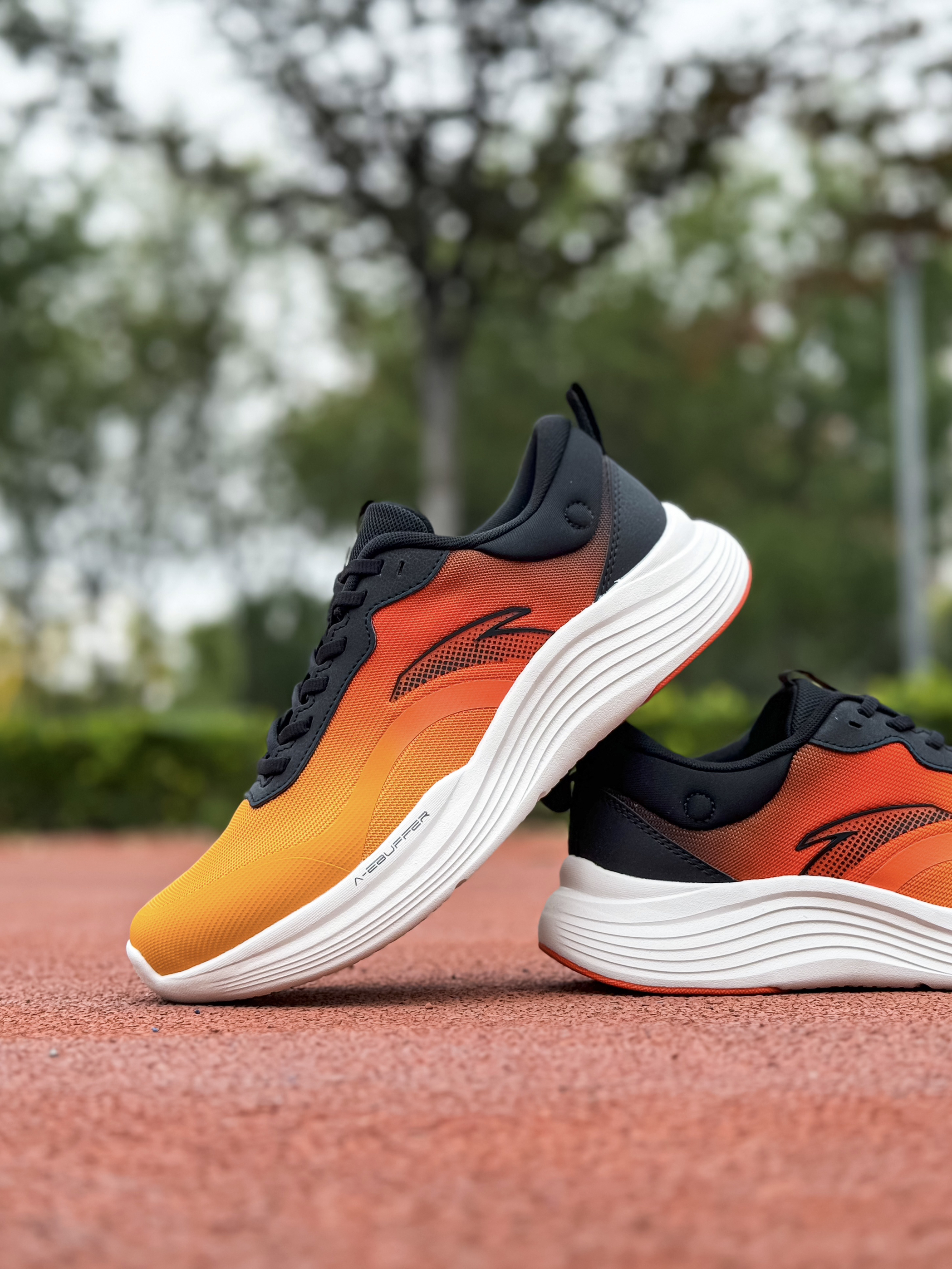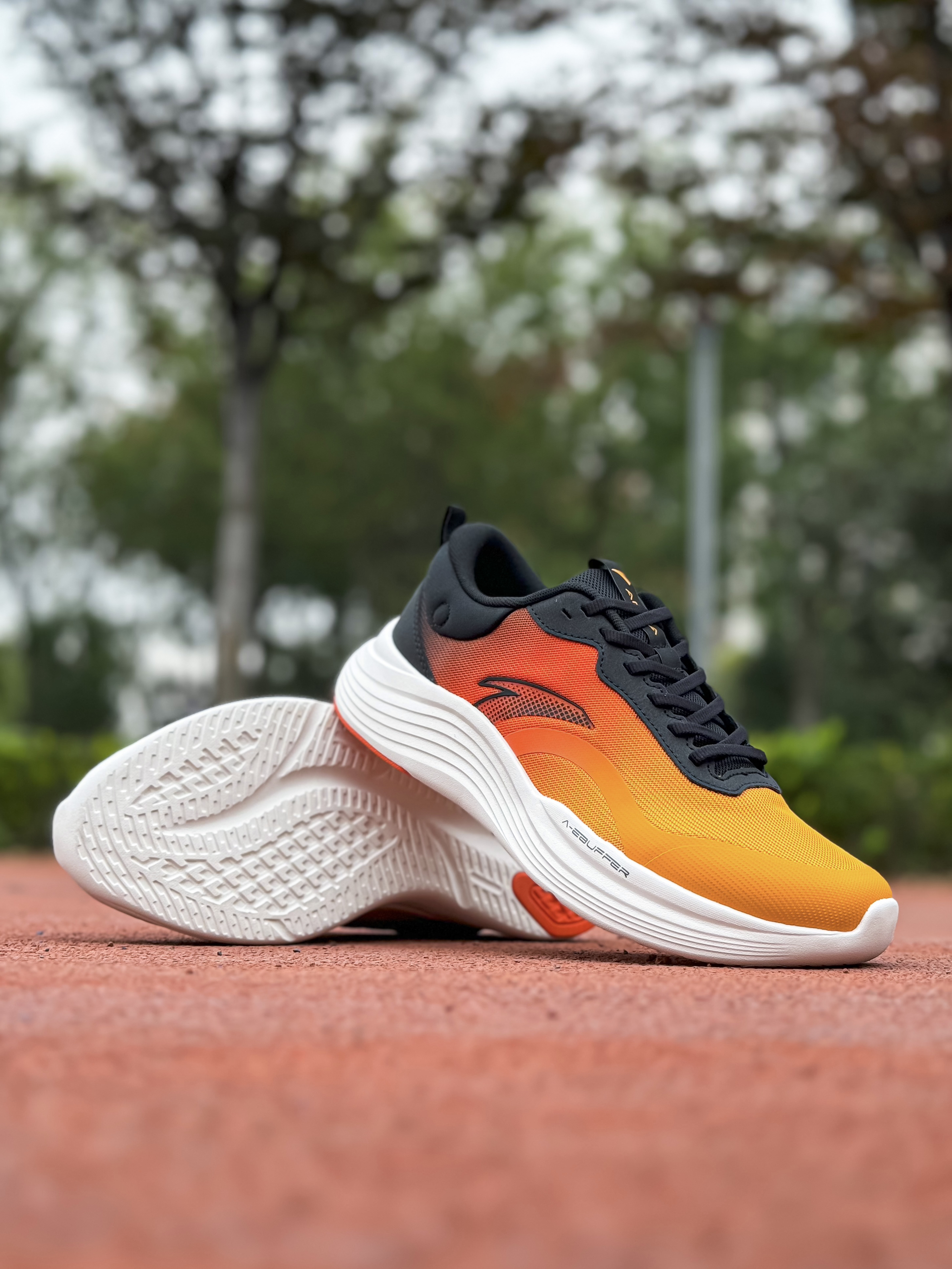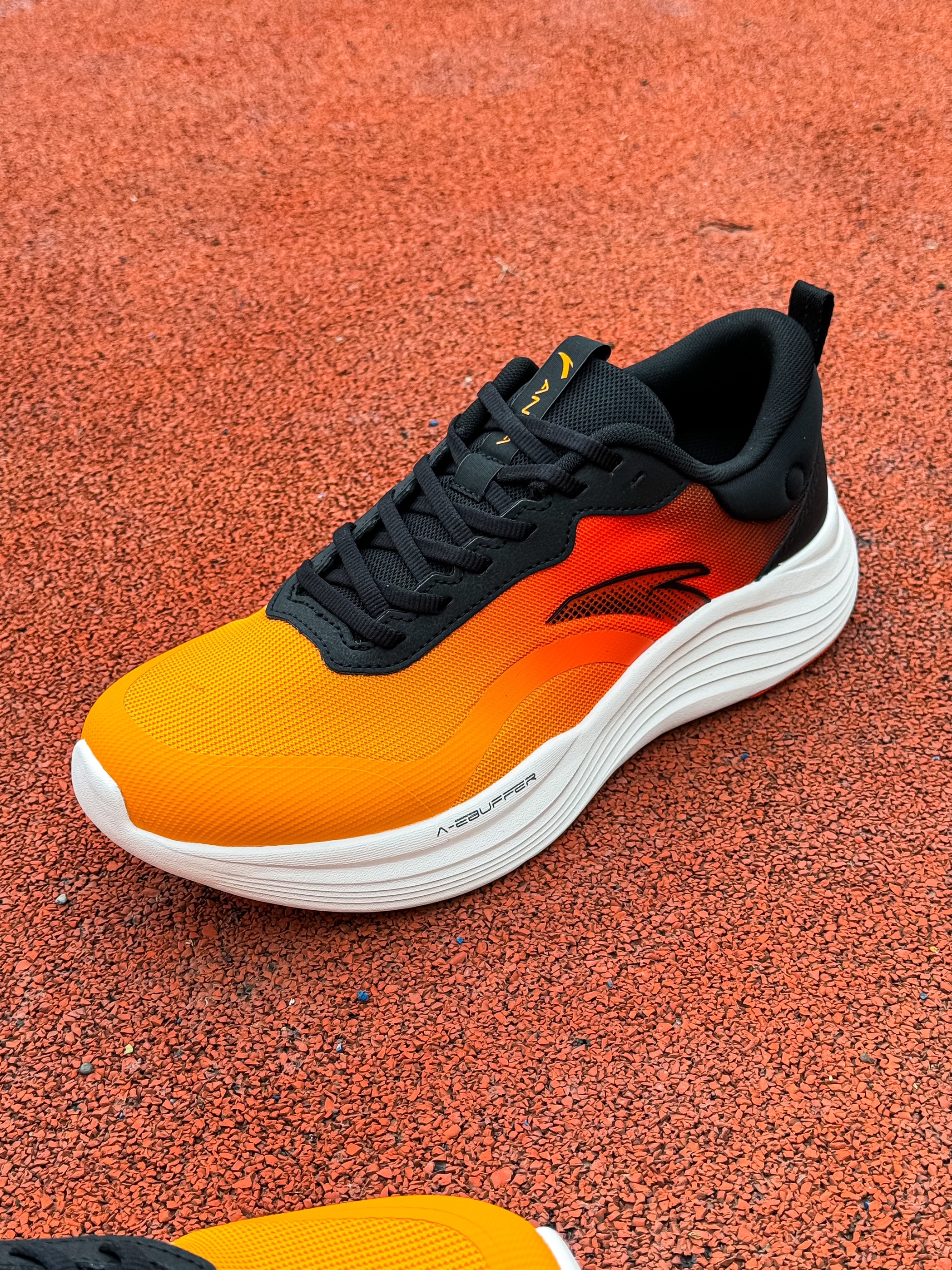 上脚的这双踏子的“五岳·望月”也是一个新配色,橙黑白拼色视觉冲击力挺强的,有种日落感觉,还是挺简约好看的…不过后跟圆圈就是一个装饰作用哦… 这双鞋我也是首次上脚体验,1开的价位算比较平价,脚感也算舒服那种,挺适合日常通勤来穿,不过兼顾慢跑也是没什么问题的! 纱线鞋面强度没大问题,鞋楦设计比较合适!我觉得包裹性挺到位的,神行科技中底比较软弹 厚度也比较可观、在训练通勤都能轻松驾驭!通勤久战也不会累脚...