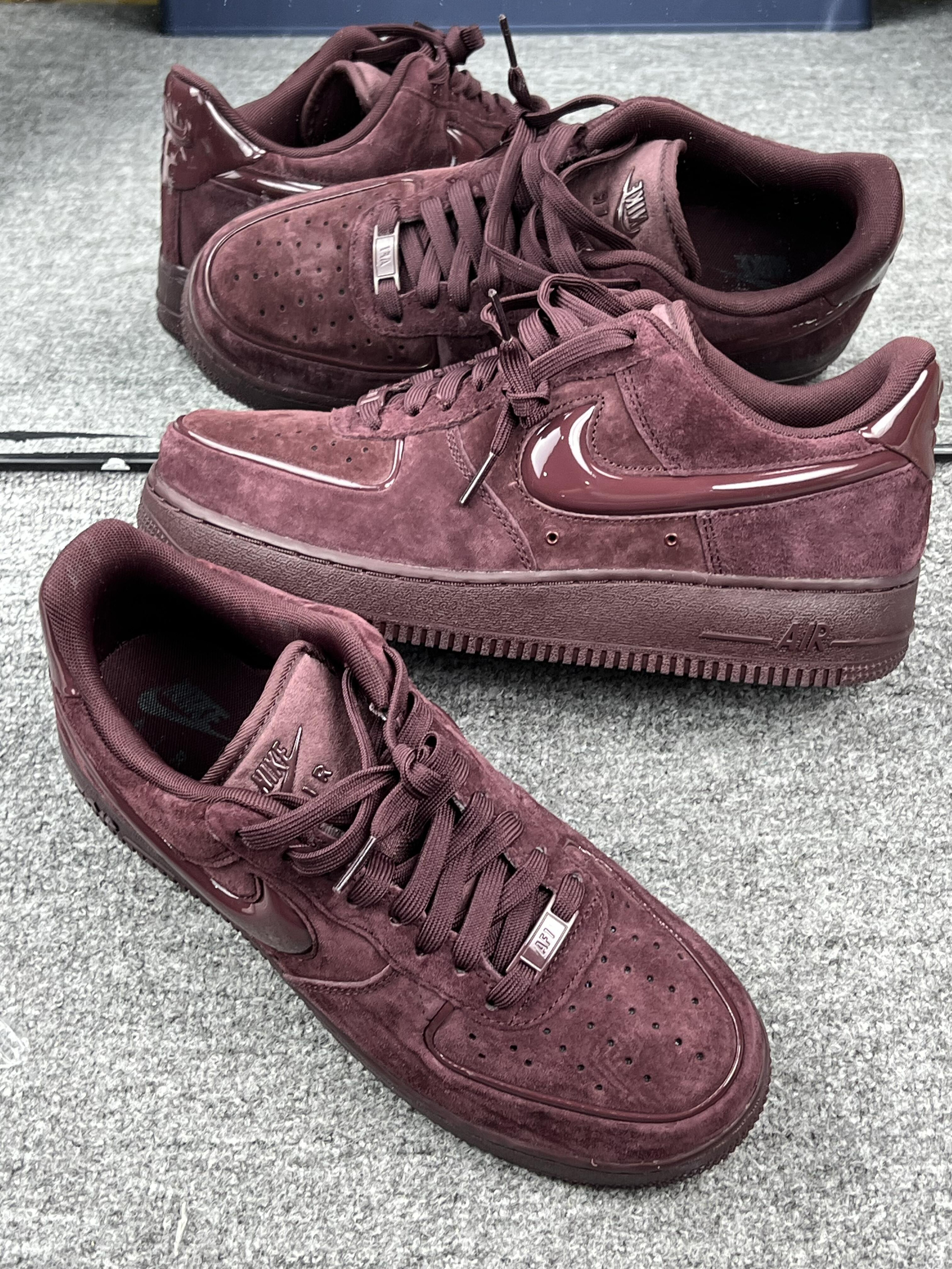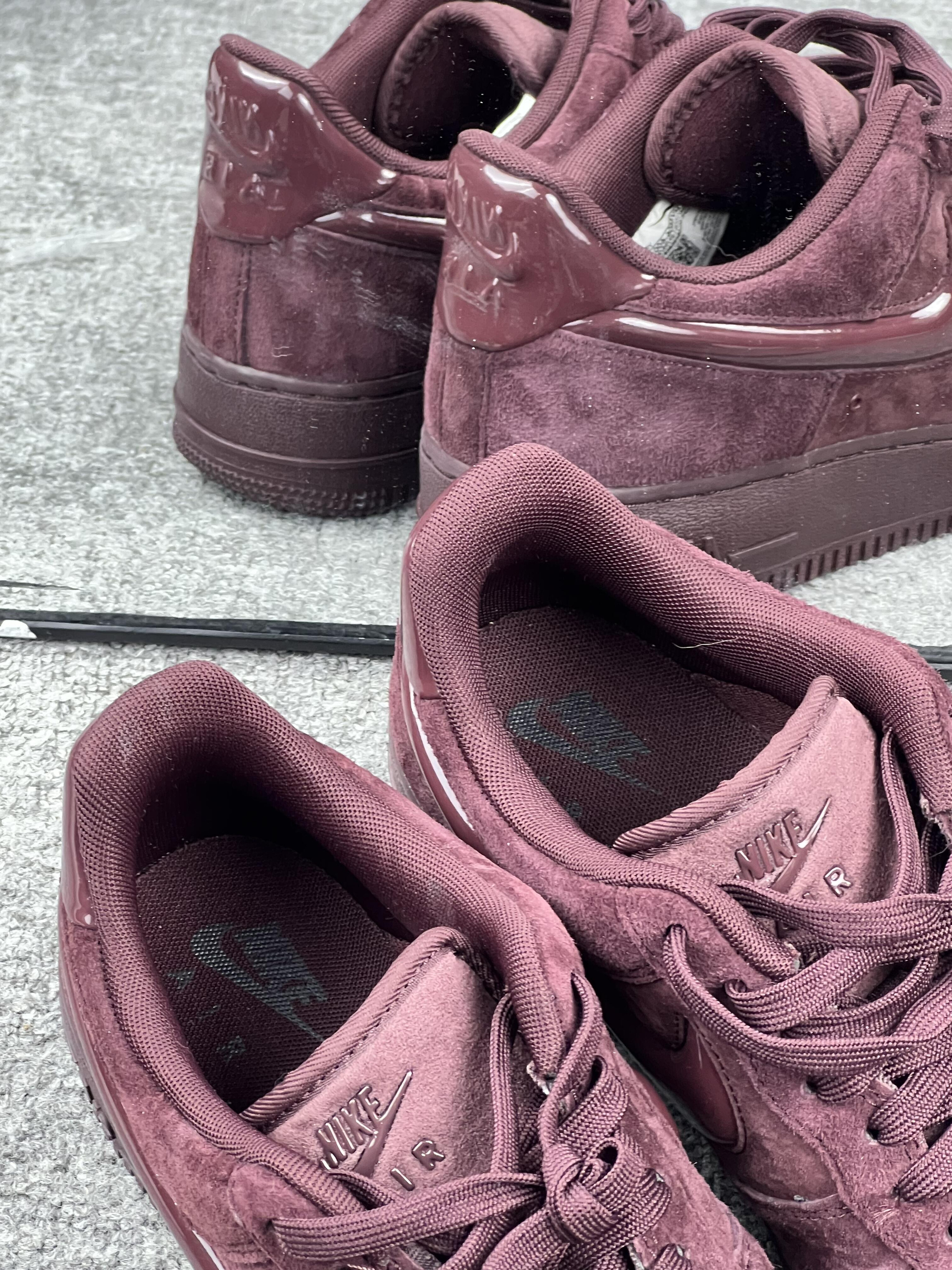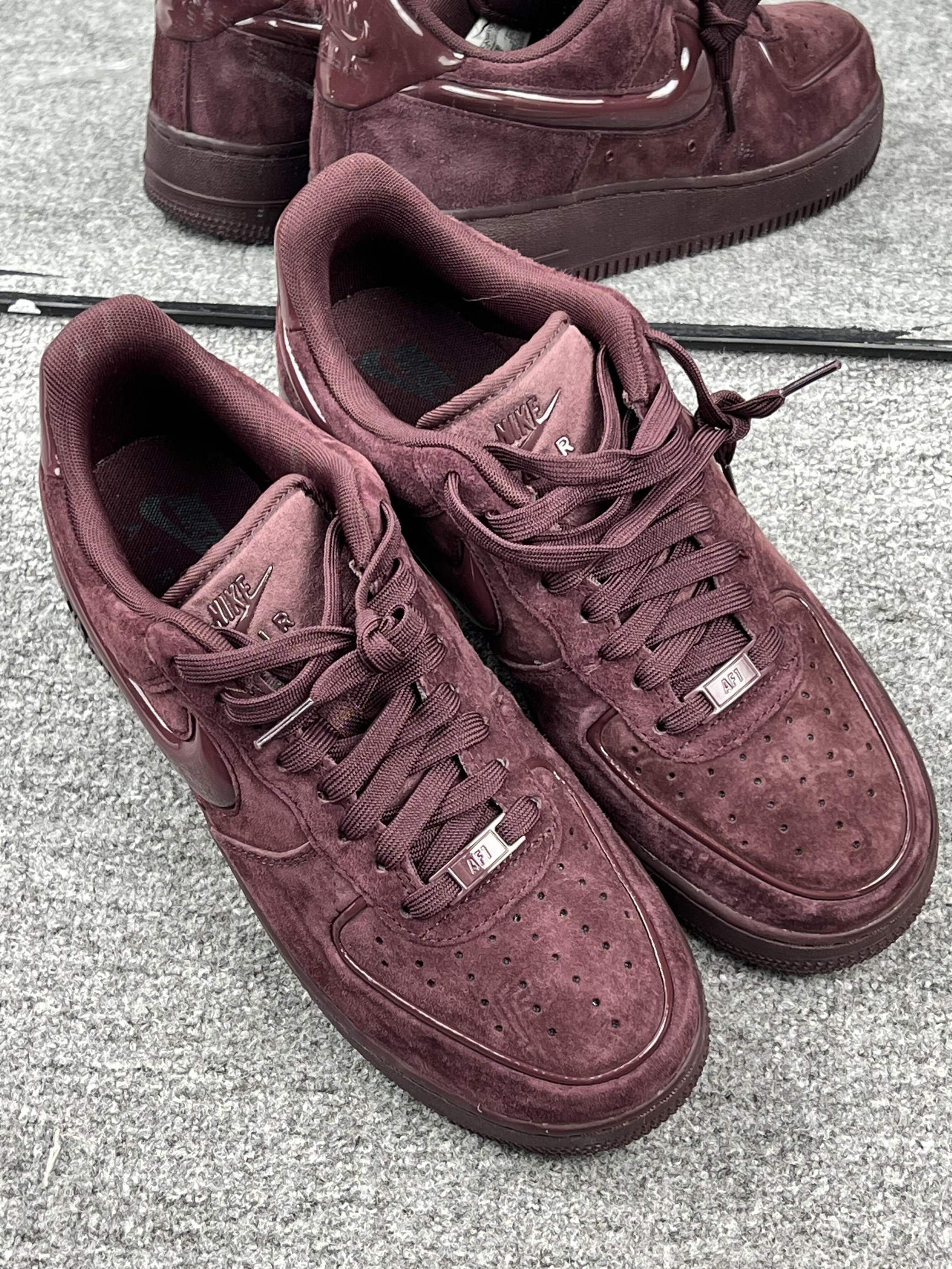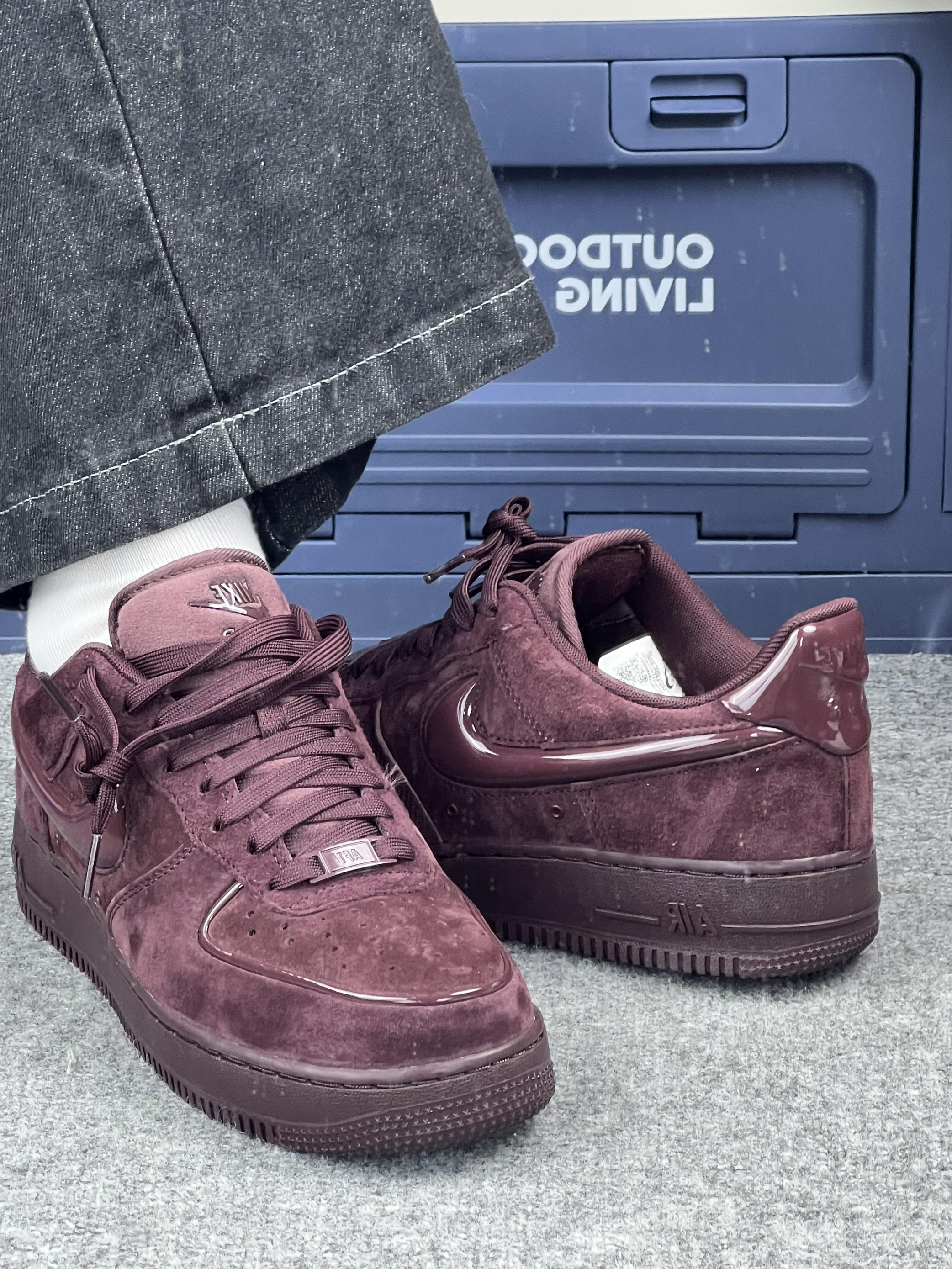 全鞋身的丝绒面料裹着深酒红调,鞋侧的亮面Logo像浸了层红酒光泽,连鞋带都和鞋身融成一体的浓郁,上脚既裹着绒面的软乎,又能让穿搭自带“低调贵气感”。 「它能接住你的需求」 • 丝绒面料自带高级哑光质感,灯光下会泛出细腻光泽;全酒红配色是“氛围利器”,随便搭都能出复古腔调;AF1经典鞋型适配度高,通勤、约会都能hold住。 • 是“质感单品”也是“日常搭子”,既能当穿搭的记忆点,又能踩去各种场...