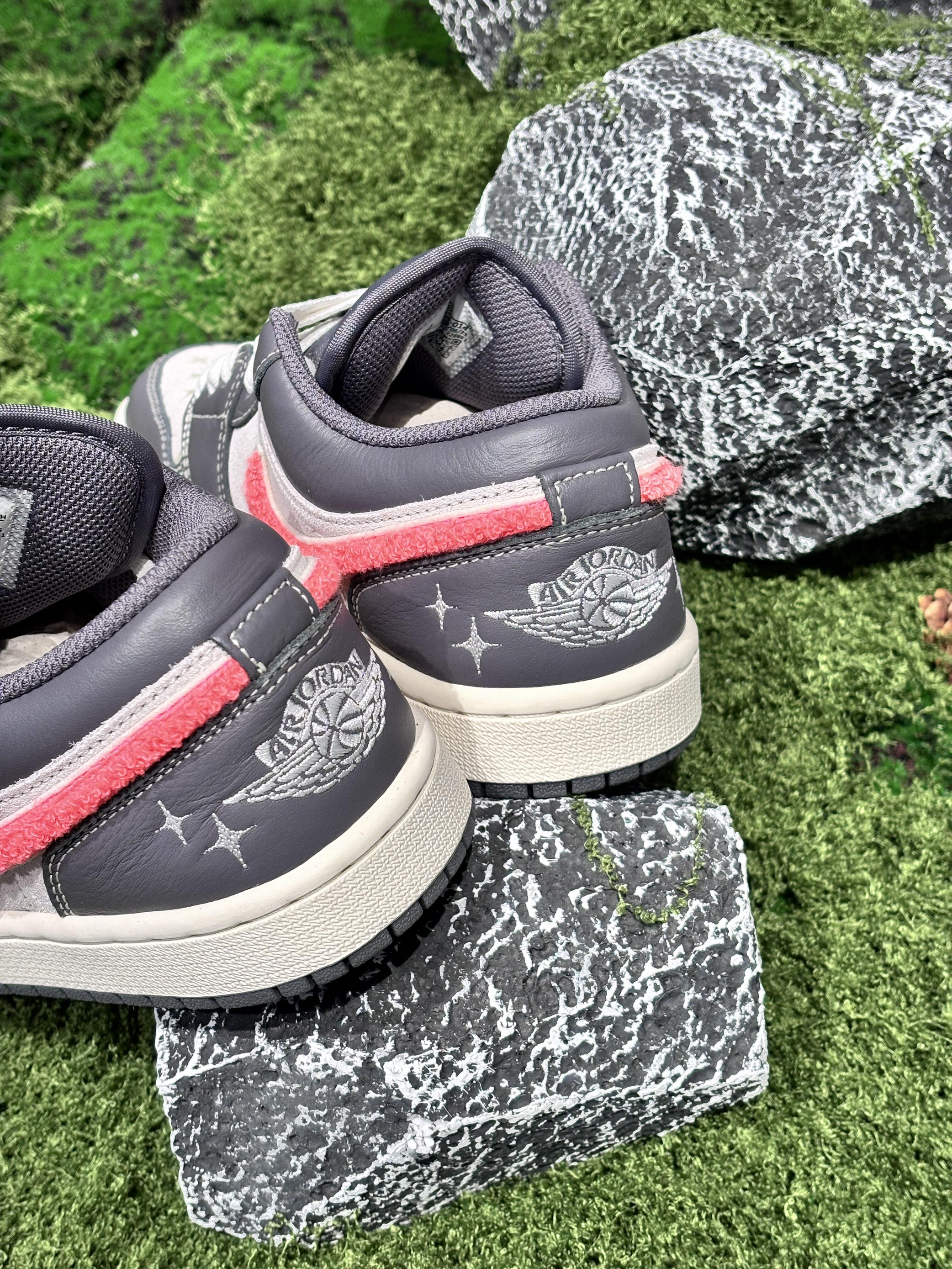 深浅灰基底裹着星星暗纹,莓粉色的毛绒Logo像藏了颗野莓糖,鞋舌的亮粉飞人标又添了点跳脱的锐感,上脚既裹着复古的扎实,又能让穿搭自带“轻甜野趣”。 「它能接住你的需求」 • 灰+莓粉的撞色是“甜酷平衡牌”,搭深色系沉稳、搭浅色系亮眼;毛绒+皮革的拼接兼顾质感与软乎触感,摸起来自带治愈感;低帮鞋型不挑腿型,露脚踝穿更显轻盈利落。 • 是“日常野趣单品”也是“轻潮风格锚点”,既能当穿搭的细节亮点...
