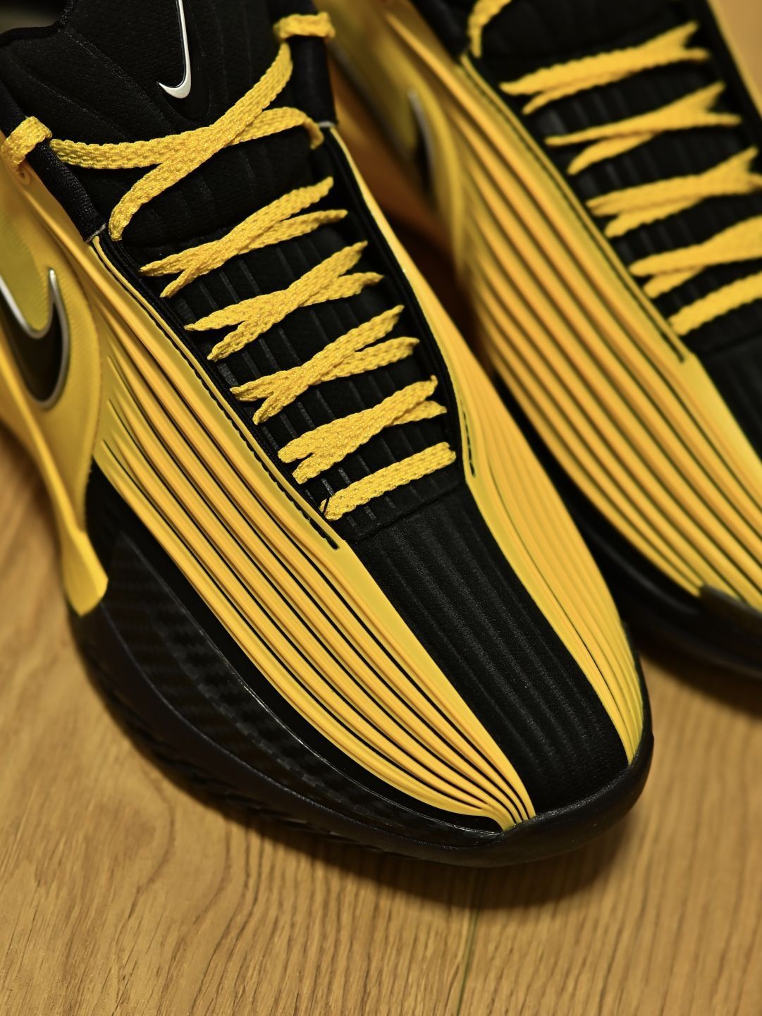 谁能拒绝李小龙的黄黑配色吧? 更何况它是Nike GT Cut 3 Turbo。 我最近穿了它感觉缓震性能很出色,应对球场频繁跳跃也能平稳落地,包裹感更是扎实,很贴合脚面,支撑性拉满。 不过我觉得宽脚得谨慎选择!包裹感还是略强 穿这双去打球,完全能扛住高强度对抗!