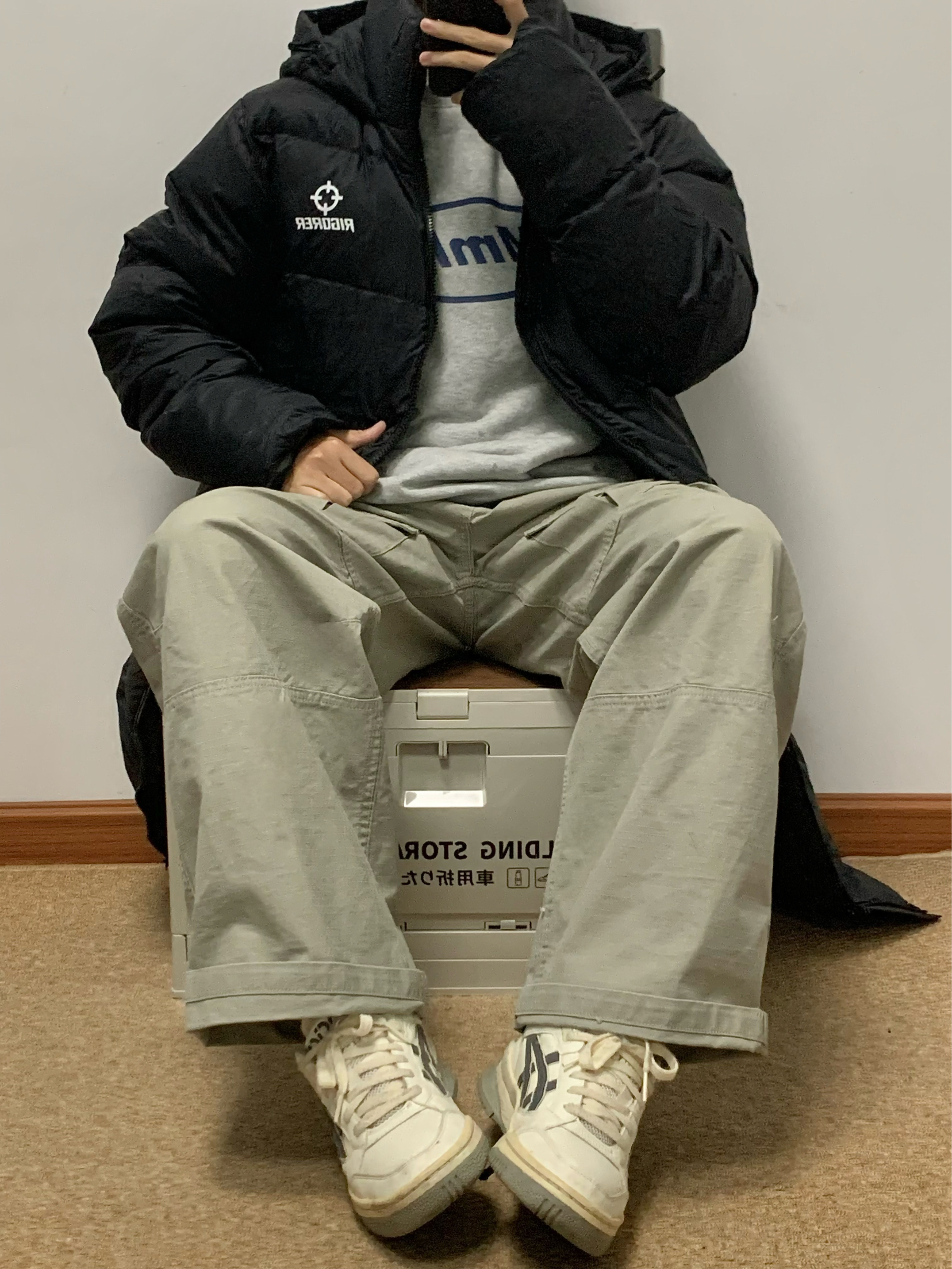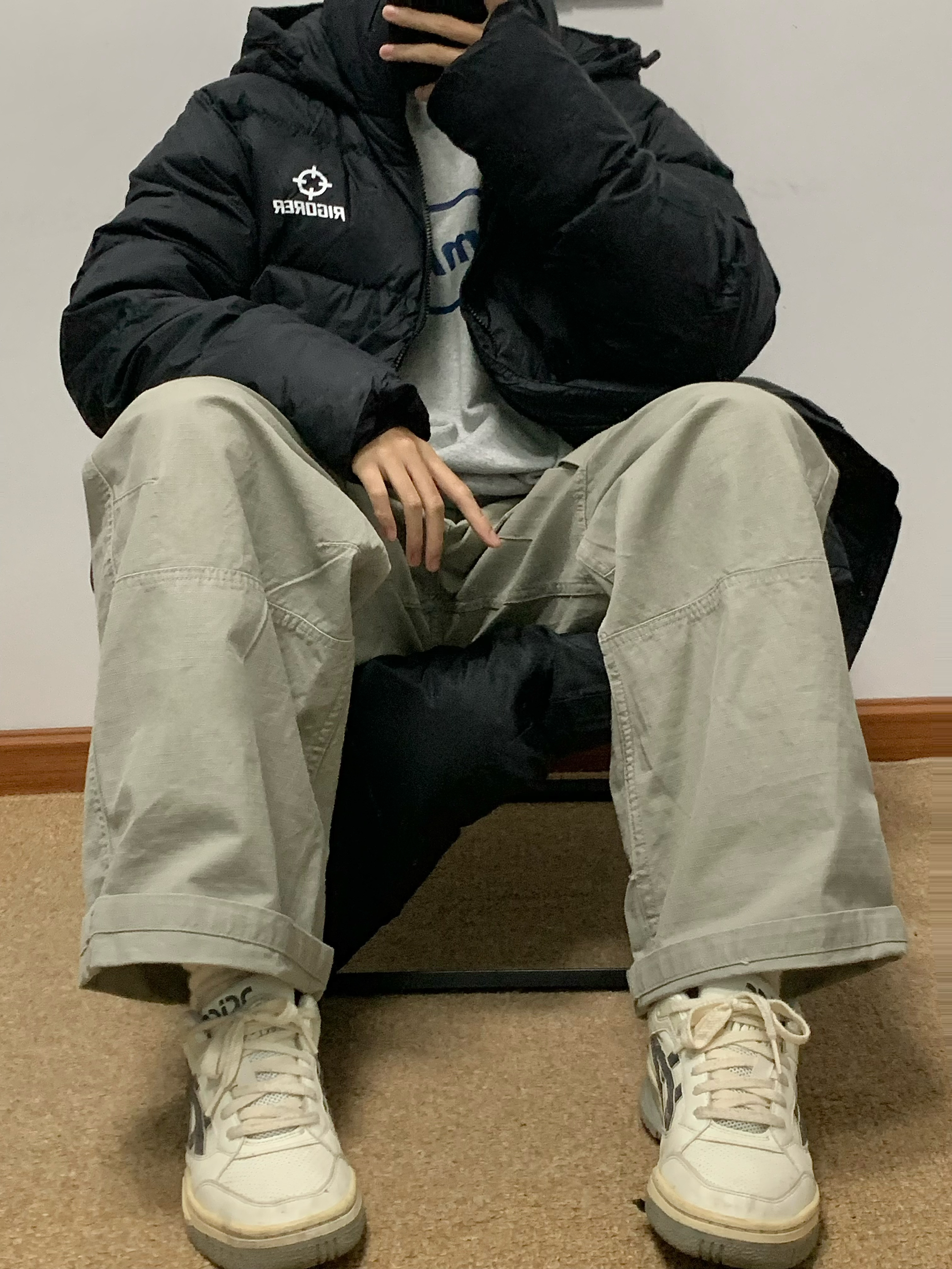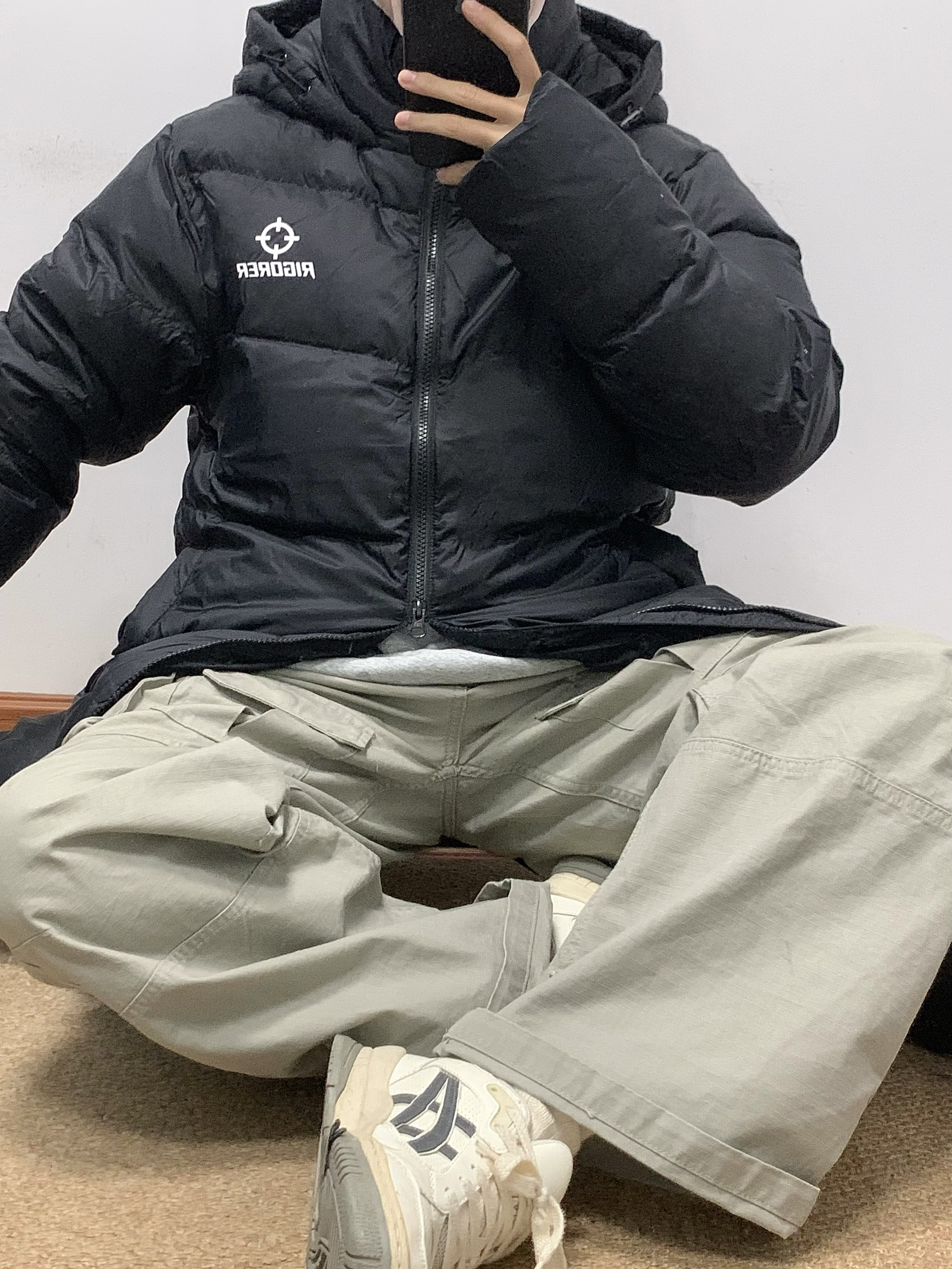 黑色羽绒服搭配绿色工装裤 帅酷拿捏 200多克的充绒量 很饱满 上身很暖和 北方也能轻松驾驭 黑色百搭又耐脏 冬日必备 入冬就穿这一身 包帅的! 👔:准者