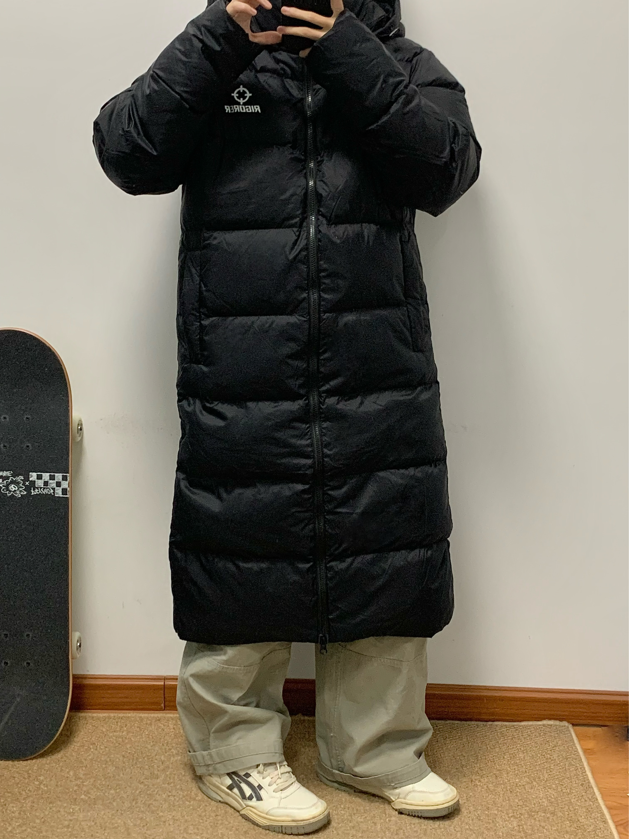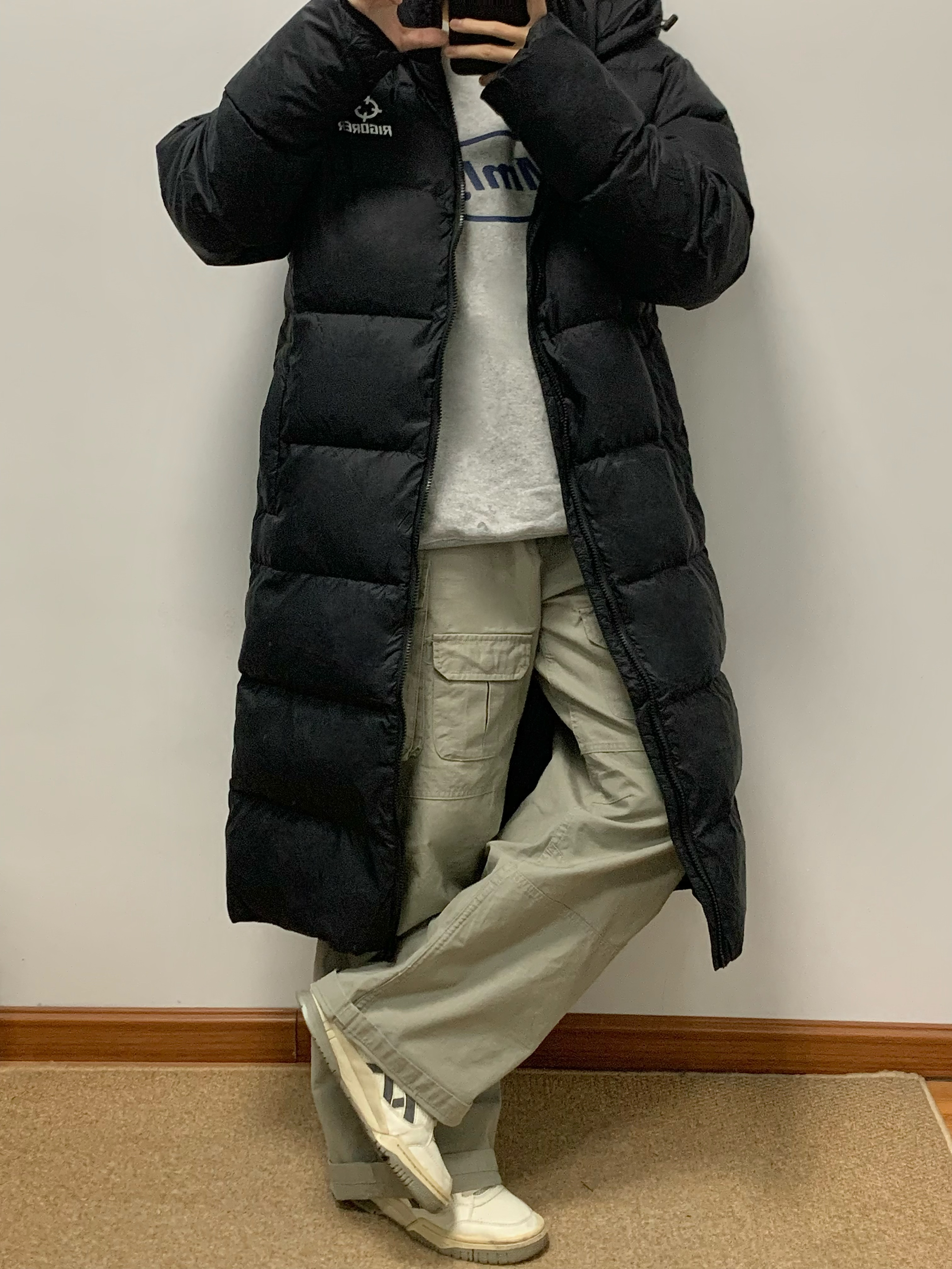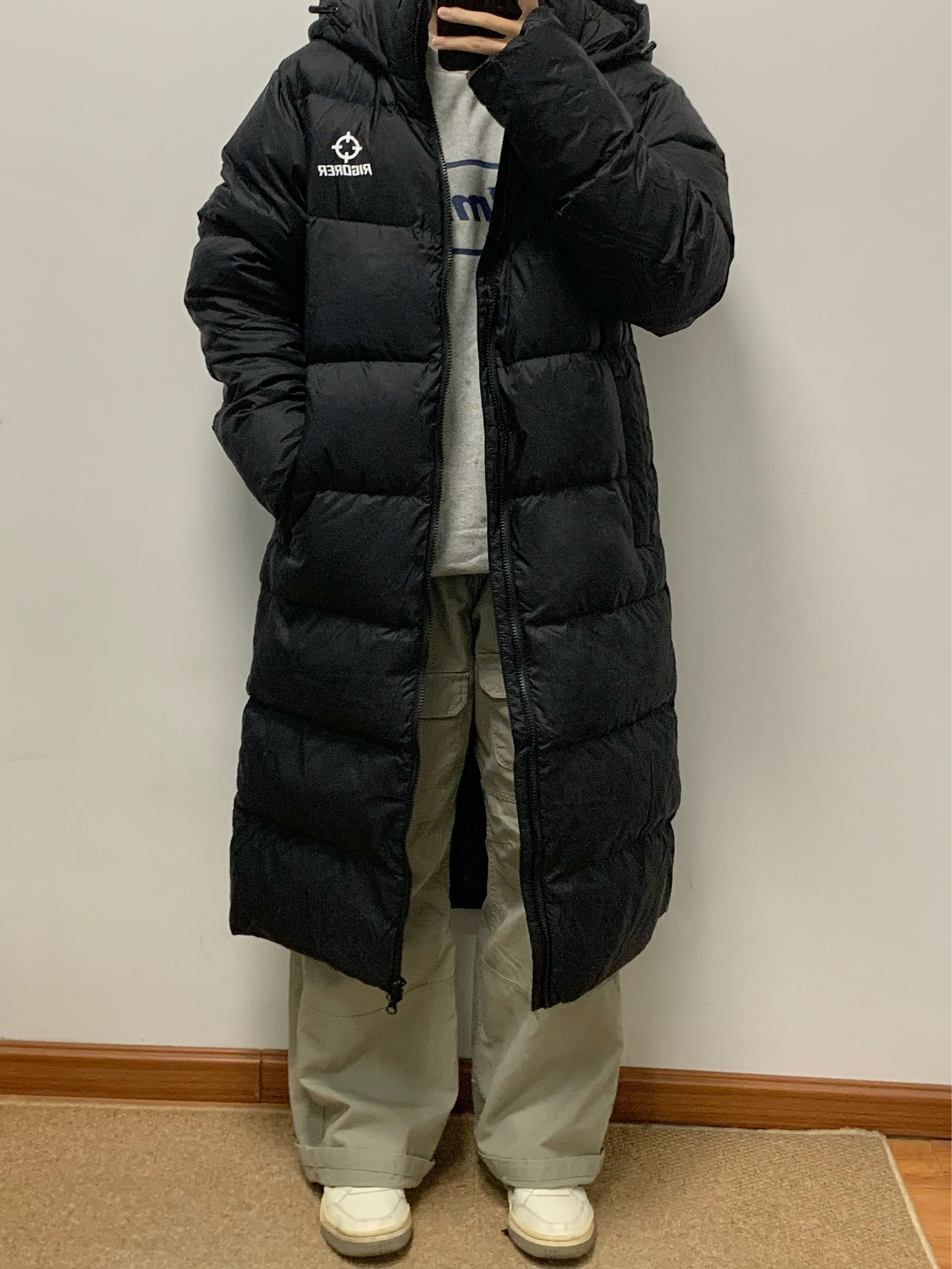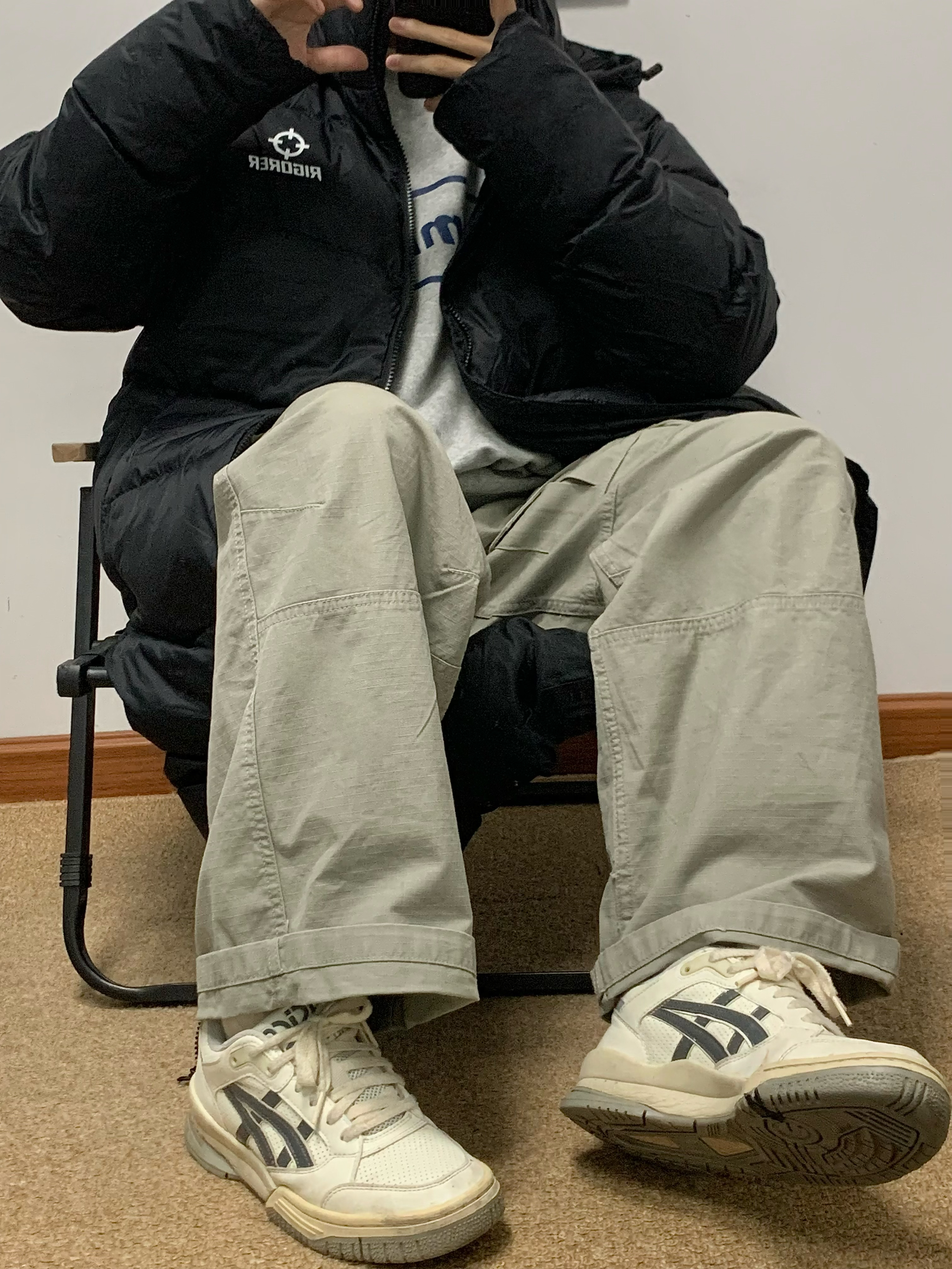 黑色羽绒服搭配绿色工装裤 帅酷拿捏 200多克的充绒量 很饱满 上身很暖和 北方也能轻松驾驭 黑色百搭又耐脏 冬日必备 入冬就穿这一身 包帅的! 👔:准者