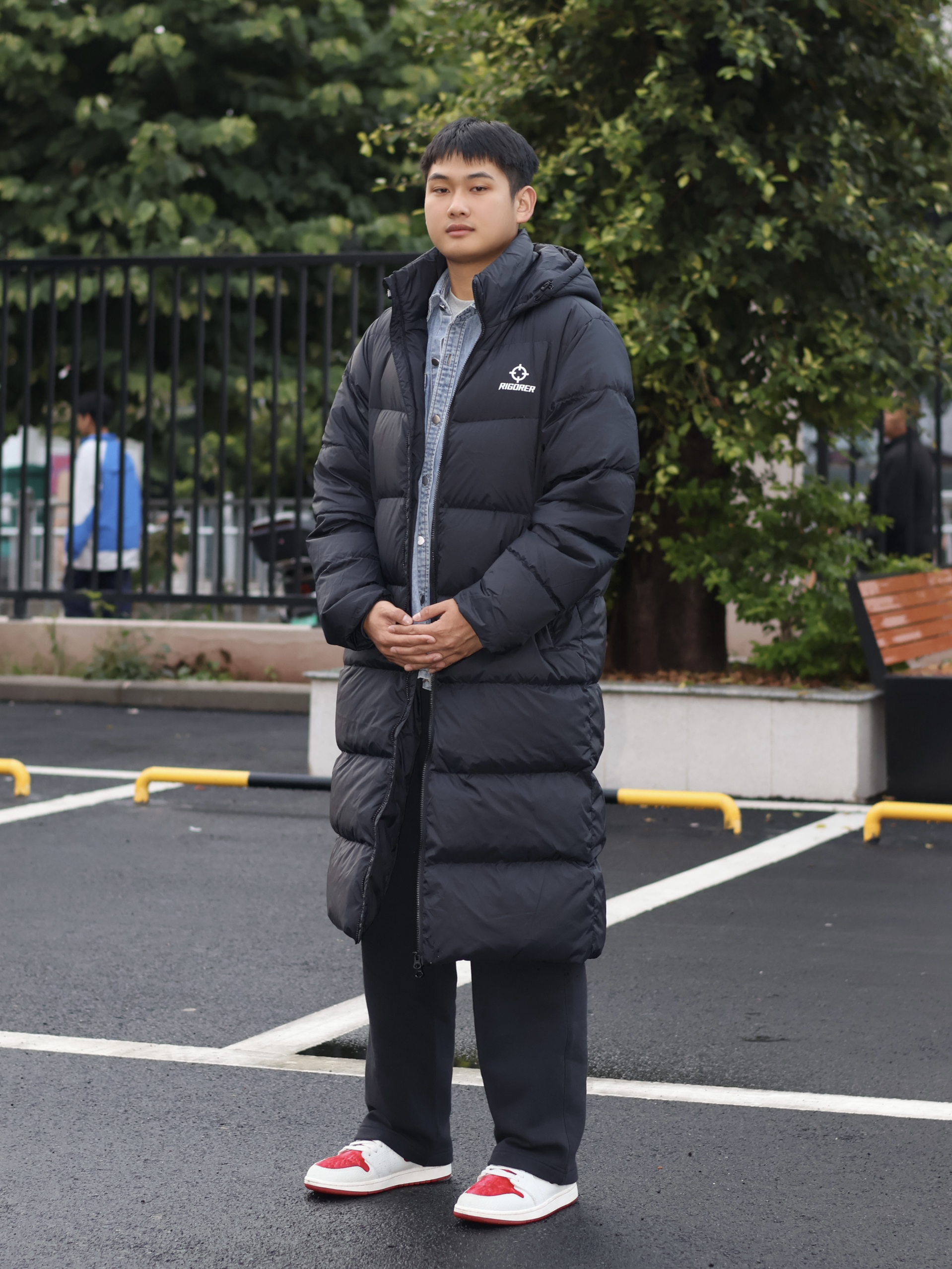 👔:182cm 75kg XL合适 👟:Air Jordan1 CMFT2 👖:Nike 黑色运动裤 今年的秋冬季格外的冷 穿长款就像是在身上盖了一床被子 早上出门很早 不仅可以抵御寒冷 而且保暖效果也很棒 准者这件长款羽绒服 色调简约 黑色系搭配什么衣服都好看 而且还很显瘦 整体的饱满程度很棒 衣服很蓬松(p3、p4) 而且还采用的是YKK的拉链 使用感受也很棒