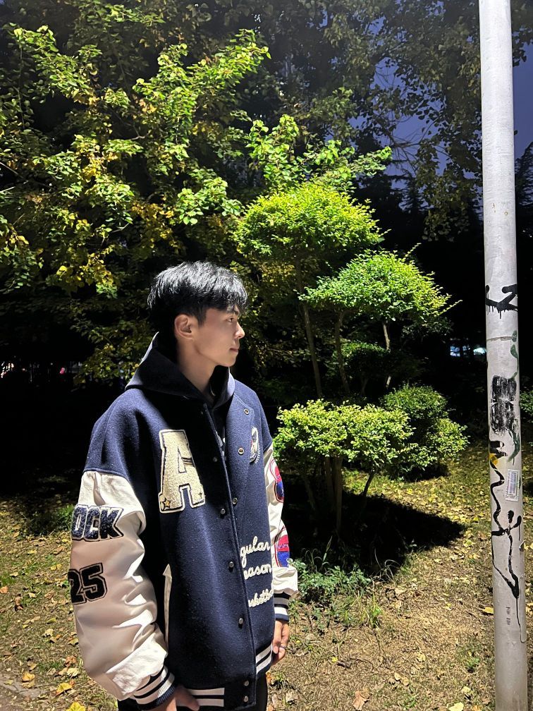 身高|体重:175 130 🧍♂️ 穿搭风格:休闲风 👔 上衣:棒球外套 👖 下装:西裤 👟 鞋子:马登的板鞋